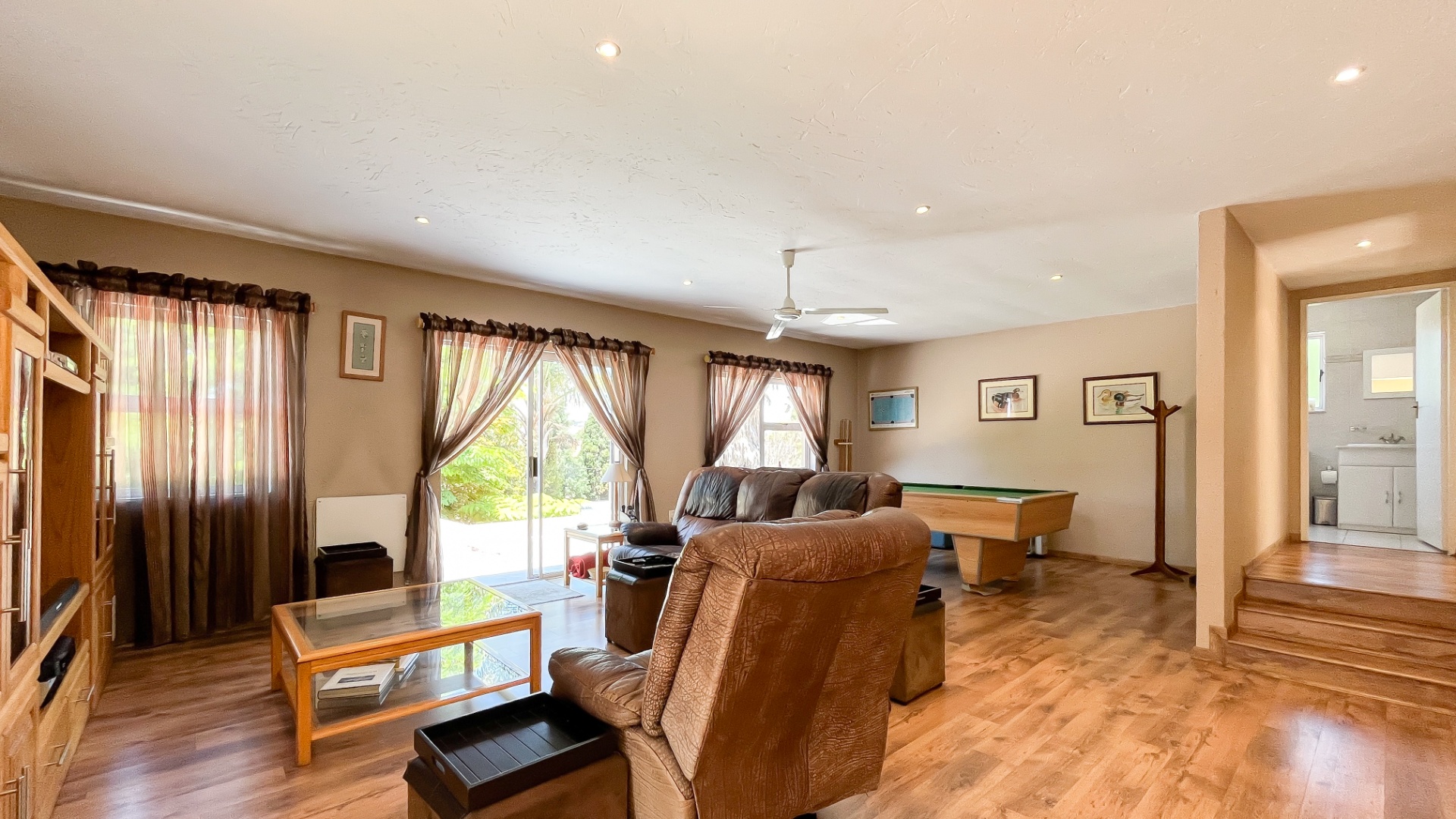 Featuring 5 well sized bedrooms and 3 bathrooms (MES), a modern kitchen with granite countertops, scullery, and separate laundry area. Multiple living areas including three lounges, a built-in bar, and an upstairs area with its own lounge, entertainment room, 2 bedrooms and a bathroom. Perfect for the extended family or separate work from home space.