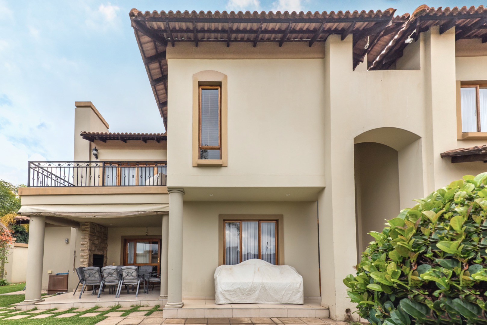 Discover this inviting residential property located in the desirable suburban area of Marais Steyn Park, Edenvale, South Africa. Presenting a Mediterranean-inspired exterior with classic columns and a terracotta roof, this home offers a welcoming first impression and a secure environment for family living. Step inside to an intelligently designed interior spanning 325 sqm. The open-plan living space seamlessly connects to a dedicated dining room, creating an ideal flow for both daily life and entertaining. The well-appointed kitchen features granite countertops, an integrated electric hob and oven, and a practical scullery, ensuring functionality. An elegant entrance hall and a stylish built-in bar area add to the home's appeal, complemented by ample natural light and easy-to-maintain tiled flooring throughout. This residence boasts three comfortable bedrooms and three bathrooms, including a private en-suite for added convenience and a guest toilet. Each space is designed to provide comfort and privacy, catering to the needs of a modern family. Outdoor living is a highlight, with a private swimming pool perfect for relaxation and a spacious covered patio. This entertainment area is complete with a built-in braai, ideal for hosting gatherings. The property also features a well-maintained garden, extensive paving, and two garages, providing secure parking and additional storage. Pets are allowed, making it a perfect home for animal lovers. Security is paramount, with high perimeter walls, an access gate, electric fencing, and burglar bars ensuring peace of mind. This property combines comfort, style, and security in a sought-after location. Key Features: * 3 Bedrooms, 3 Bathrooms (1 En-suite) * Open-Plan Living & Dining Areas * Modern Kitchen with Granite Countertops & Scullery * Private Swimming Pool * Covered Patio with Built-in Braai * Dedicated Built-in Bar * 2 Garages * Secure with Electric Fencing & Burglar Bars * Pet-Friendly