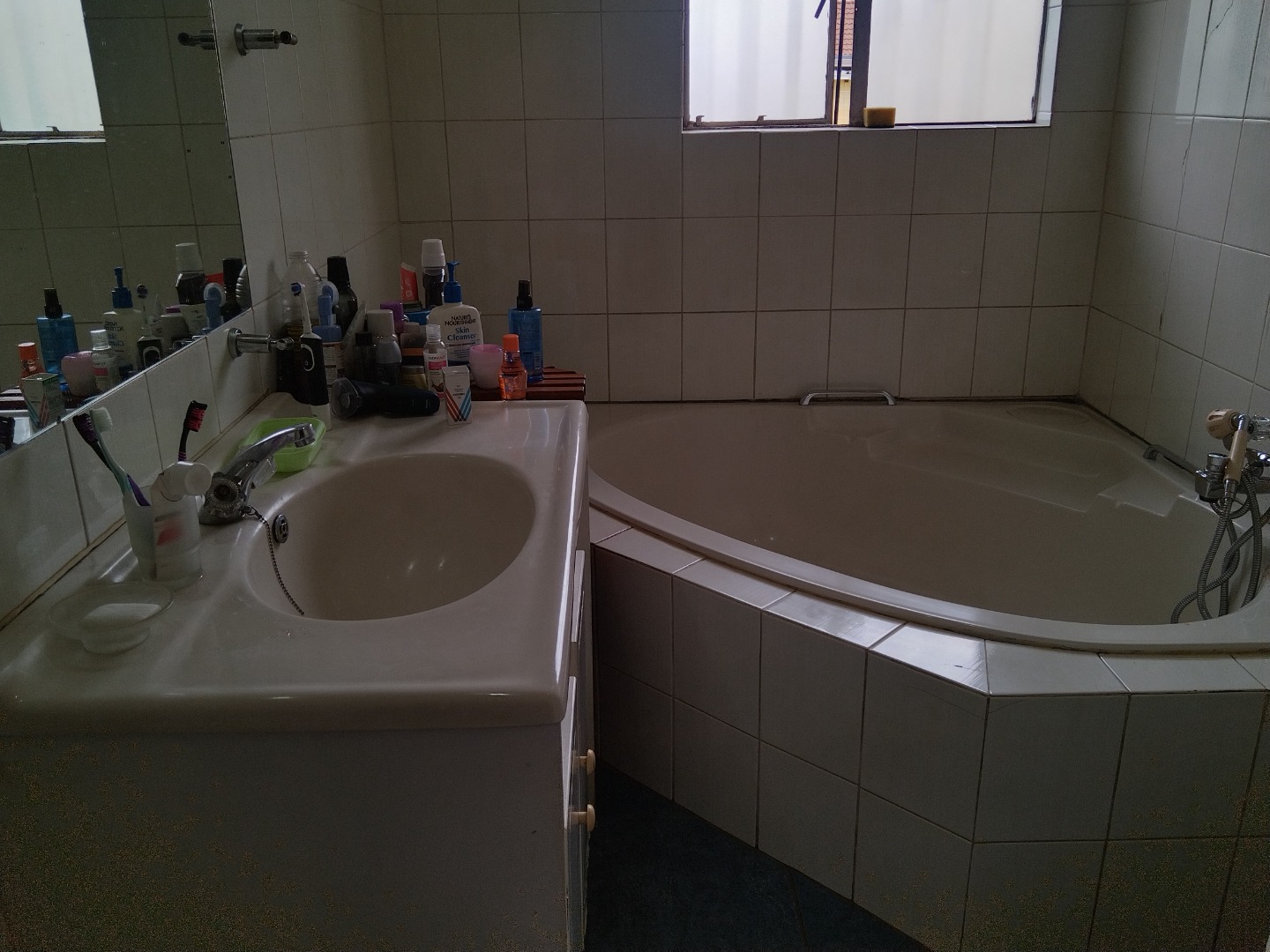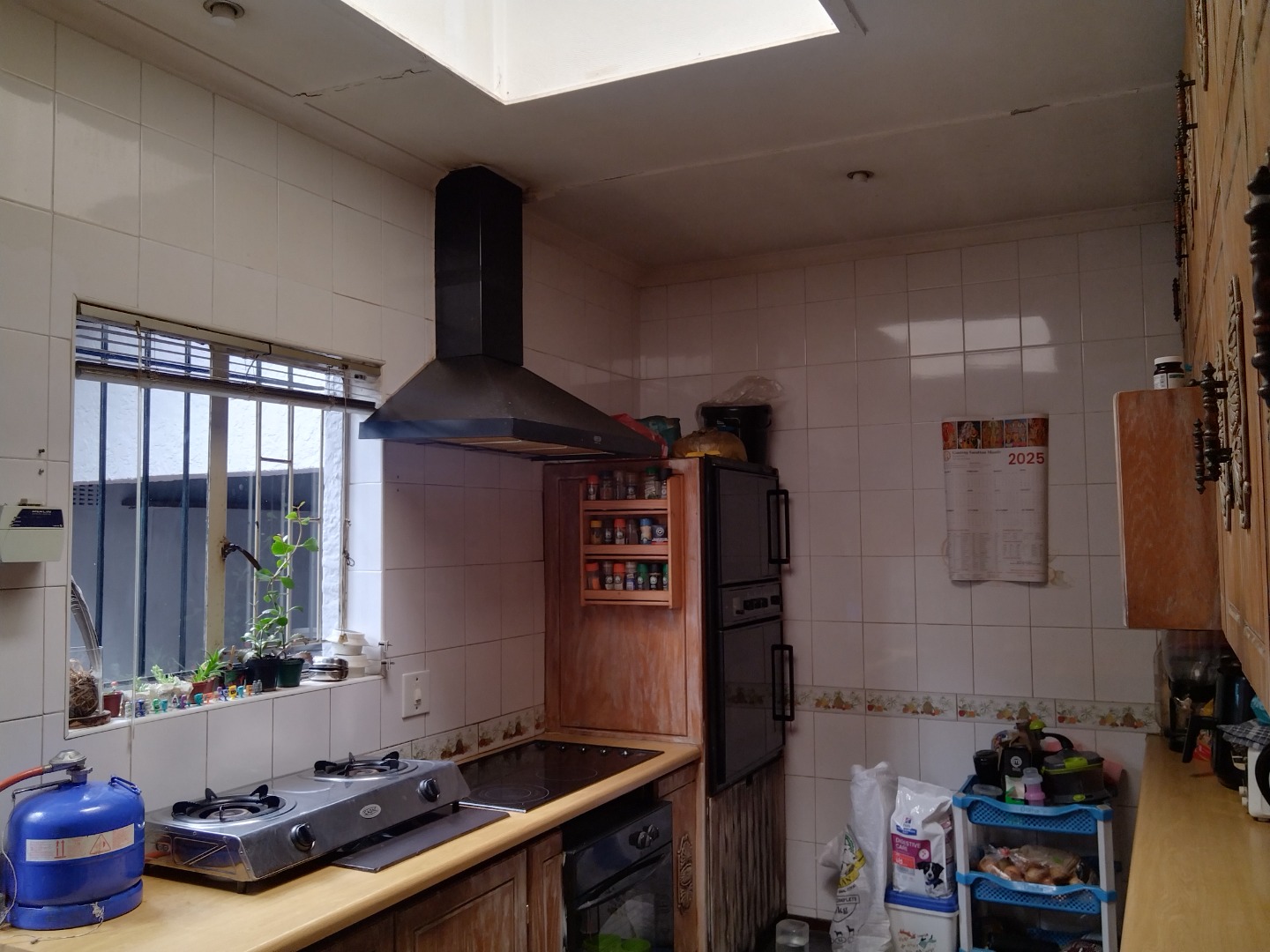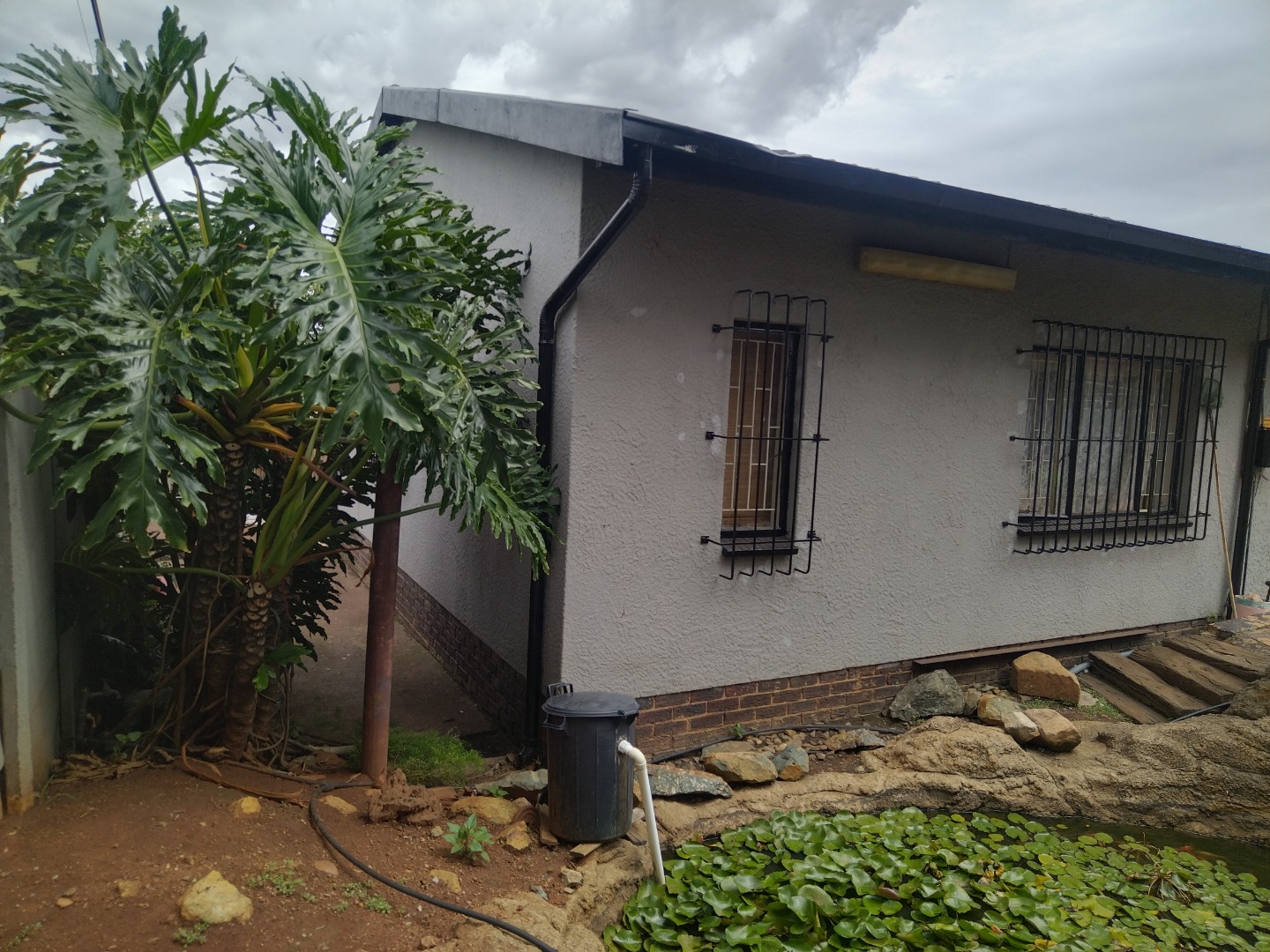 The exterior boasts a refreshing swimming pool, a lapa, and a built-in braai, ideal for outdoor entertaining within the well-maintained garden and paved areas. Practical amenities include three garages and five total parking spaces. This wheelchair-friendly and pet-friendly property is secured by a perimeter fence with electric fencing, and benefits from fibre internet and satellite television access. Germiston Central provides a well-established residential environment with convenient access to local amenities.