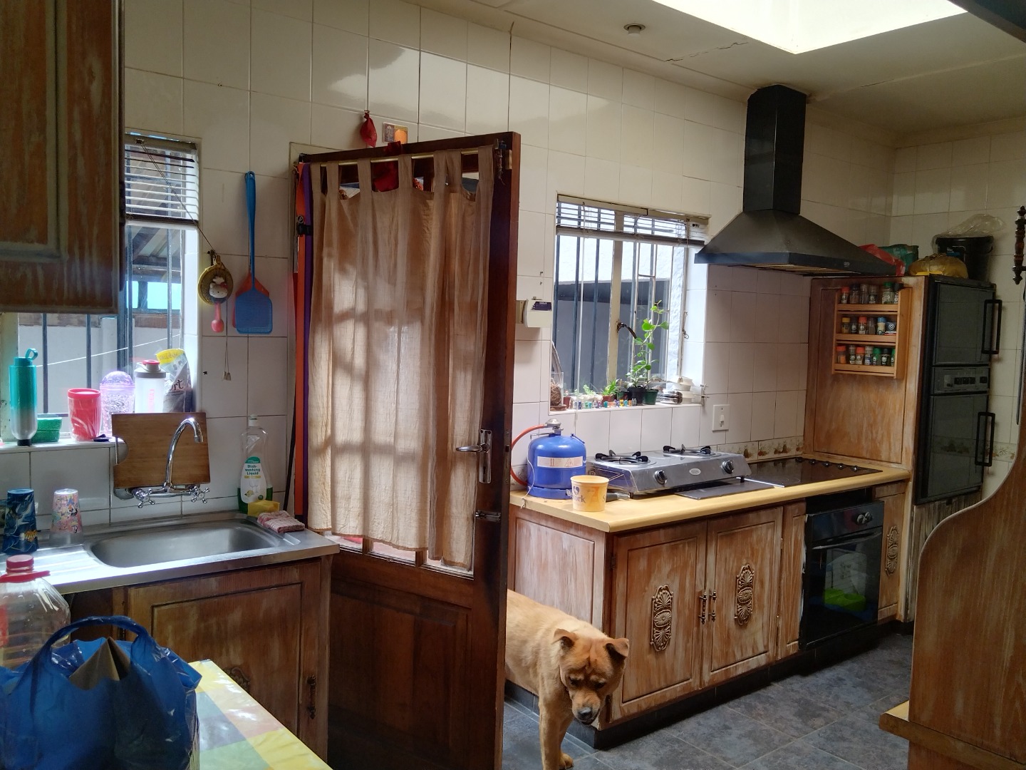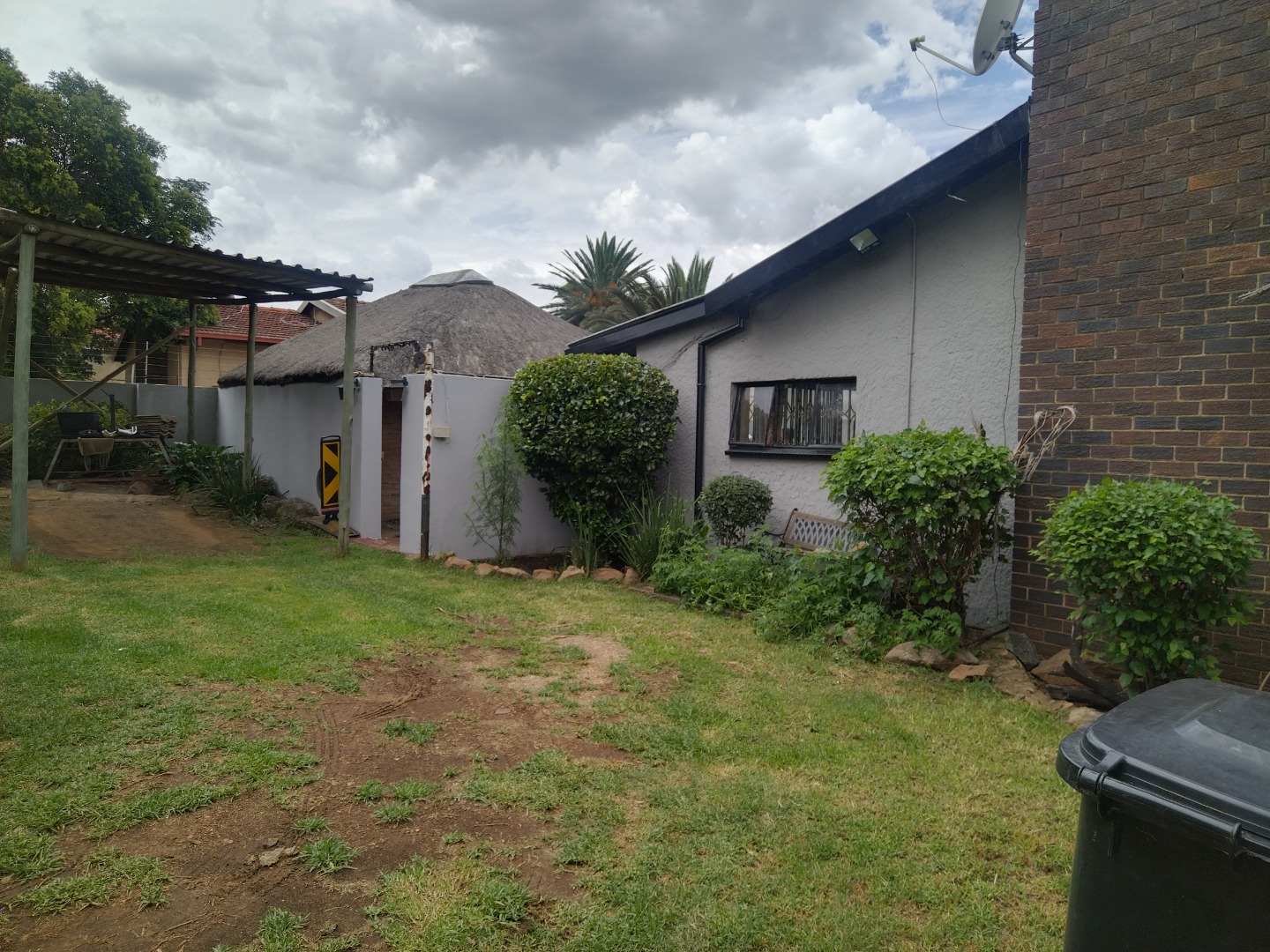 The exterior boasts a refreshing swimming pool, a lapa, and a built-in braai, ideal for outdoor entertaining within the well-maintained garden and paved areas. Practical amenities include three garages and five total parking spaces. This wheelchair-friendly and pet-friendly property is secured by a perimeter fence with electric fencing, and benefits from fibre internet and satellite television access. Germiston Central provides a well-established residential environment with convenient access to local amenities.