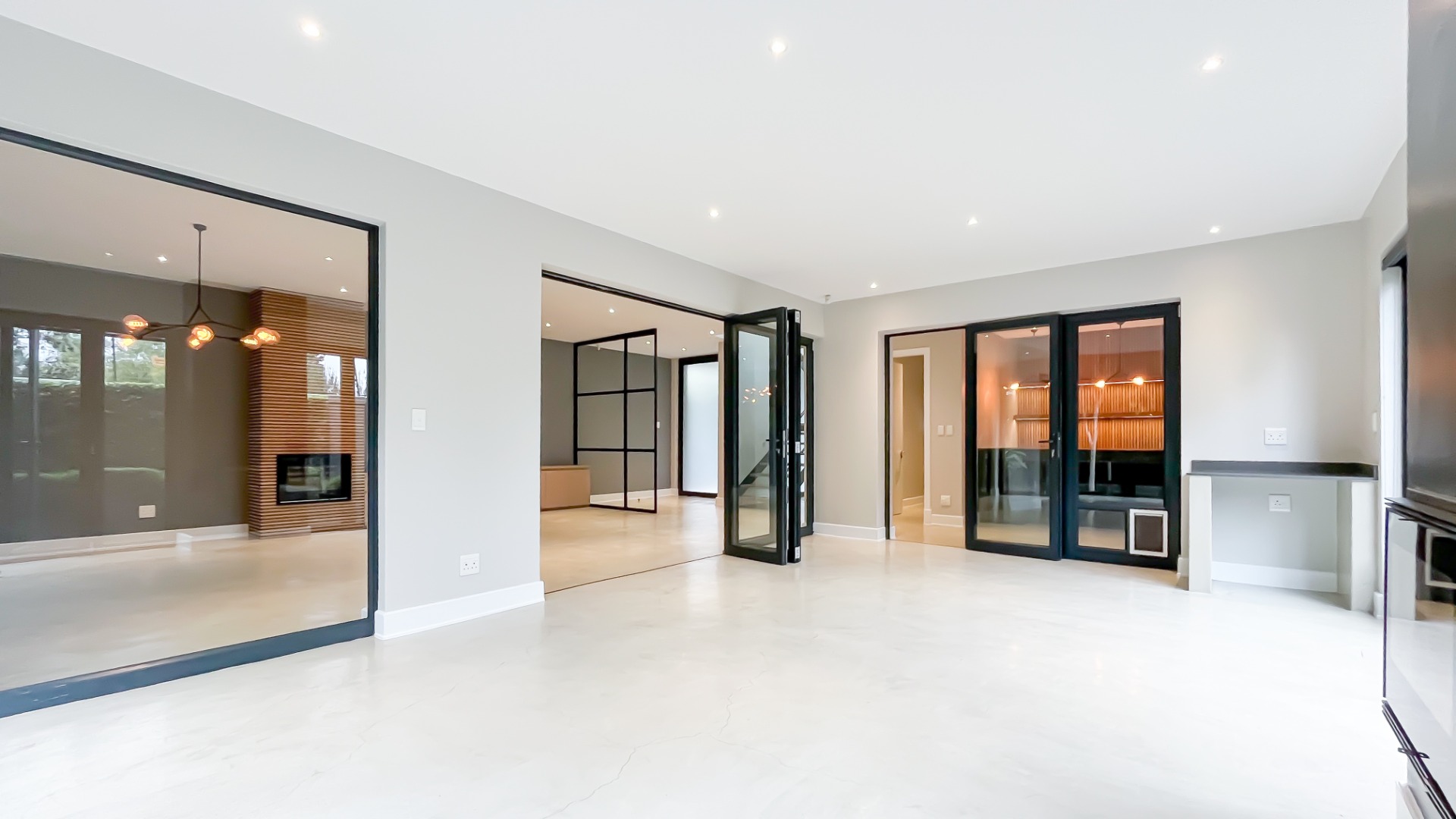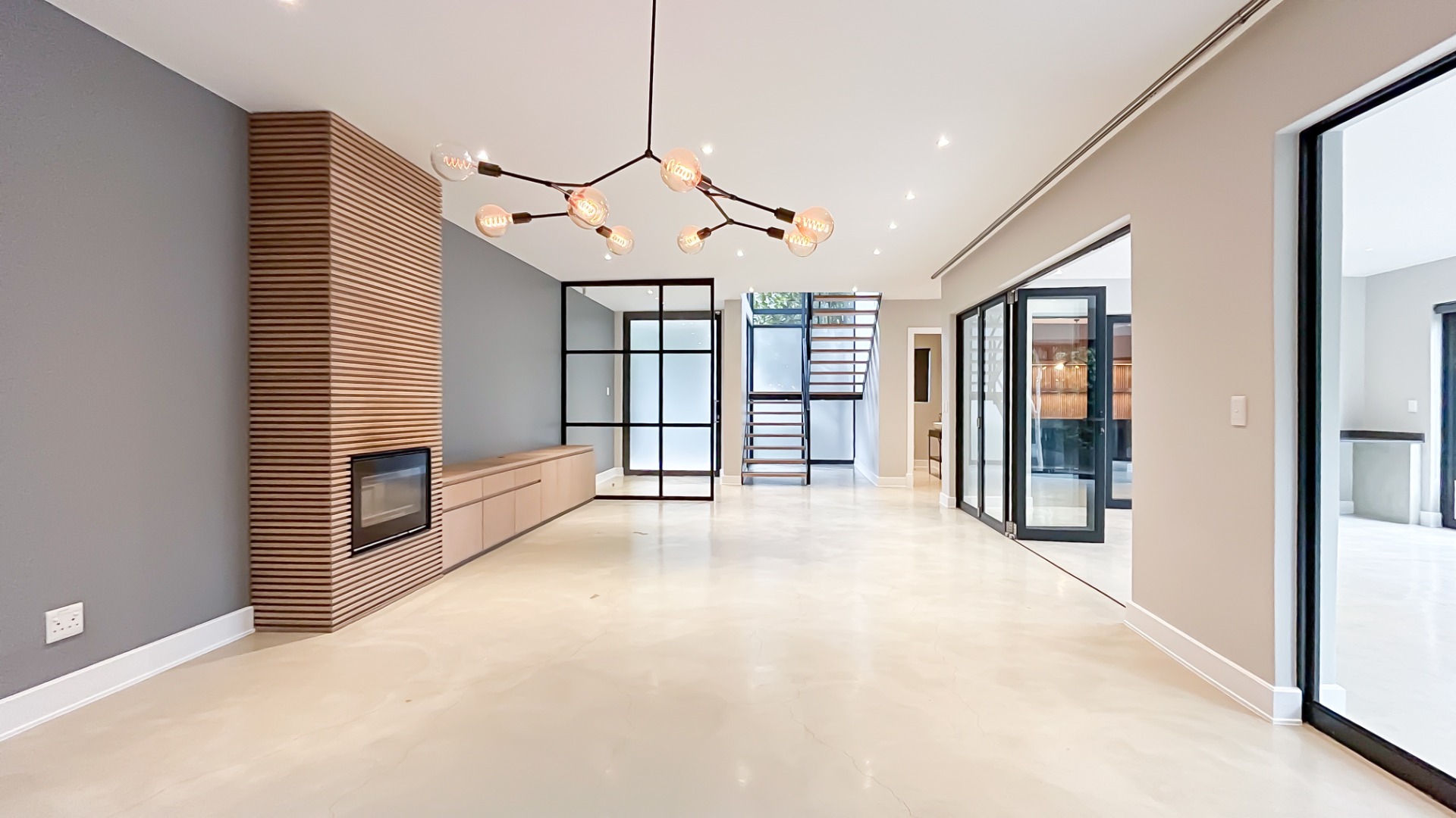 • Living & Social Spaces: An expansive lounge anchored by a cozy fireplace and bespoke built-in cabinetry.