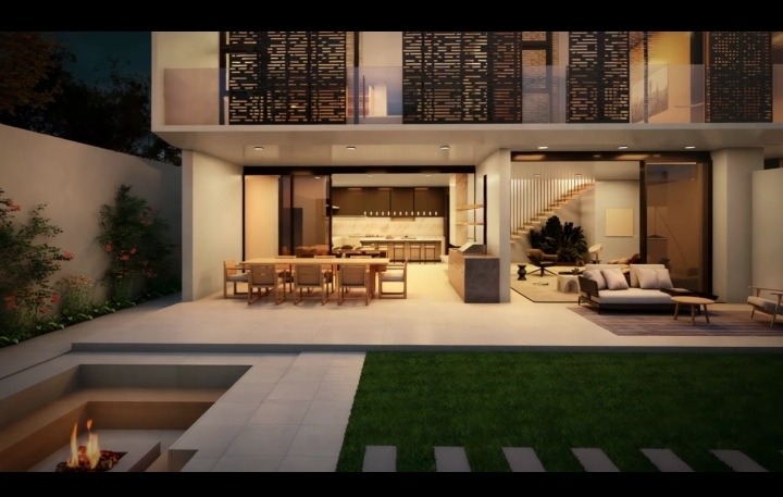 - Spacious lounge and dining area with stack doors leading to a wrap-around garden