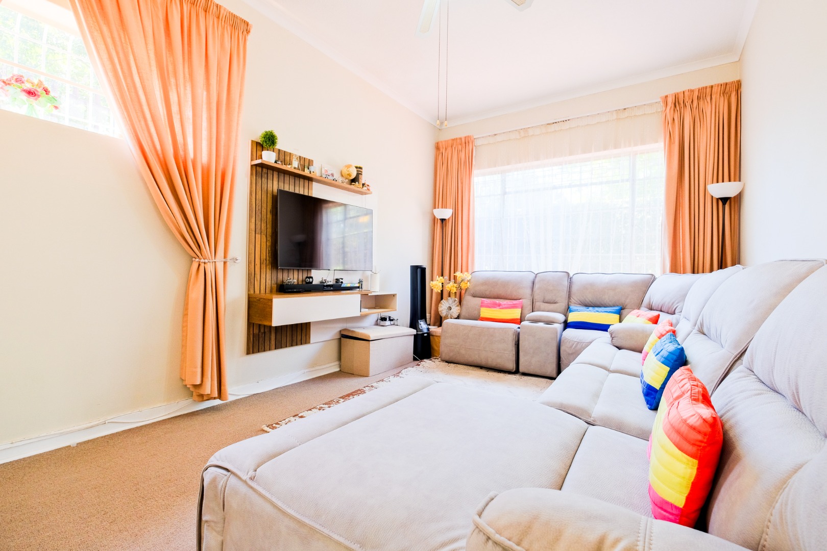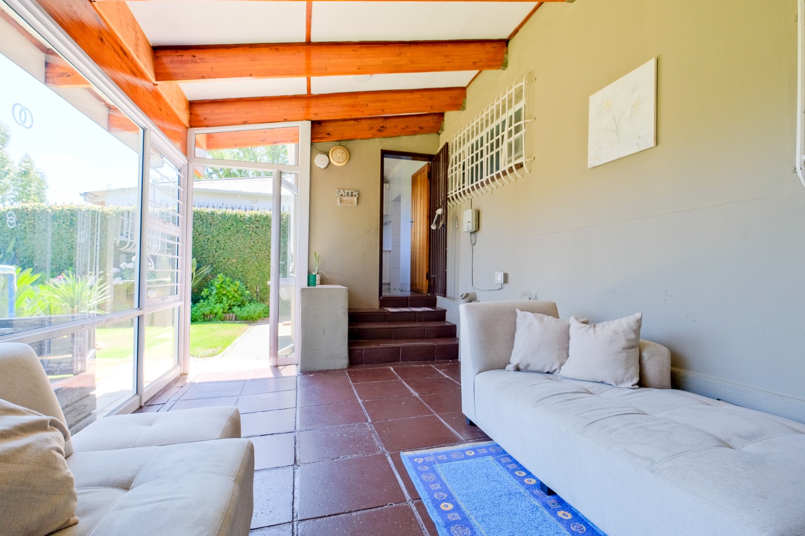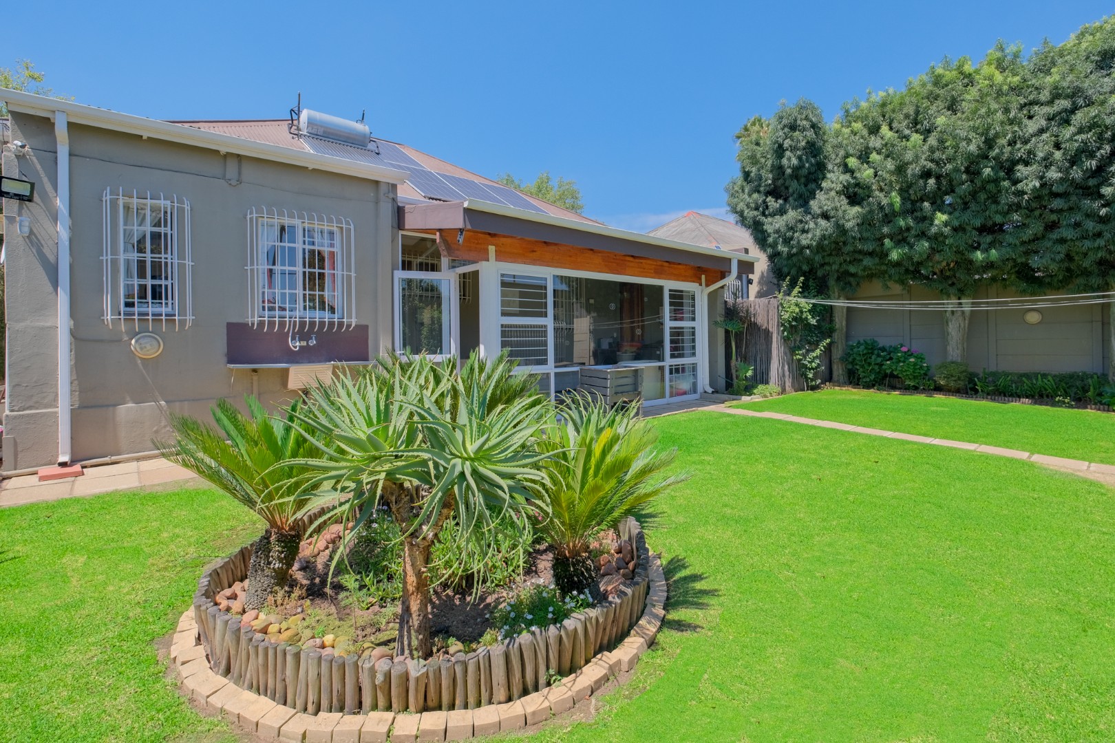 Security is a paramount feature, with an alarm system, electric fencing, CCTV surveillance, burglar bars, and a security gate providing comprehensive protection. Furthermore, this home embraces sustainable living with a solar geyser, solar panels, and a borehole, significantly reducing utility costs and promoting water resilience.