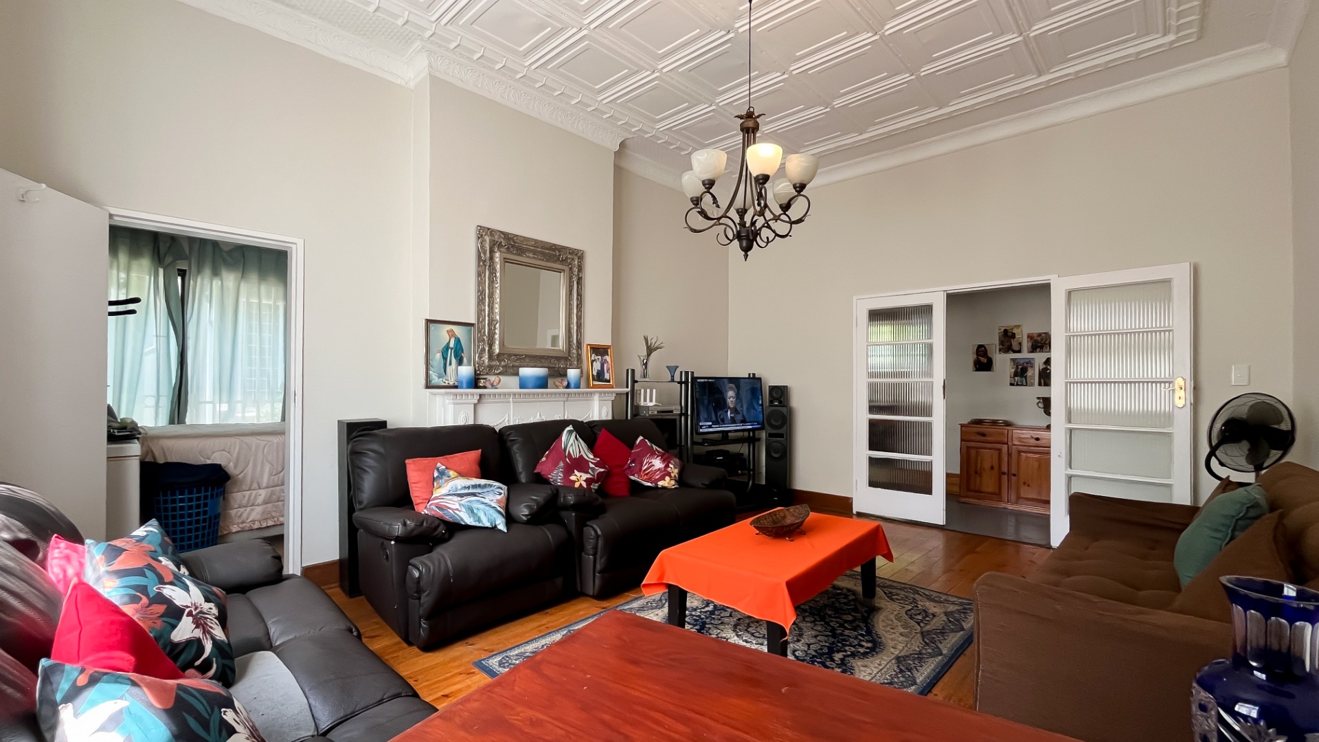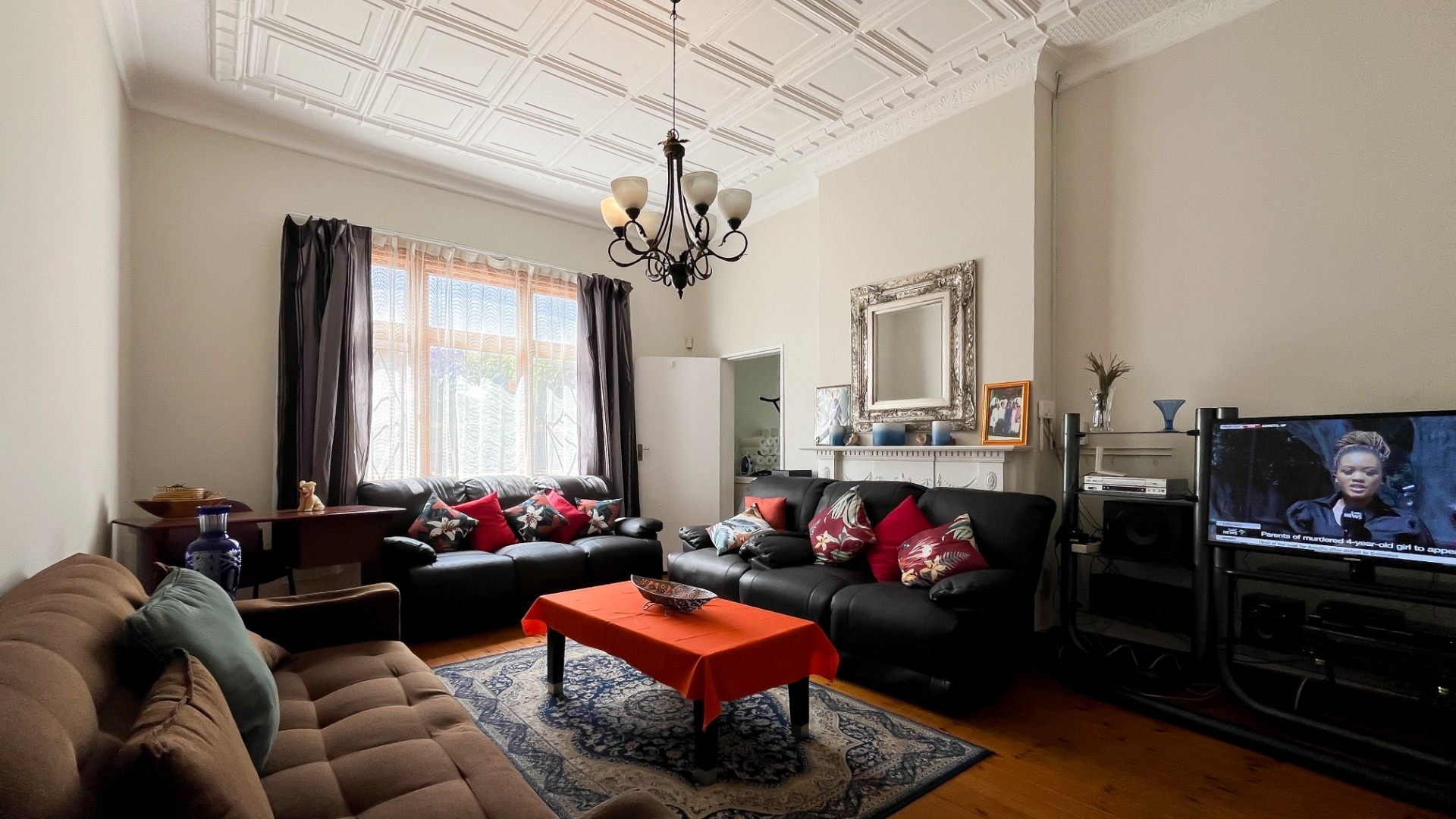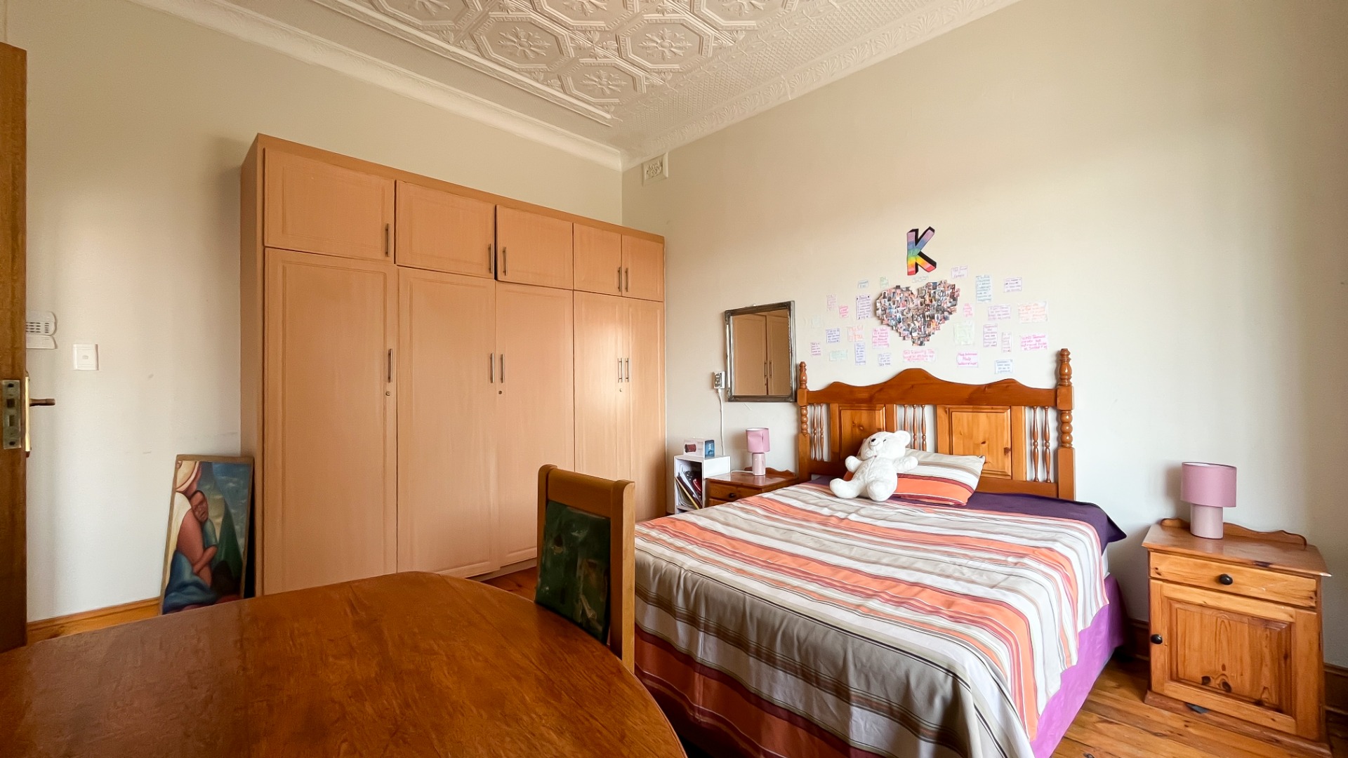 Oregon pine floors and impressive pressed ceilings showcase the home’s heritage charm.