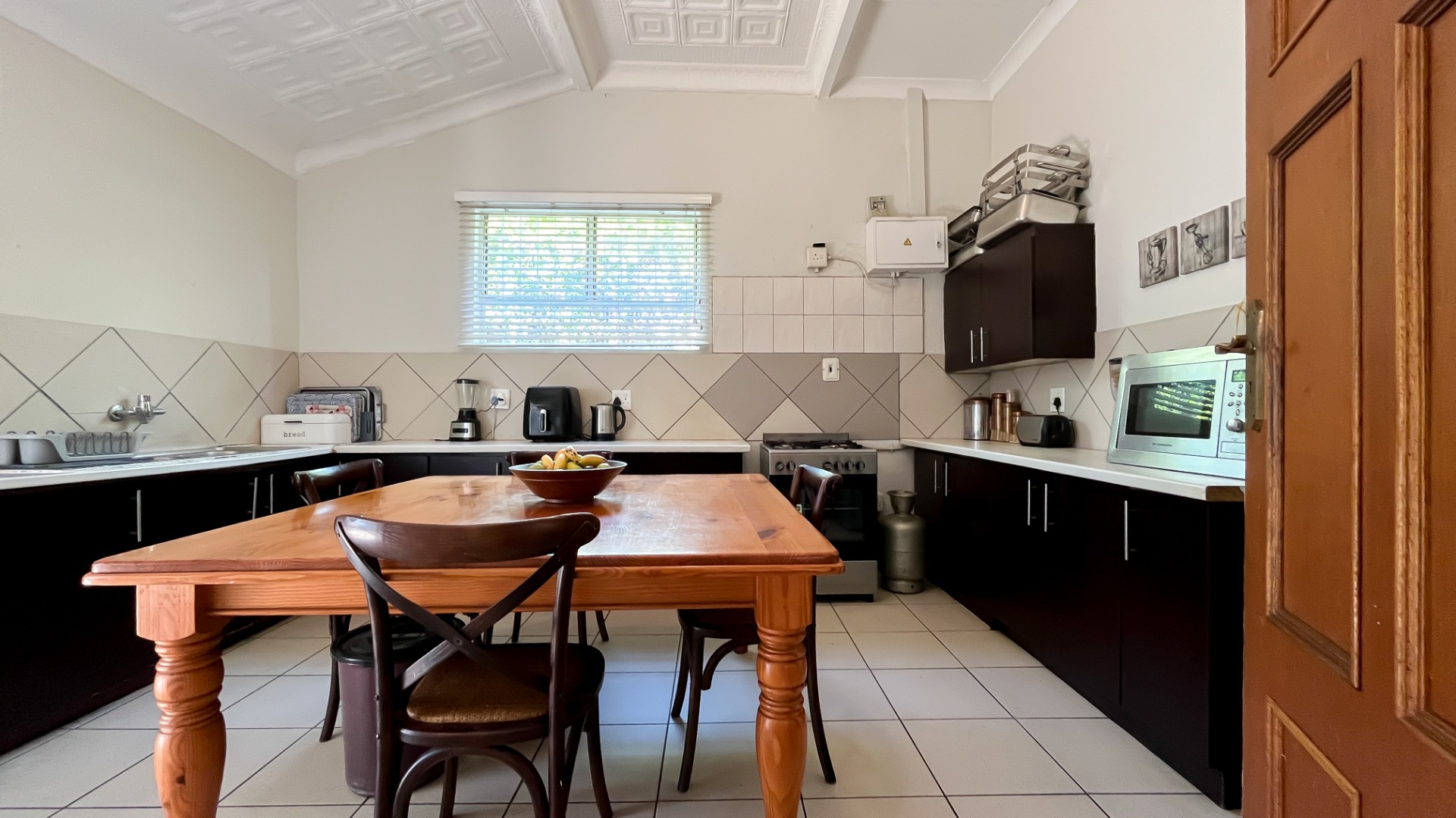 Large kitchen cum dining area with internal gas connection, ideal for family gatherings and entertaining.