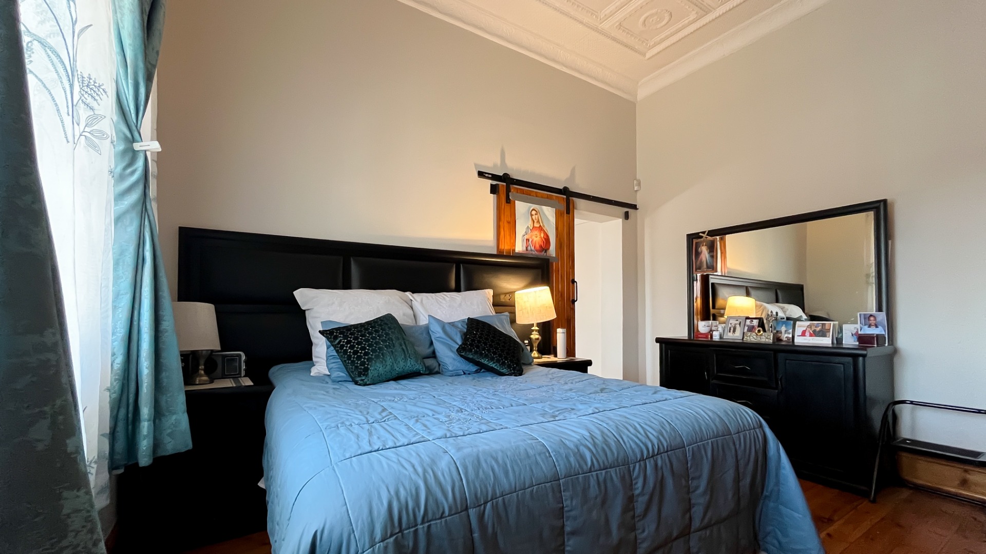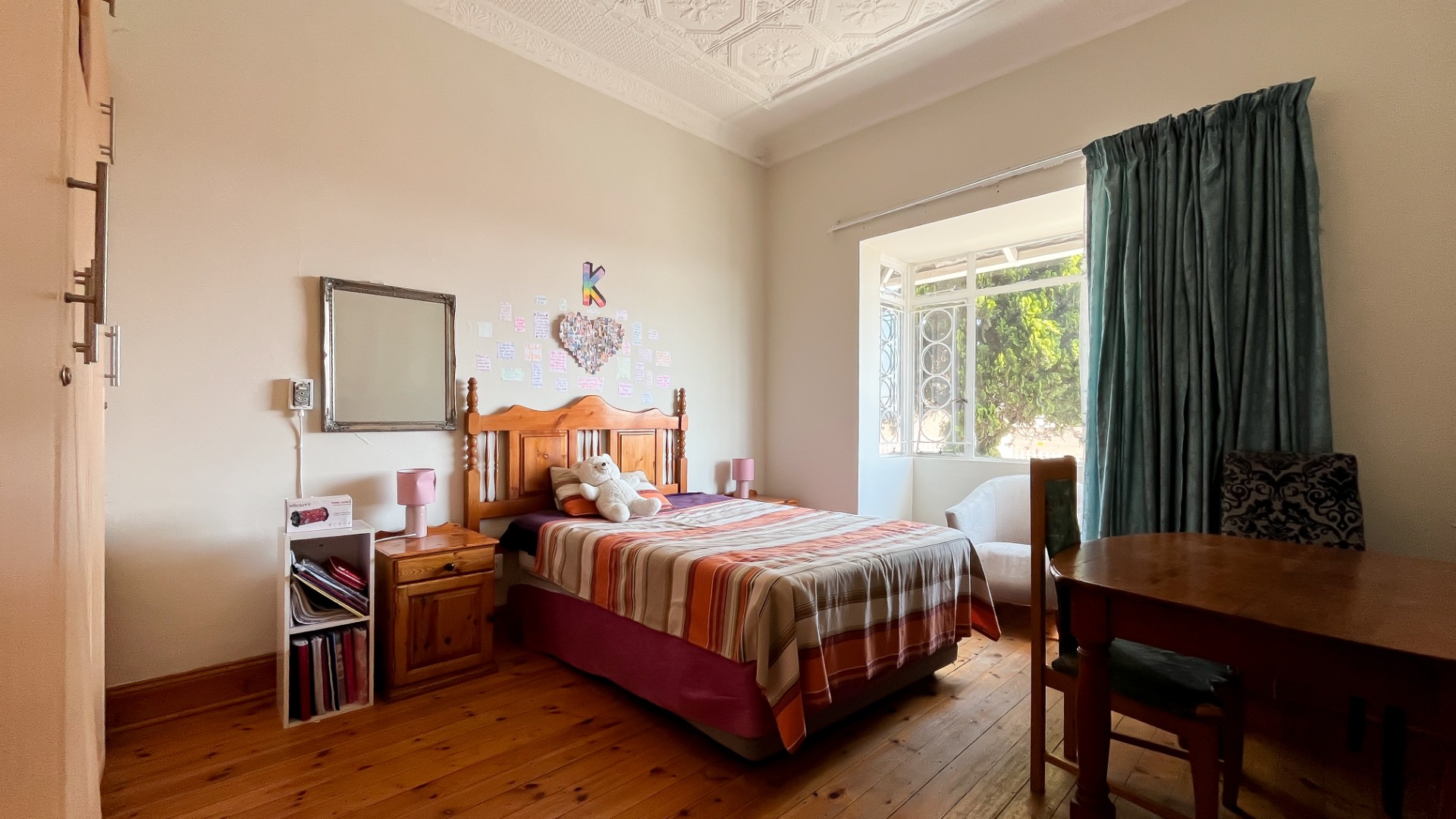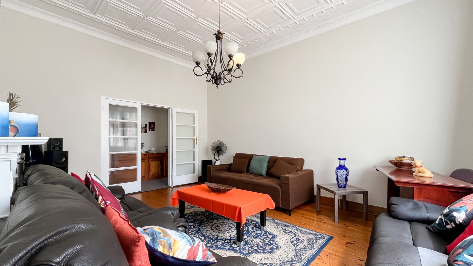 Oregon pine floors and impressive pressed ceilings showcase the home’s heritage charm.
