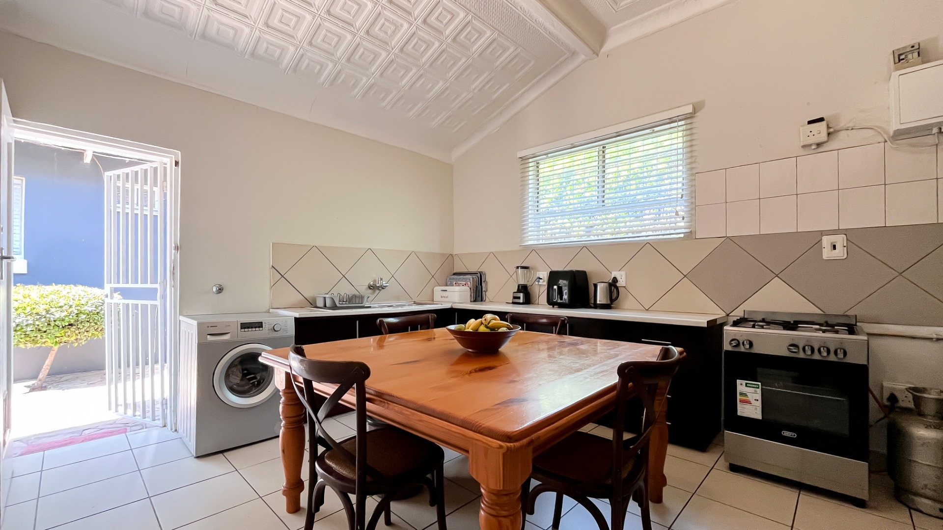 Large kitchen cum dining area with internal gas connection, ideal for family gatherings and entertaining.