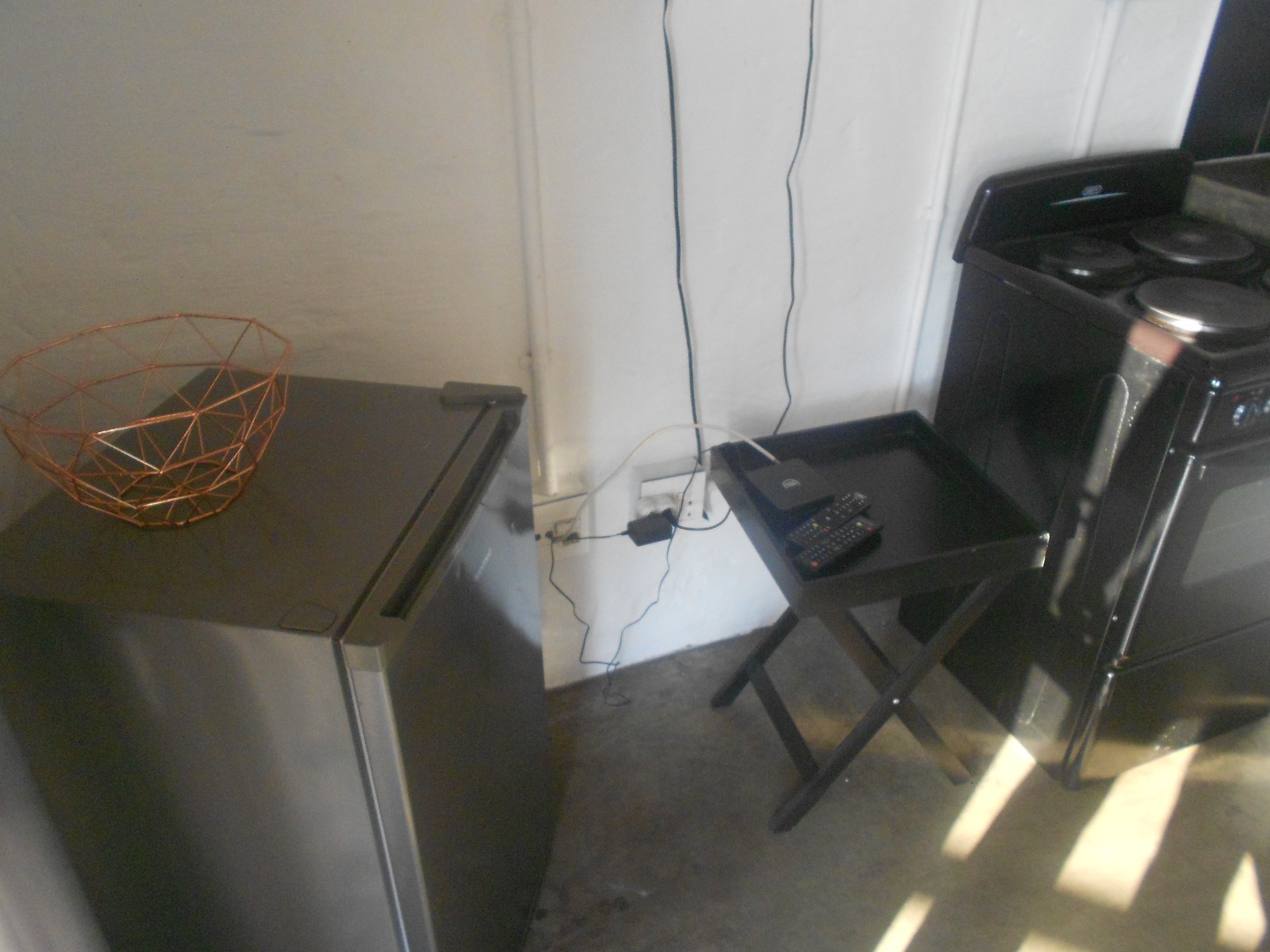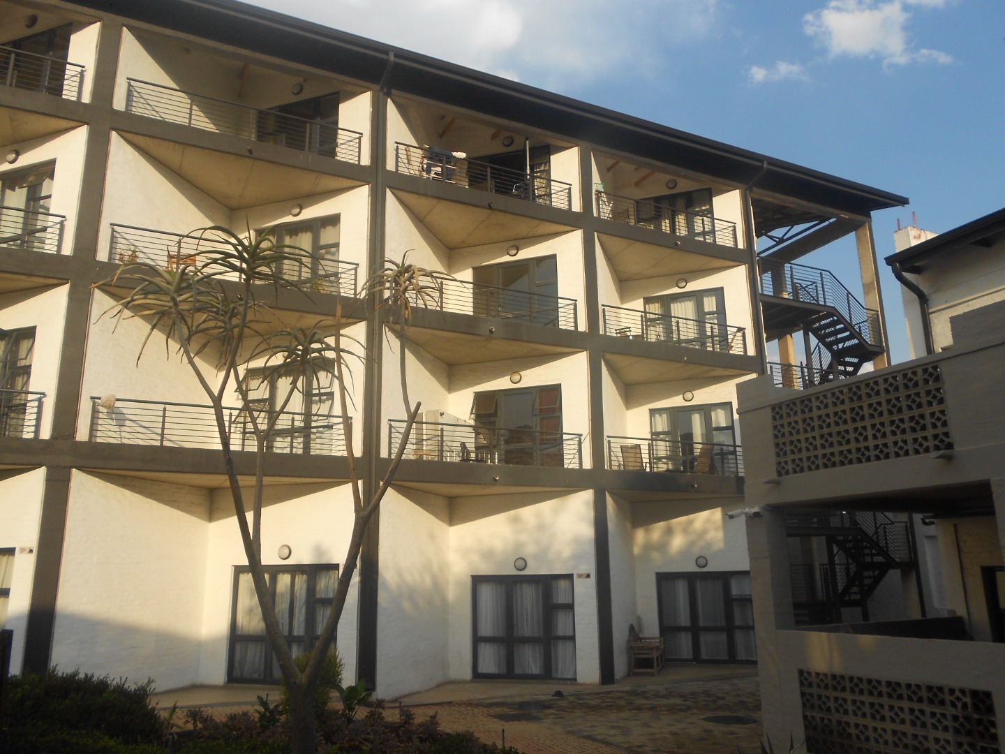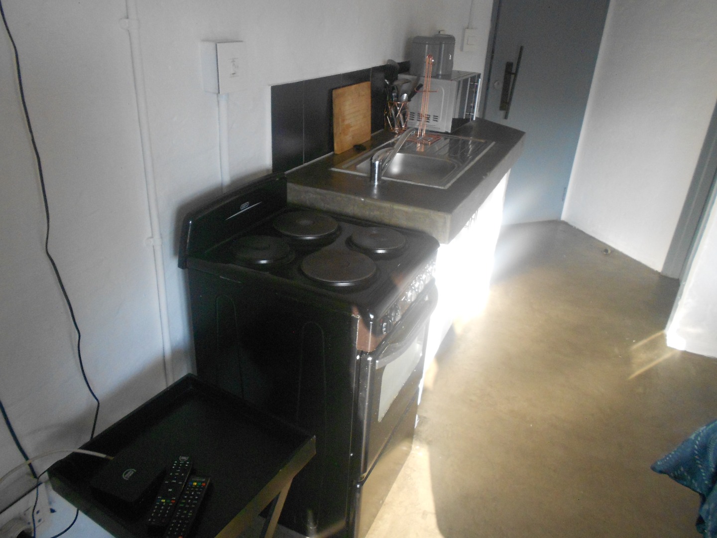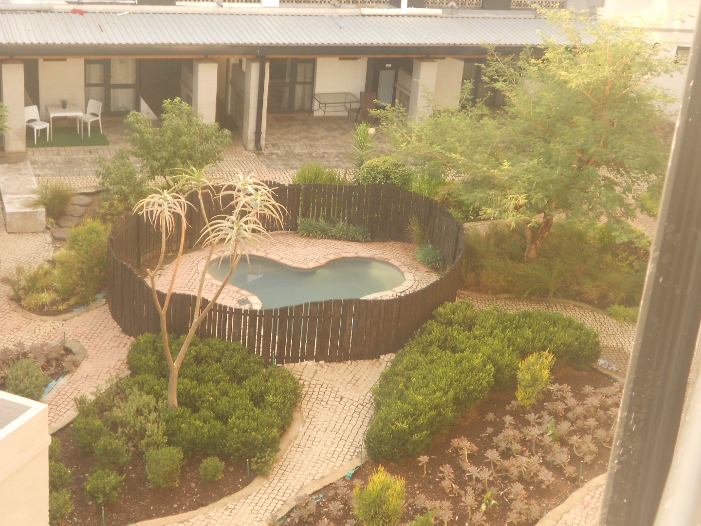 Experience vibrant metropolitan living in this modern studio apartment located in Maboneng, Johannesburg. This 23sqm unit offers a functional living and sleeping area, complemented by an exposed brick accent wall and a clean white wardrobe. The compact kitchenette features modern appliances, a dining area, and a well-appointed bathroom. Residents benefit from communal amenities including landscaped courtyards, paved pathways, and a small swimming pool. The property showcases a distinct architectural design with circular windows, enhanced by 24-hour security, CCTV, and a dedicated security post for ultimate peace of mind.