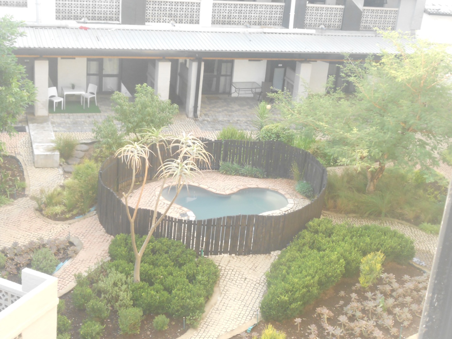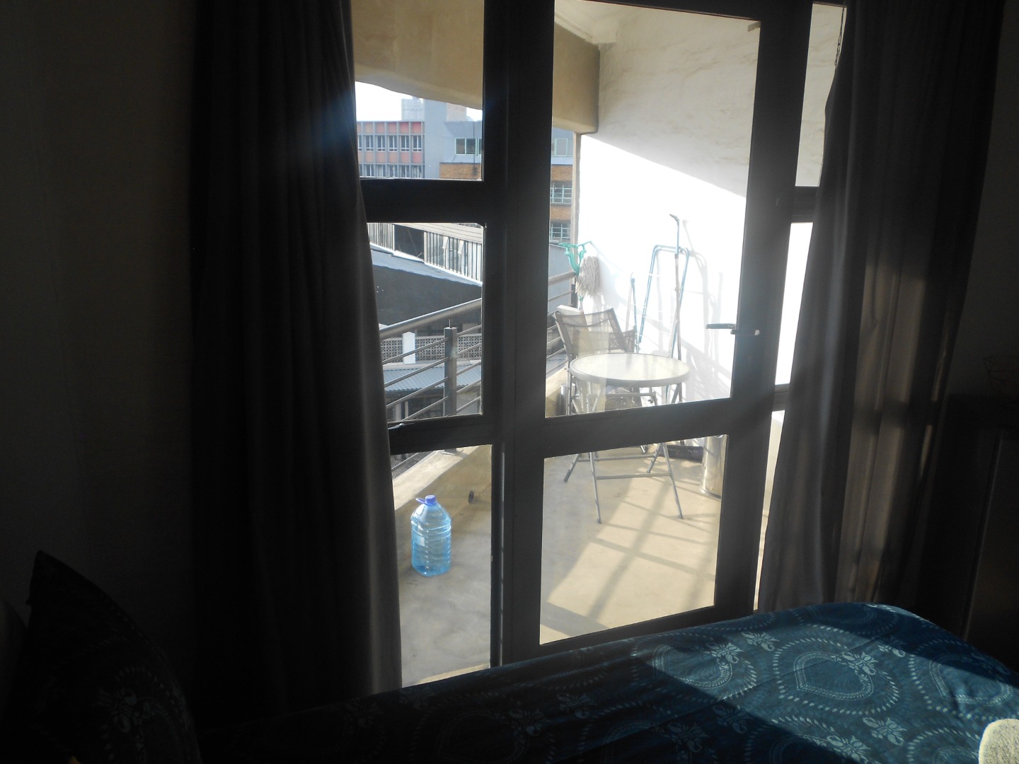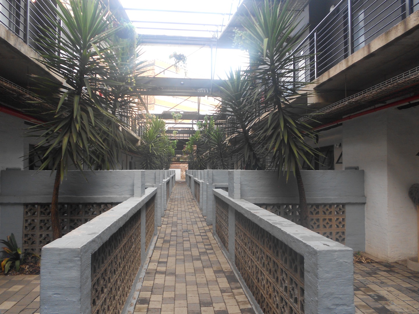 Experience vibrant metropolitan living in this modern studio apartment located in Maboneng, Johannesburg. This 23sqm unit offers a functional living and sleeping area, complemented by an exposed brick accent wall and a clean white wardrobe. The compact kitchenette features modern appliances, a dining area, and a well-appointed bathroom. Residents benefit from communal amenities including landscaped courtyards, paved pathways, and a small swimming pool. The property showcases a distinct architectural design with circular windows, enhanced by 24-hour security, CCTV, and a dedicated security post for ultimate peace of mind.