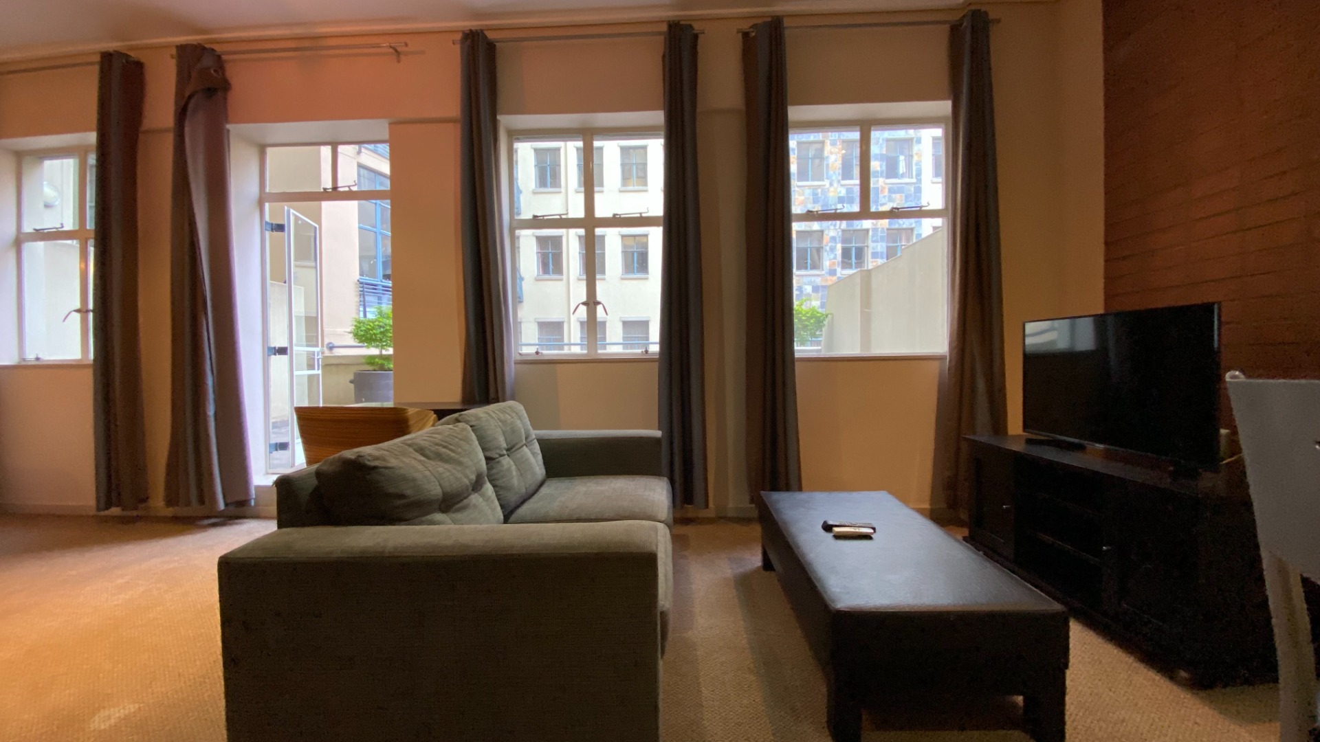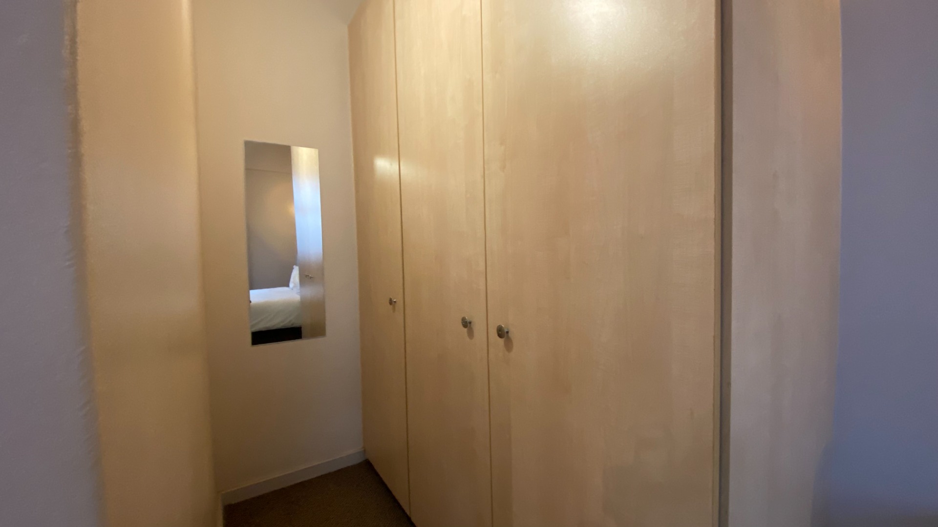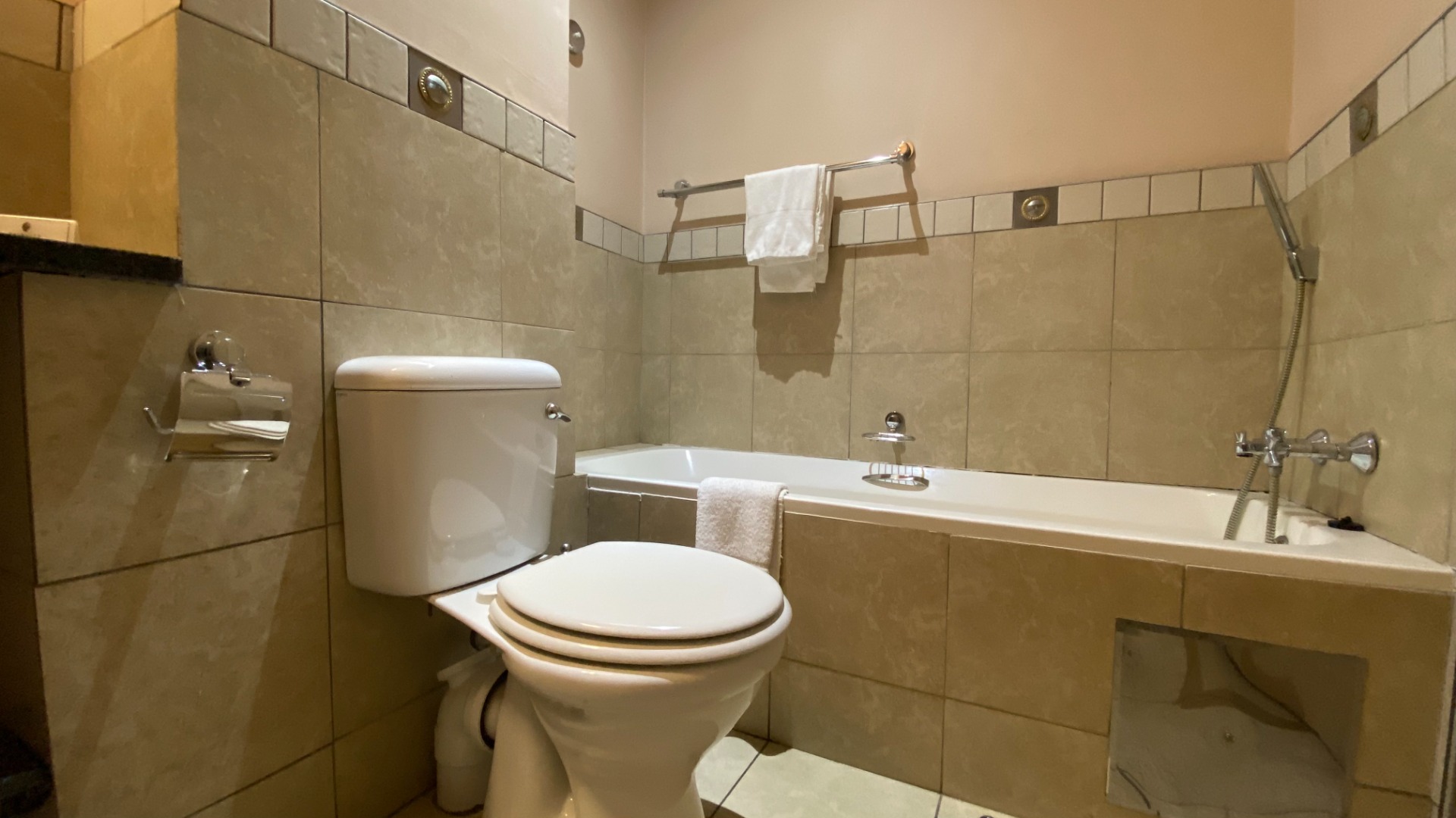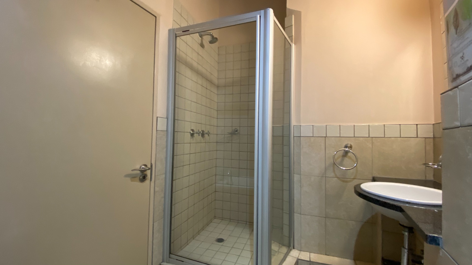 Tiled kitchen area with wooden cupboards, granite tops, extractor fan, splashback and breakfast bar. Open-plan to big lounge and then to a good size bedroom area. Bathroom has a shower and bath, as well as a dressing area.