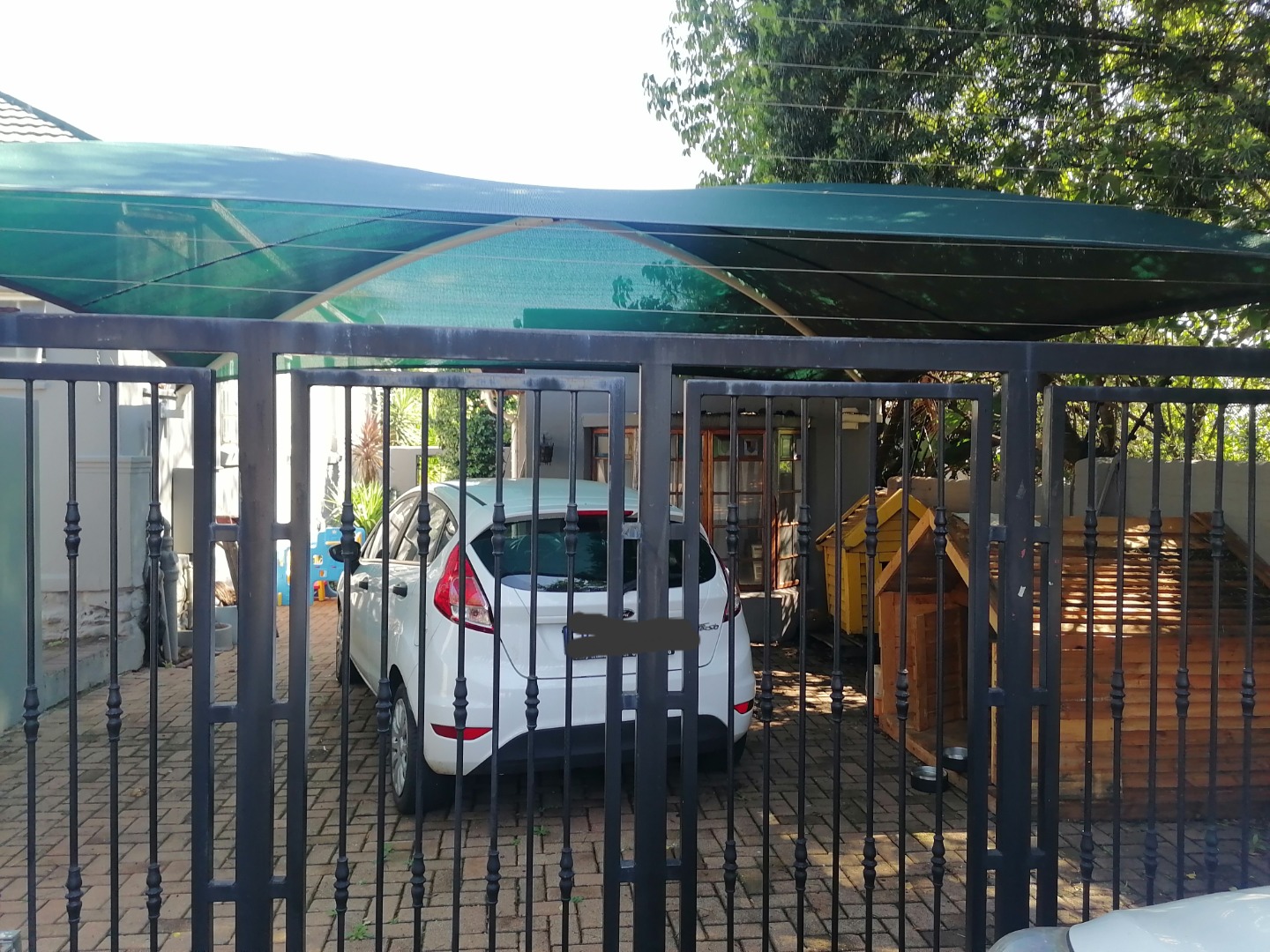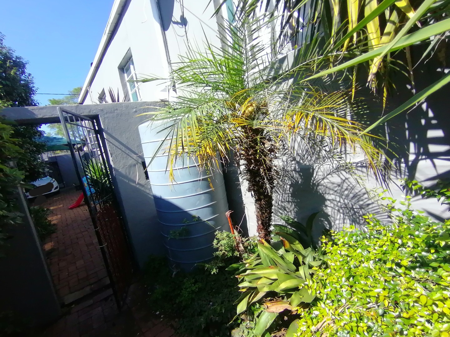 The exterior boasts a manageable green garden with water tank fitted, offering a tranquil outdoor retreat with built-in braai area. Practicality is ensured with two dedicated open parking bays, providing secure off-street parking. This home is also pet-friendly, welcoming animal companions.