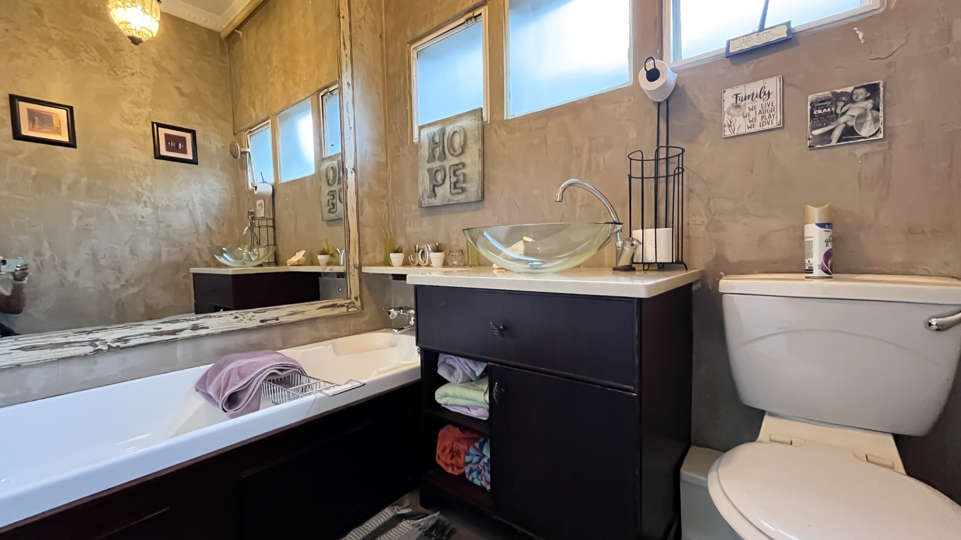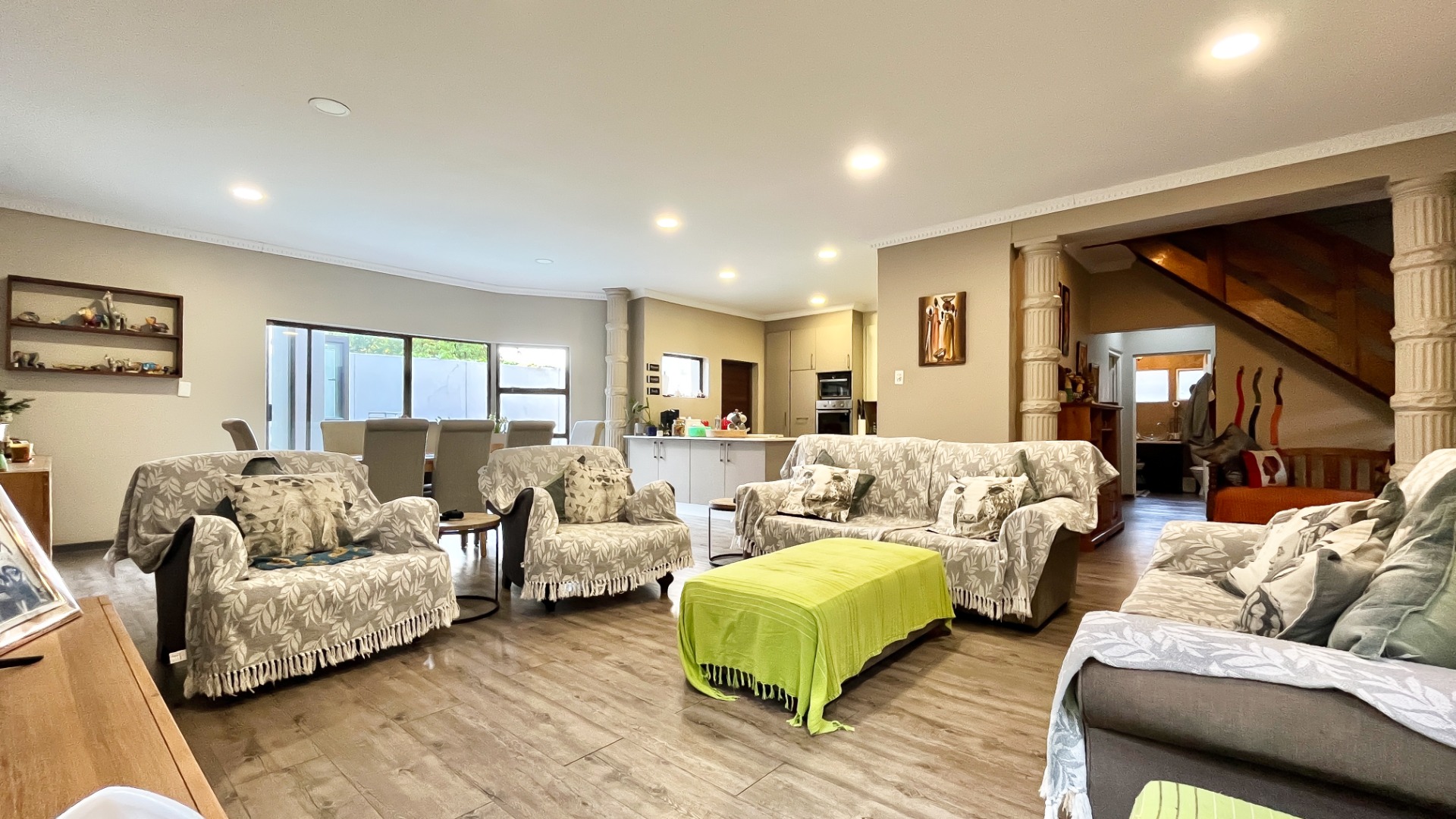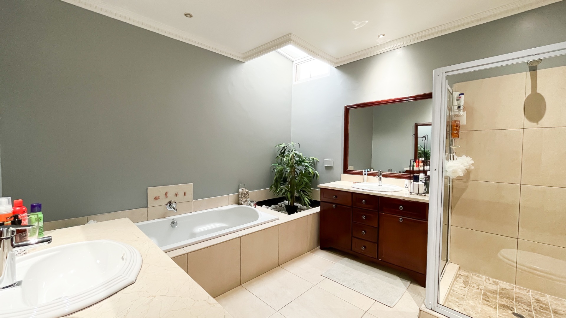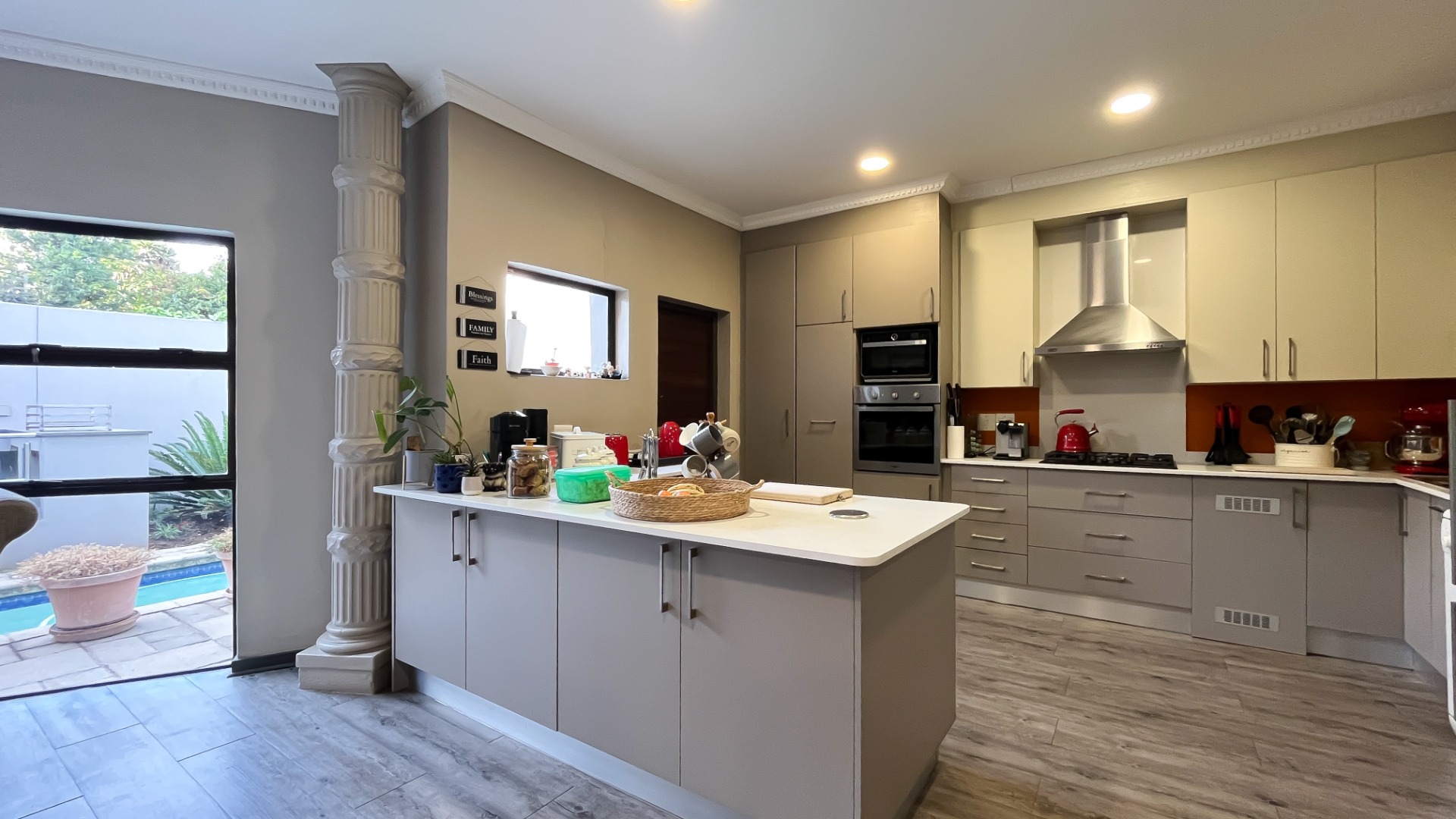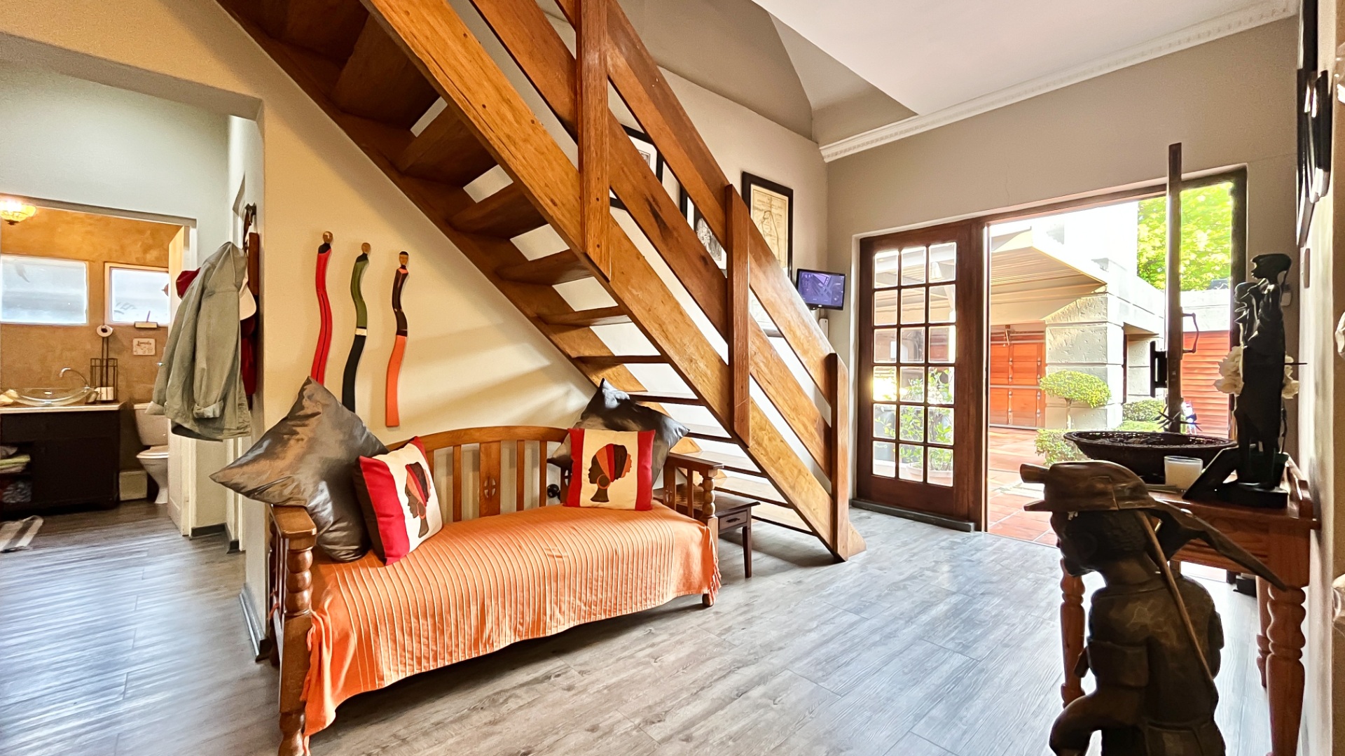 Extended family or guest options: main bedroom (has own patio) with massive en-suite bathroom and dressing area is downstairs with the second bedroom and family bathroom. Large study downstairs could also double as a spare bedroom giving more options. Upstairs there are two big bedrooms plus another family bathroom. Above the garage is a fully renovated flatlet with own entrance and bathroom plus kitchenette that can be used for staff quarters, teenage pad or a guest suite. Or could easily be rented out for income-generation
