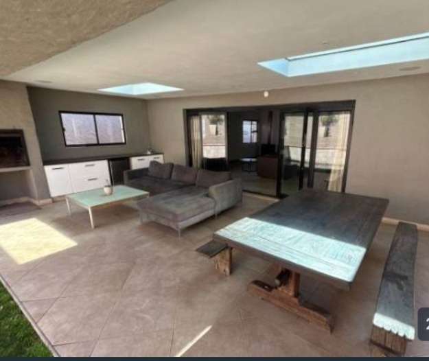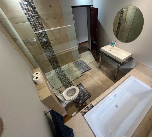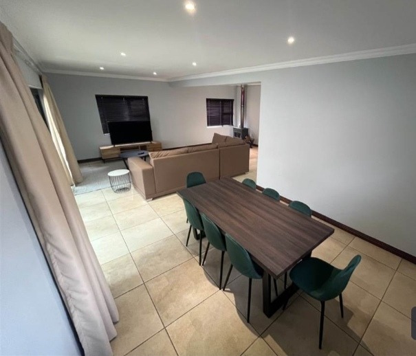 Spacious modern kitchen with lots of cupboards ready for you and your family to prepare meals with easy, well maintained fully furnished 4 bedrooms main with en-suit and walk-in cupboards, 3 bathrooms house with large entertainment patio, swimming pool for hot summer days, with prepaid electricity and invetor back-up power.