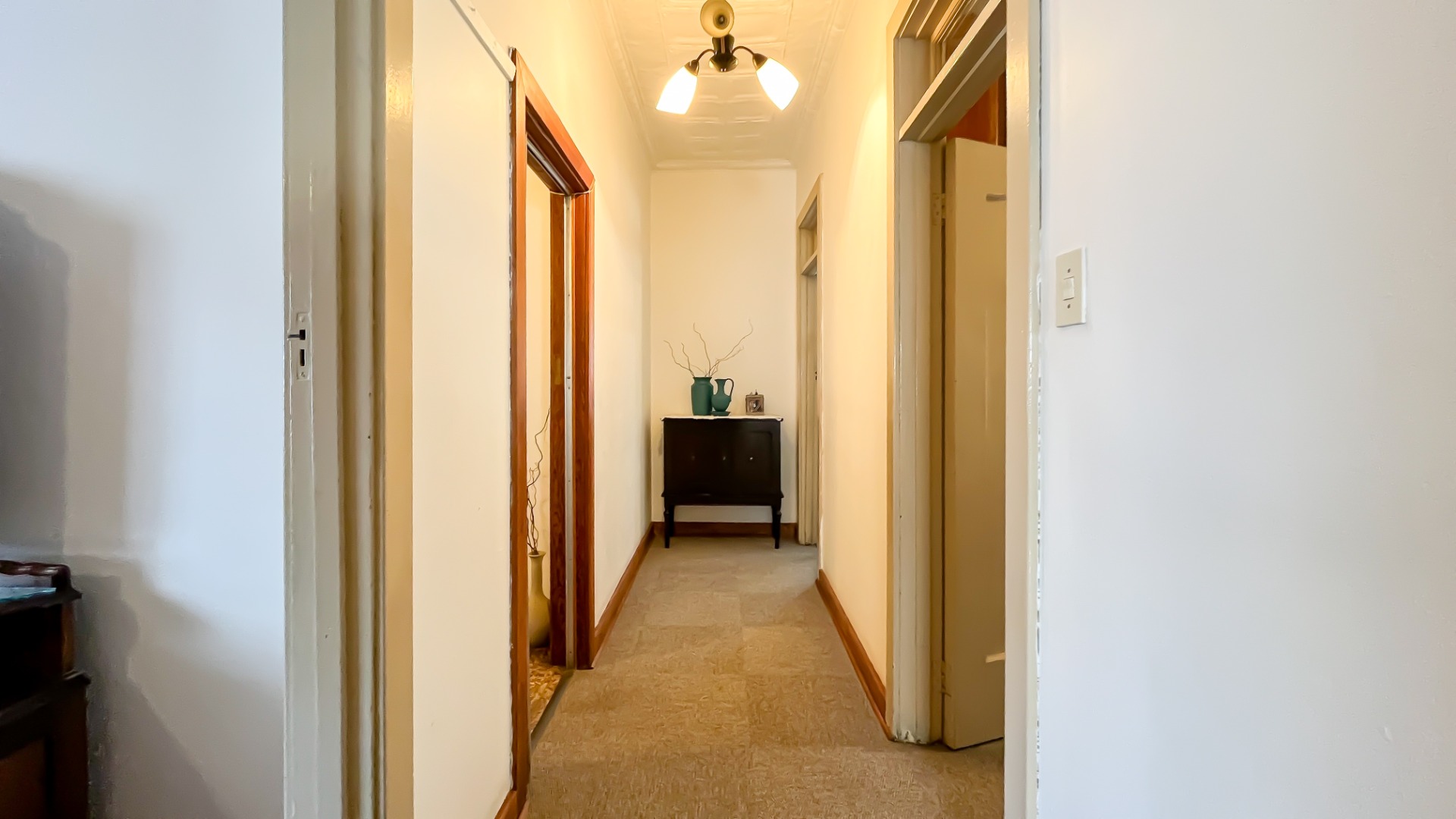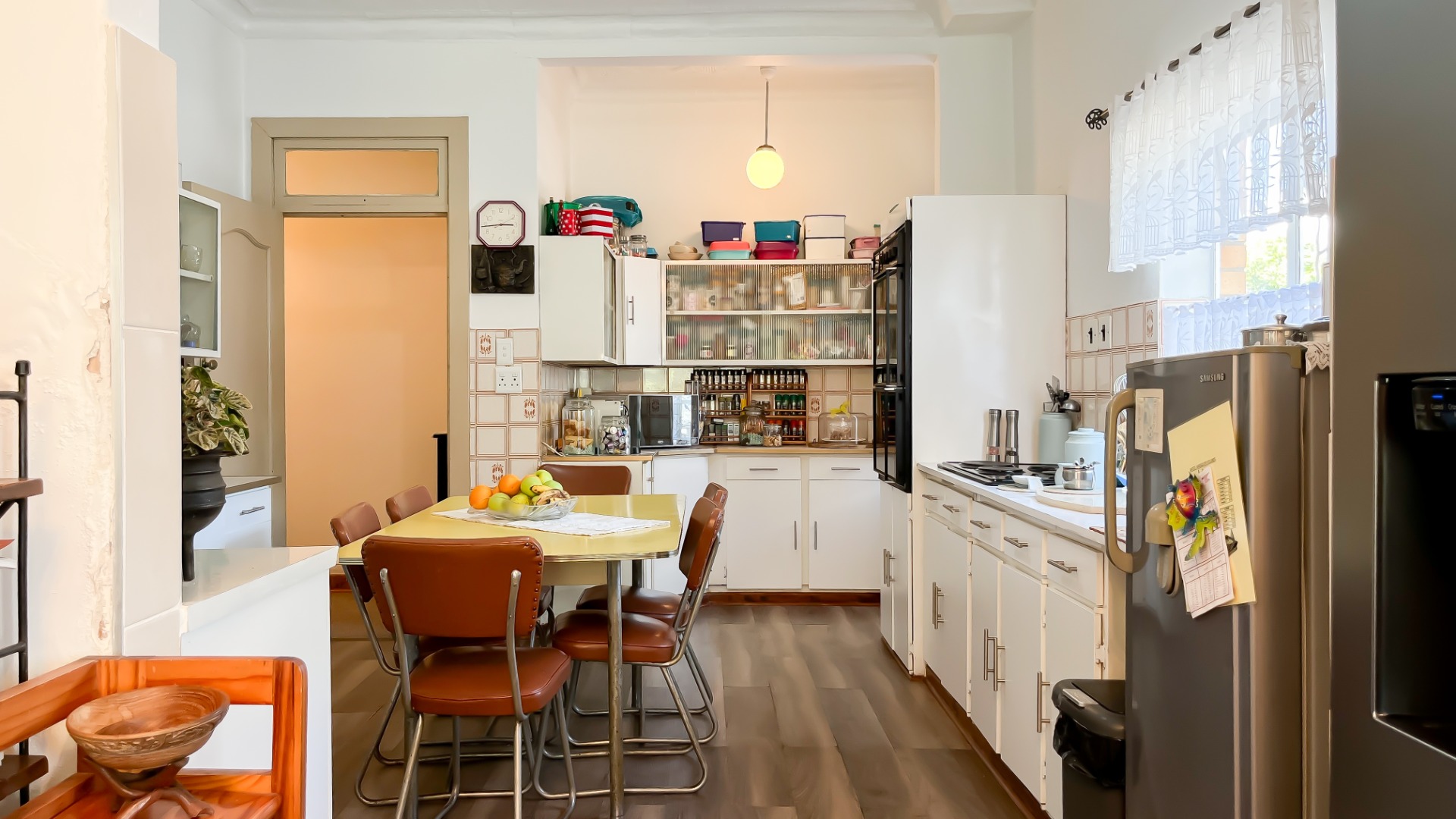 All three bedrooms are adorned with beautiful pressed steel ceilings, adding timeless architectural character and charm. The well-appointed kitchen is thoughtfully fitted and features a counter-level oven, creating a practical yet stylish space for everyday cooking and gathering.