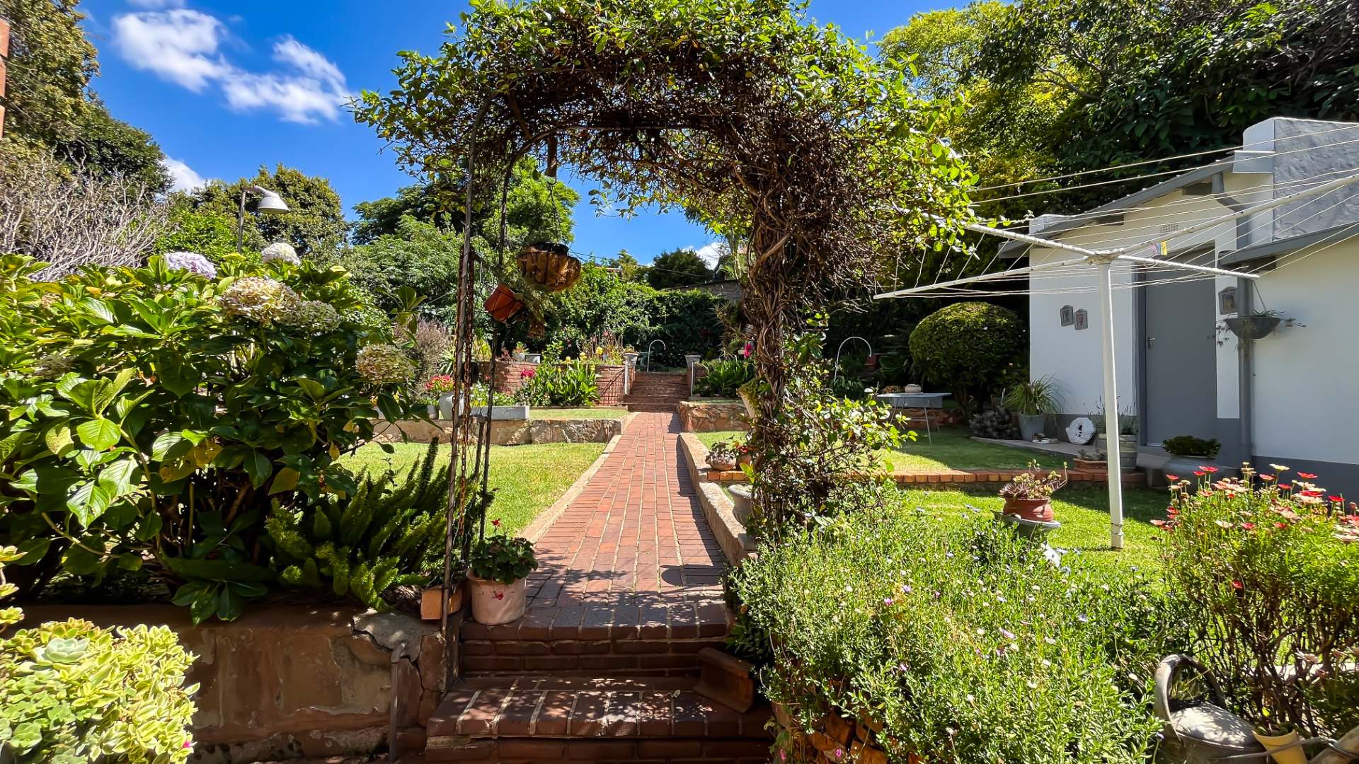 The immaculate garden unfolds in tiered levels, rising gracefully to reveal a spectacular entertainment haven at the top. Here, a sparkling blue swimming pool is framed by beautifully maintained lawns, creating a private and elevated retreat perfect for hosting family and friends. The stepped landscaping adds depth, character, and a sense of occasion as you ascend to the pool area — a setting designed for memorable gatherings and relaxed summer afternoons.