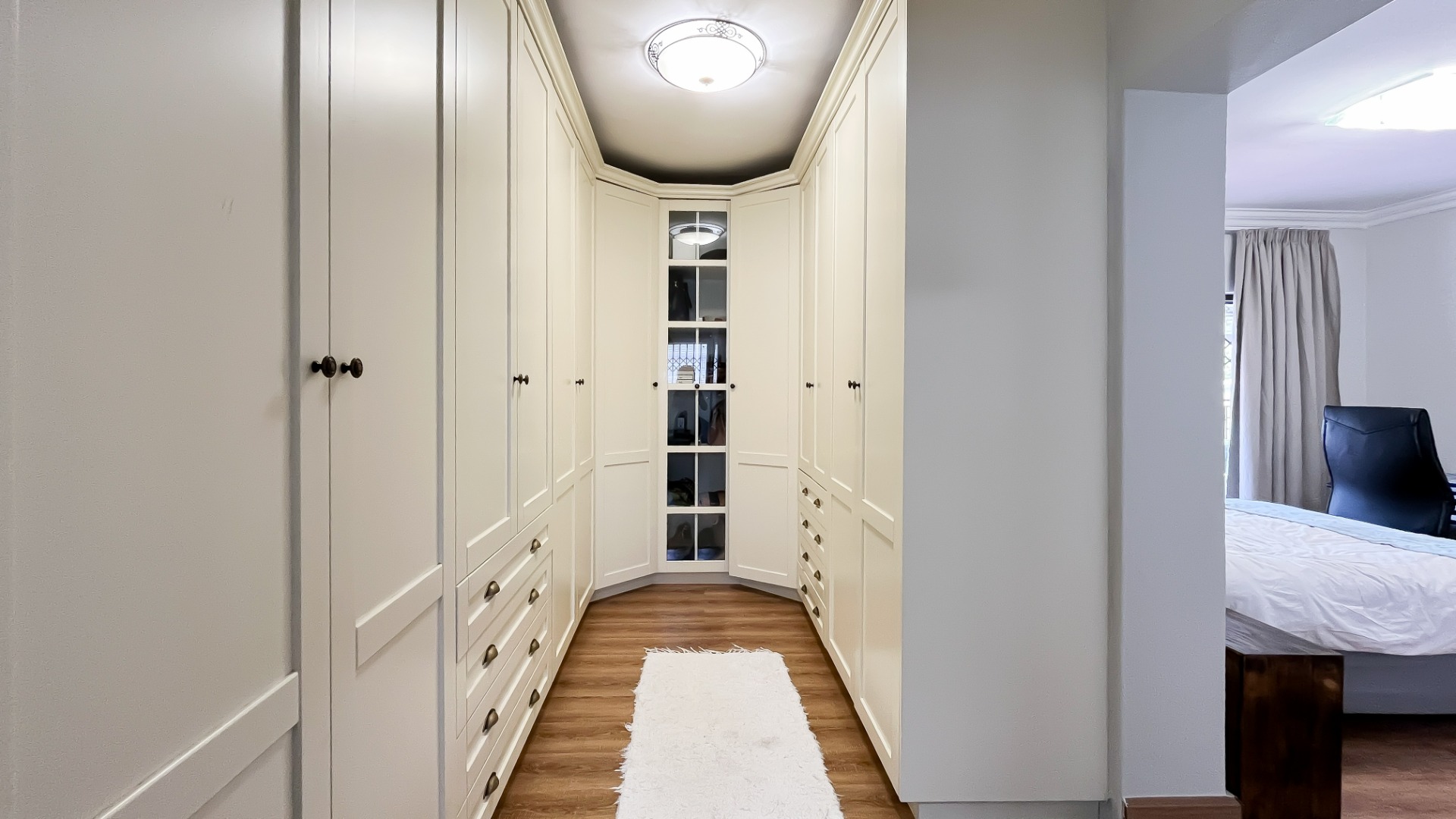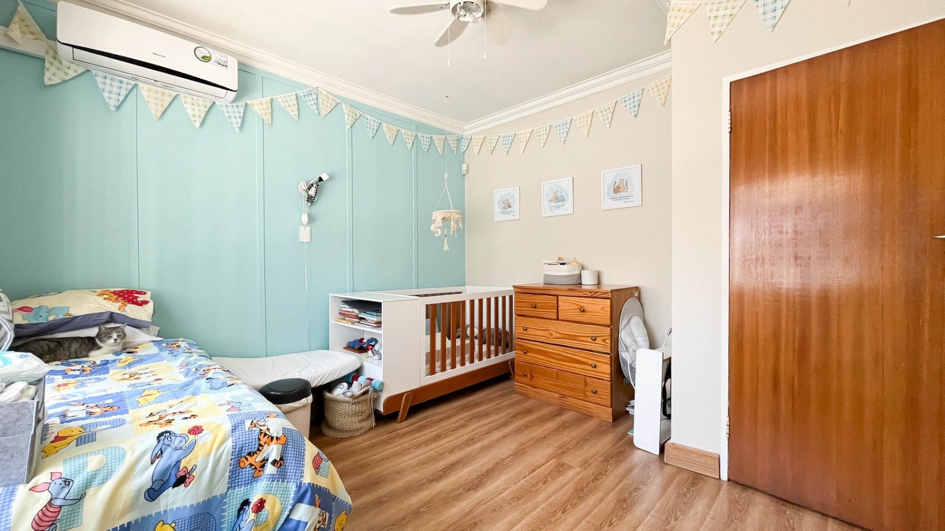 The private bedroom wing offers four well-sized bedrooms, serviced by a full family bathroom. The main suite is a true retreat, featuring a luxurious walk-in closet and a full en-suite bathroom. Three air conditioners (main bedroom, lounge, and third bedroom) ensure year-round comfort.