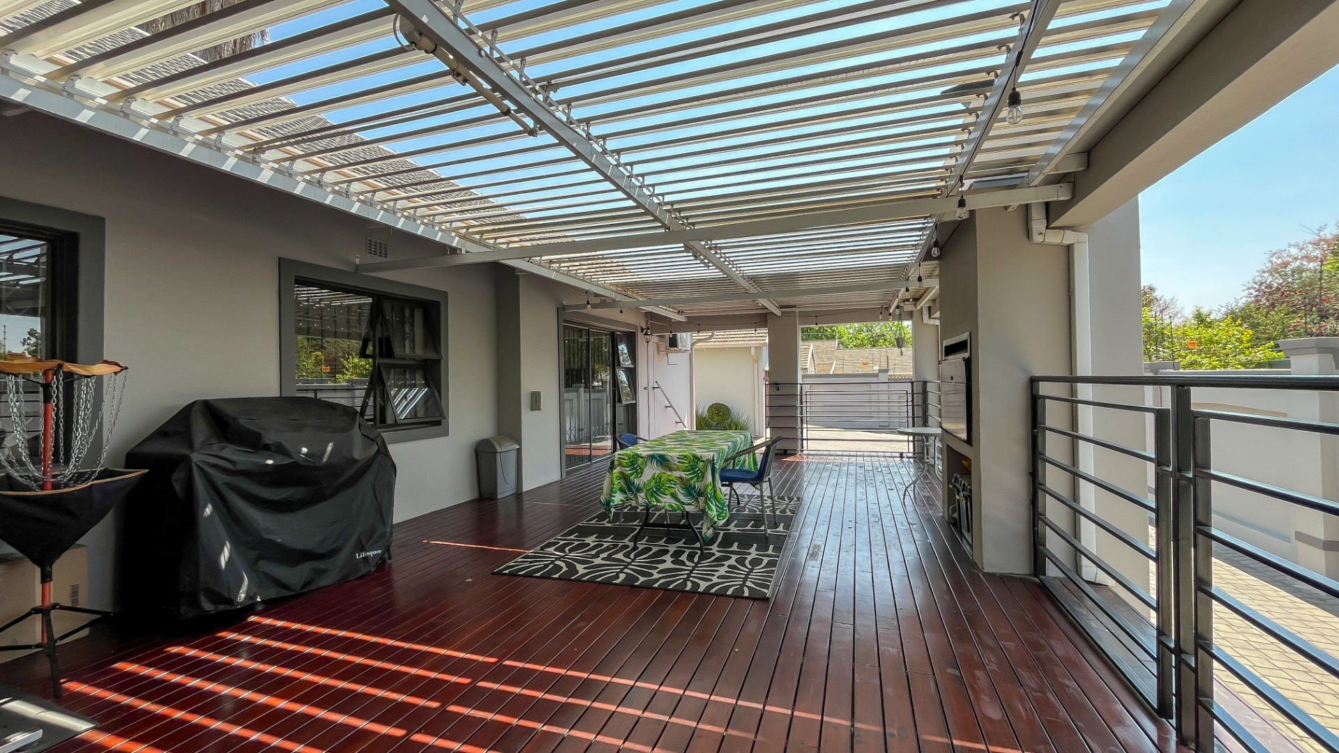 For entertainers, the expansive undercover deck with built-in braai is the ultimate gathering space, overlooking the manicured garden. This inviting outdoor area is ideal for both relaxed family living and hosting guests.