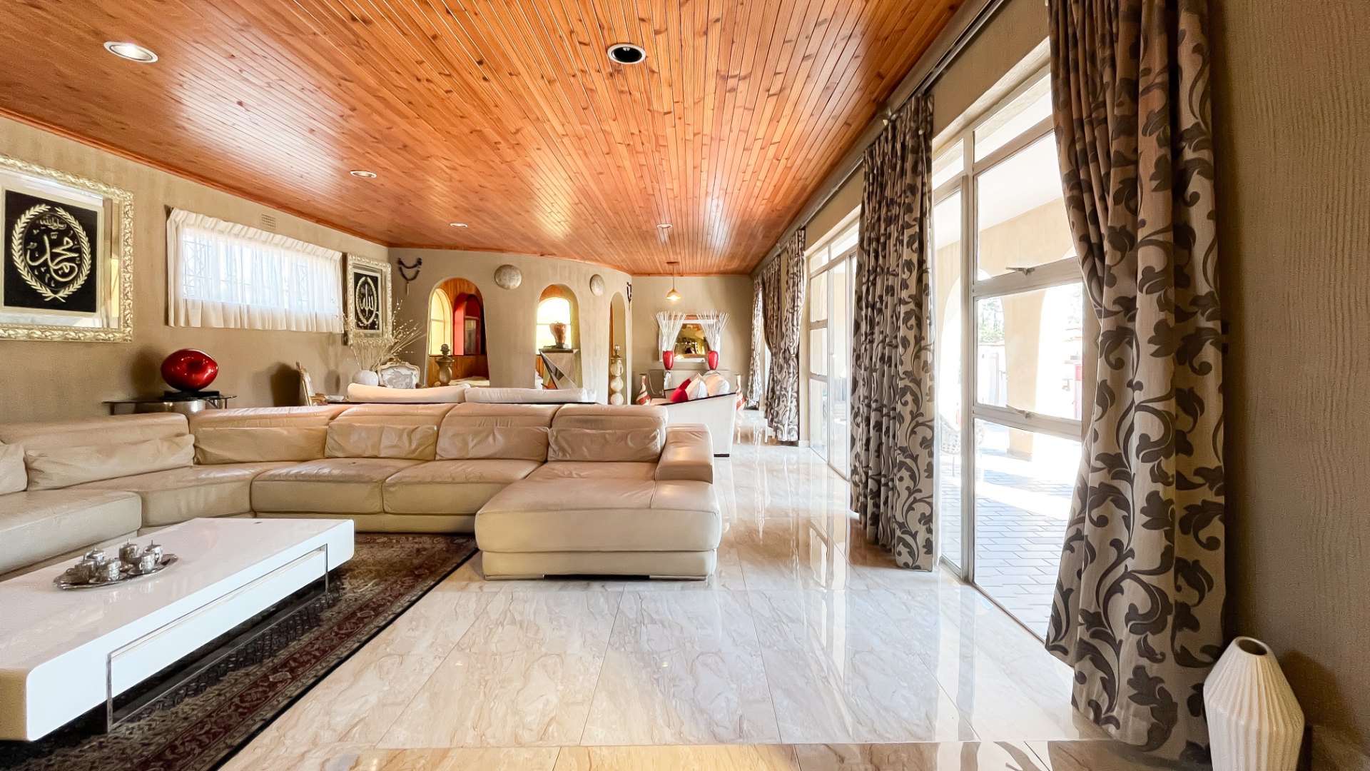 - Spacious fully tiled lounge, featuring a corner section with built-in pillars – ideal for creating your own bar or entertainment space.