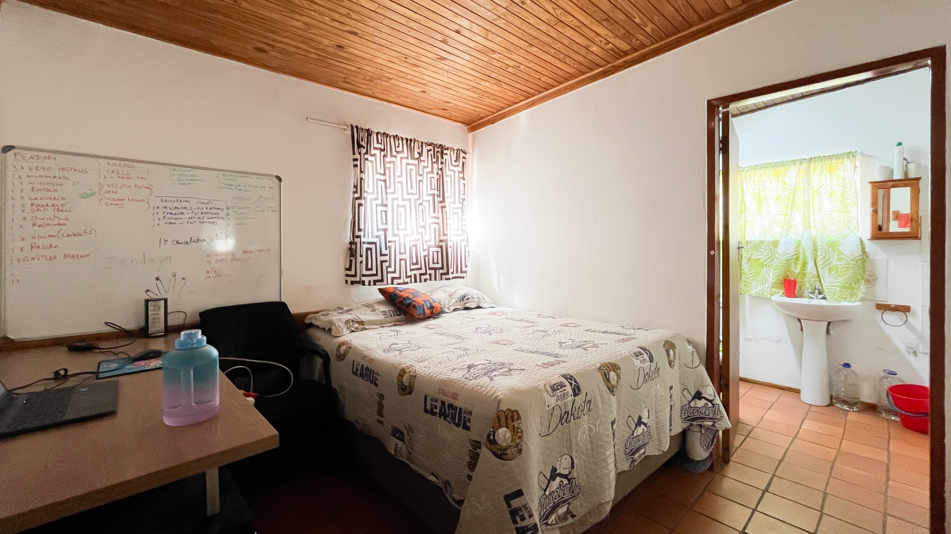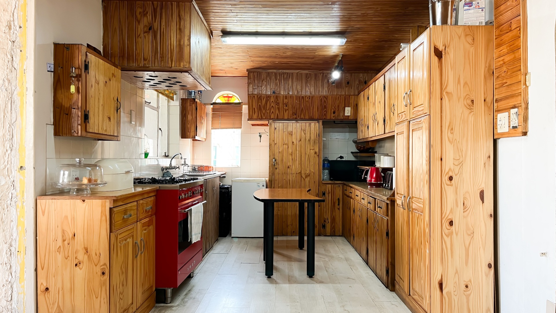 - Generous kitchen with built-in cupboards, gas stove, and enough room for a 6–8-seater dining table.
