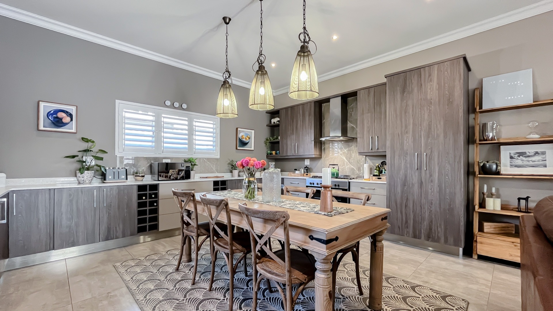 At the heart of the home lies a beautifully curated chef’s kitchen. Whether you are hosting a dinner party or enjoying a quiet morning coffee, the premium 5-plate ELBA Gas hob and electric oven provide the professional-grade tools you need. The sleek layout and high-end finishes make this space as much a visual delight as it is a functional powerhouse.