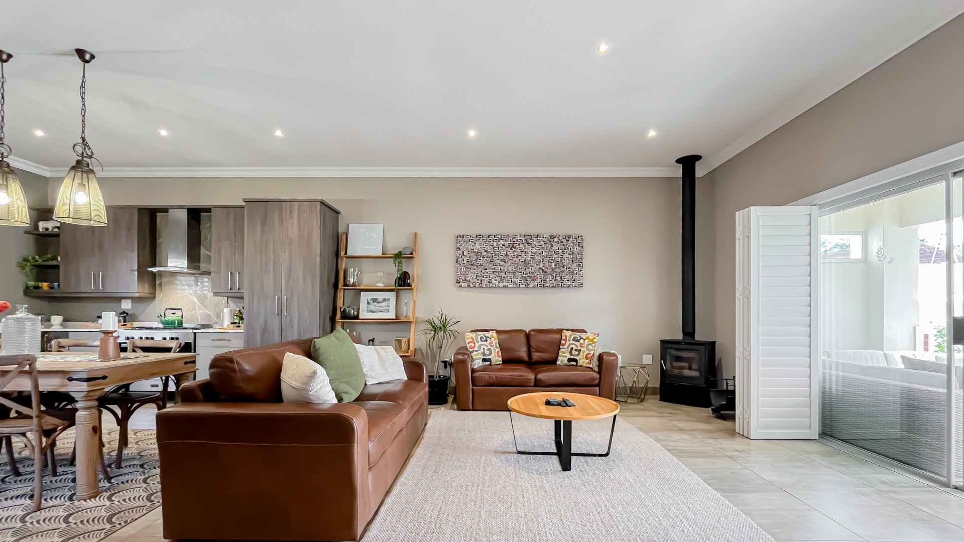 The transition from indoor luxury to outdoor relaxation is effortless. The spacious living area flows directly onto a private patio, perfect for alfresco dining or easy indoor-outdoor entertainment. It’s an ideal sanctuary for weekend braais or sunset cocktails with friends.