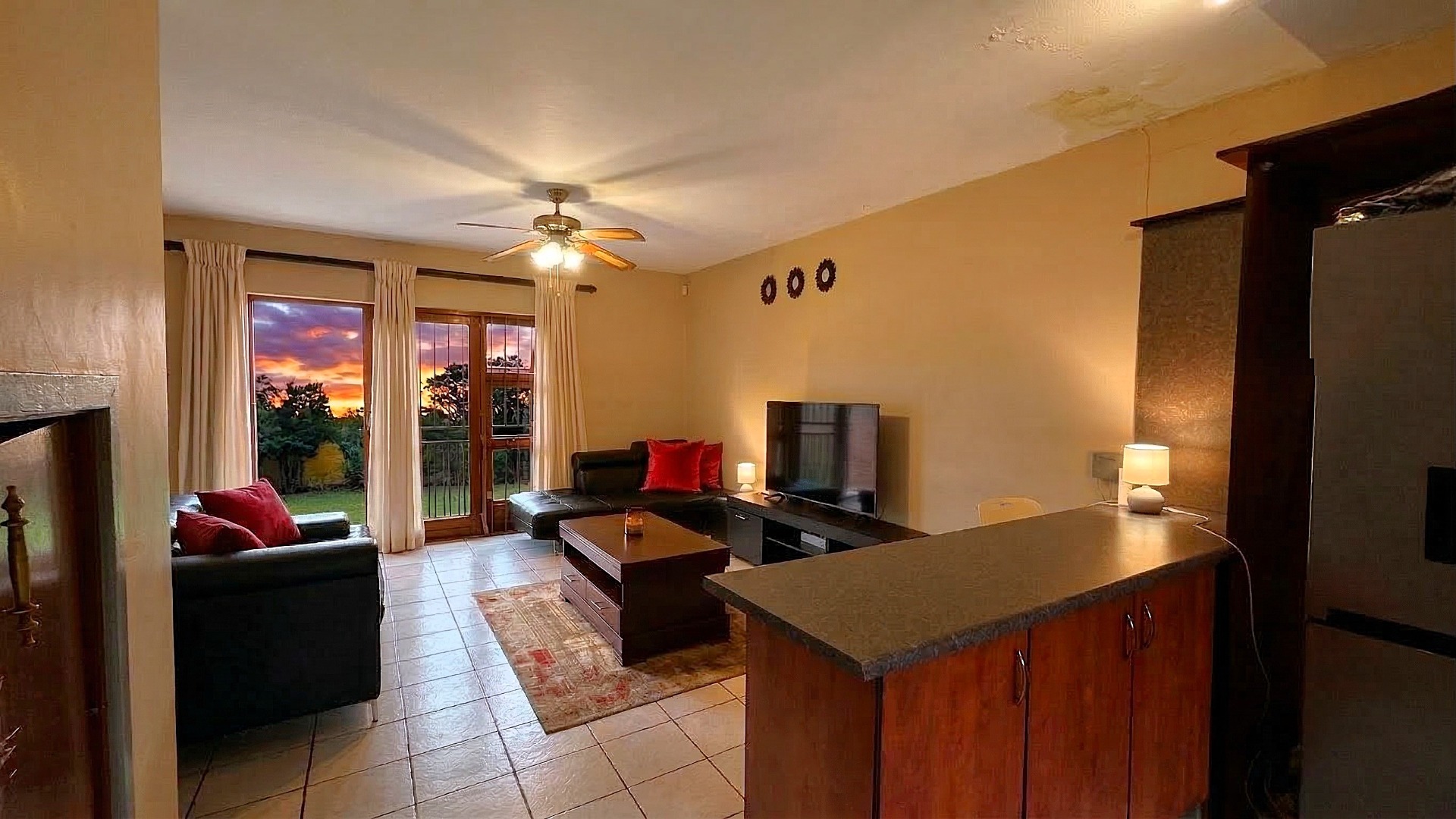 The lounge opens through a door onto a private garden, ideal for relaxing, entertaining guests, or enjoying outdoor living.