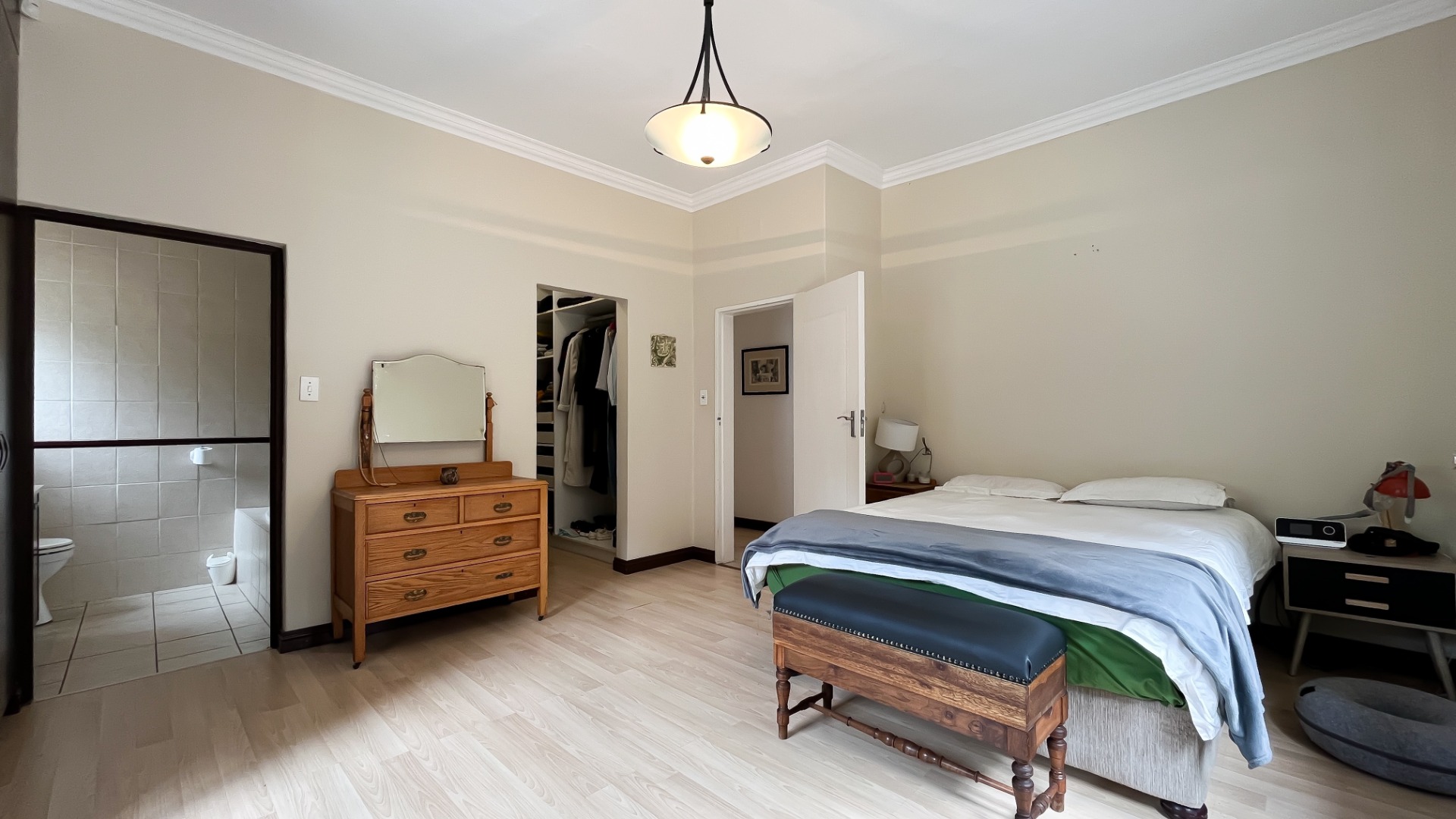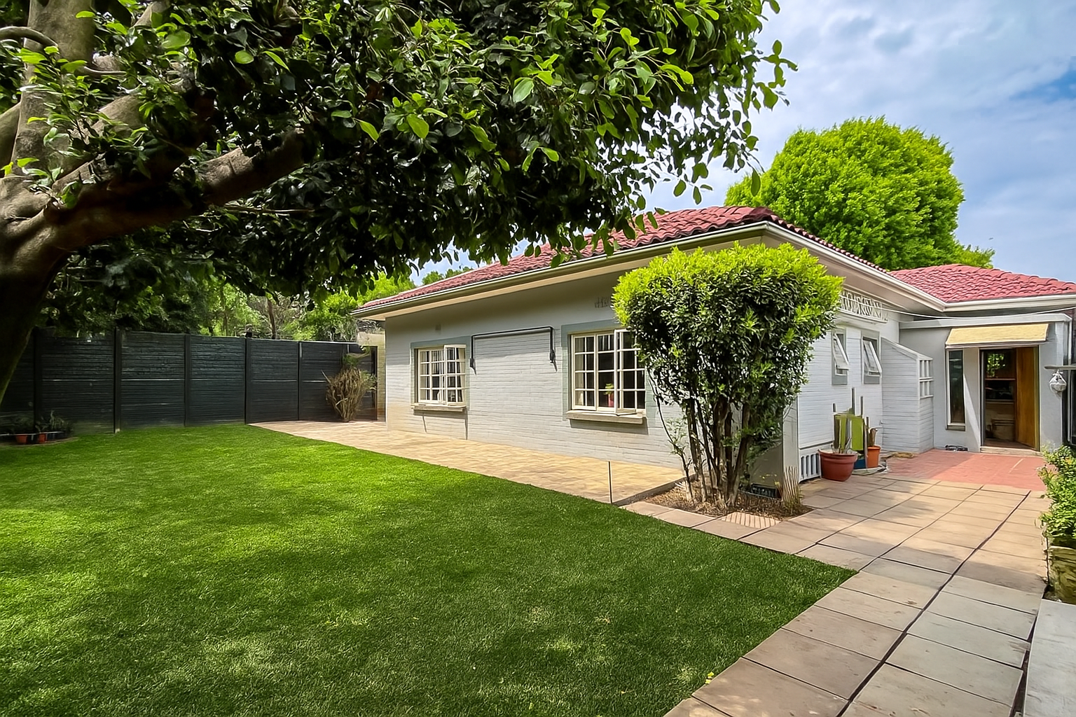 Discover this charming residential property nestled in the sought-after suburb of Linden, Randburg. This inviting single-story home, set on a generous 1179 sqm erf, immediately impresses with its well-maintained exterior, featuring a classic clay tiled roof, light-colored brick facade, and a manicured lawn framed by mature trees, offering both shade and aesthetic appeal.
