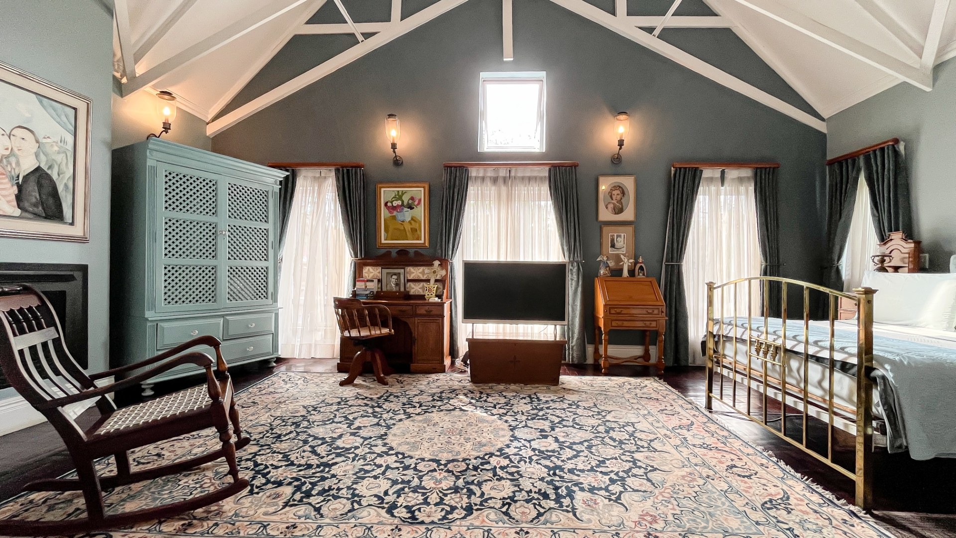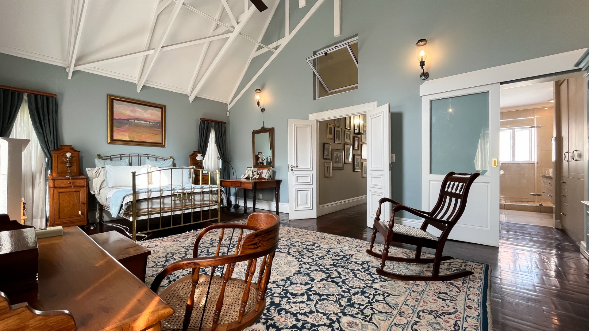 Upstairs holds 2-bedroom suites with full bathrooms and double vanities, air conditioning and ample built-in cupboards. The master bedroom has proportions that will delight those who enjoy space. This bedroom boasts a pyjama lounge with fireplace and leads through double French doors into a large conservatory/work-from-home treehouse style office space.