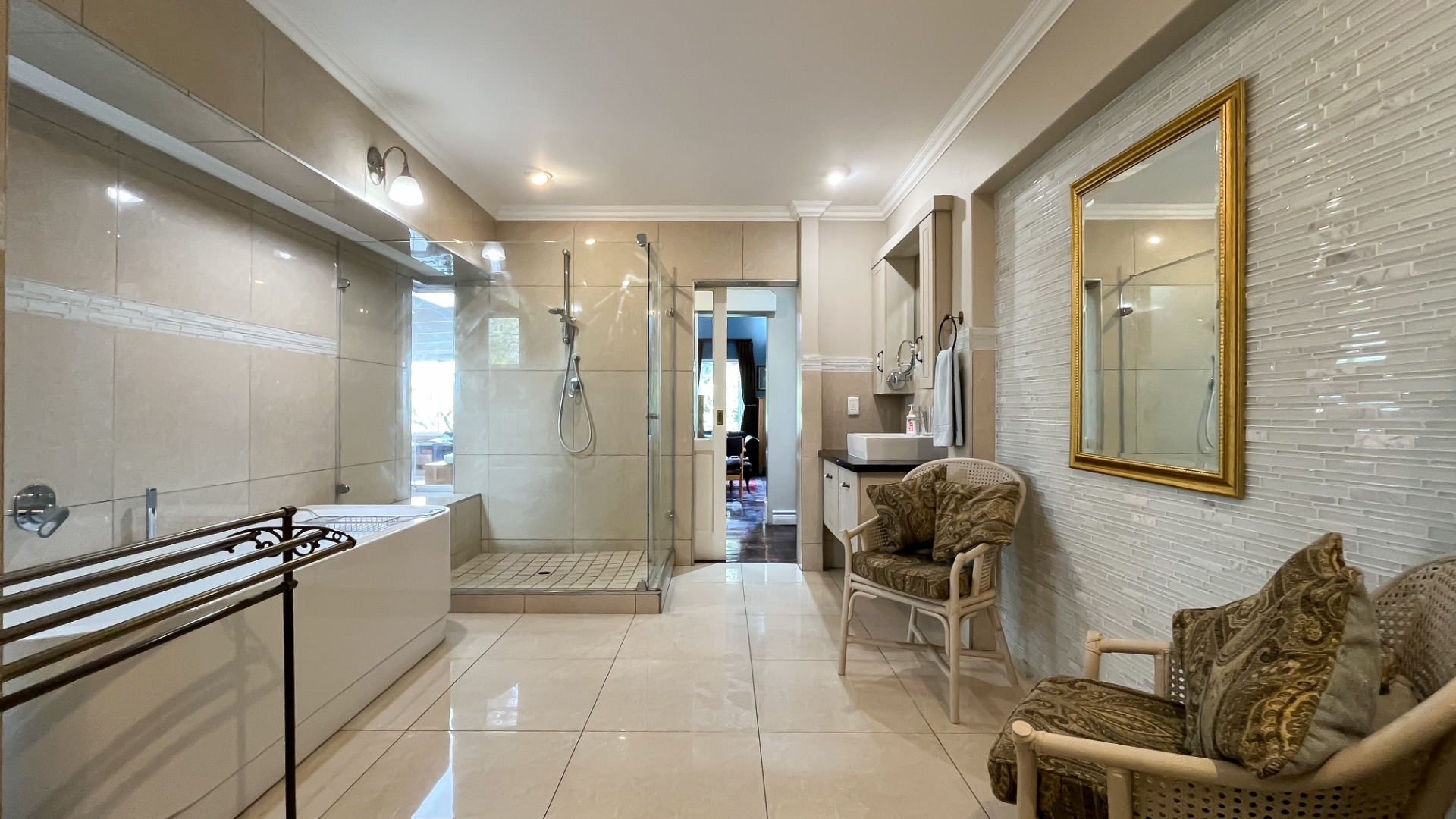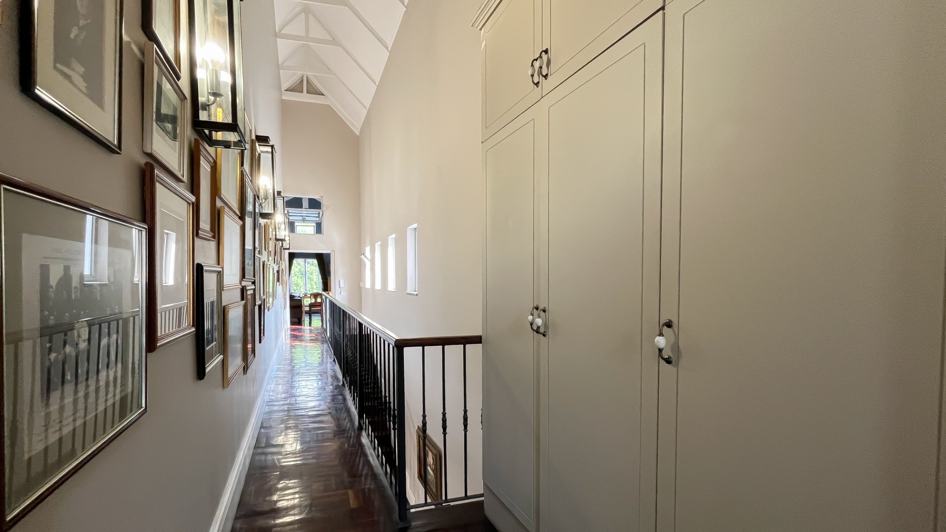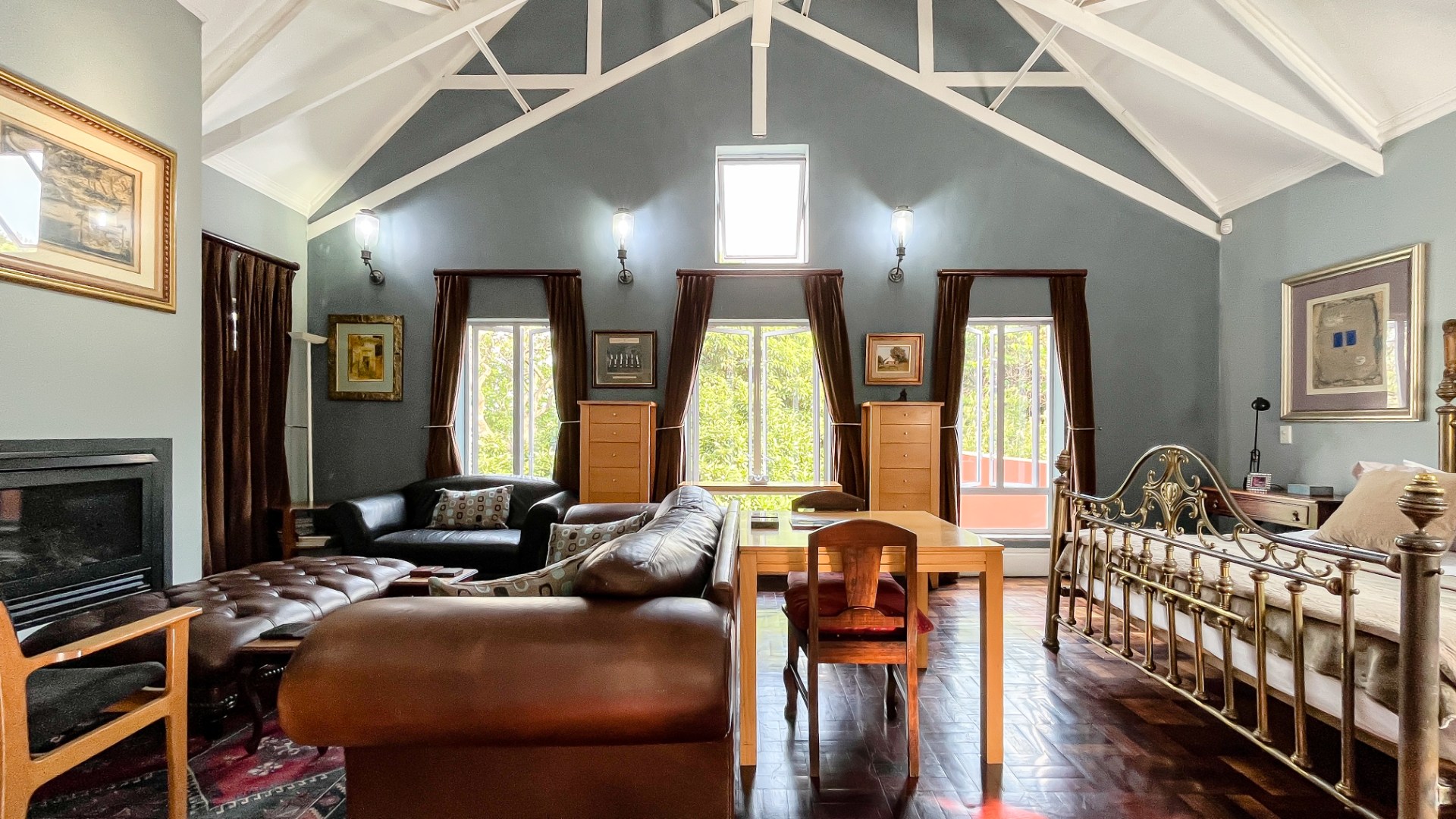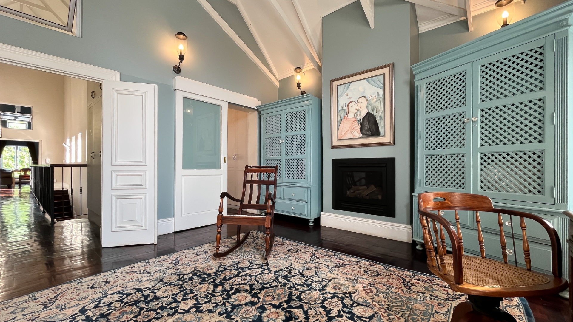 Upstairs holds 2-bedroom suites with full bathrooms and double vanities, air conditioning and ample built-in cupboards. The master bedroom has proportions that will delight those who enjoy space. This bedroom boasts a pyjama lounge with fireplace and leads through double French doors into a large conservatory/work-from-home treehouse style office space.