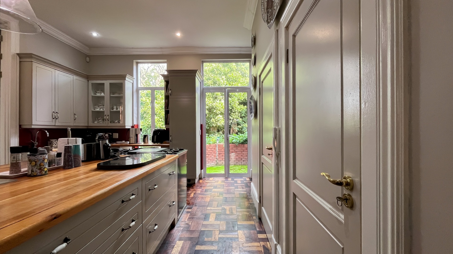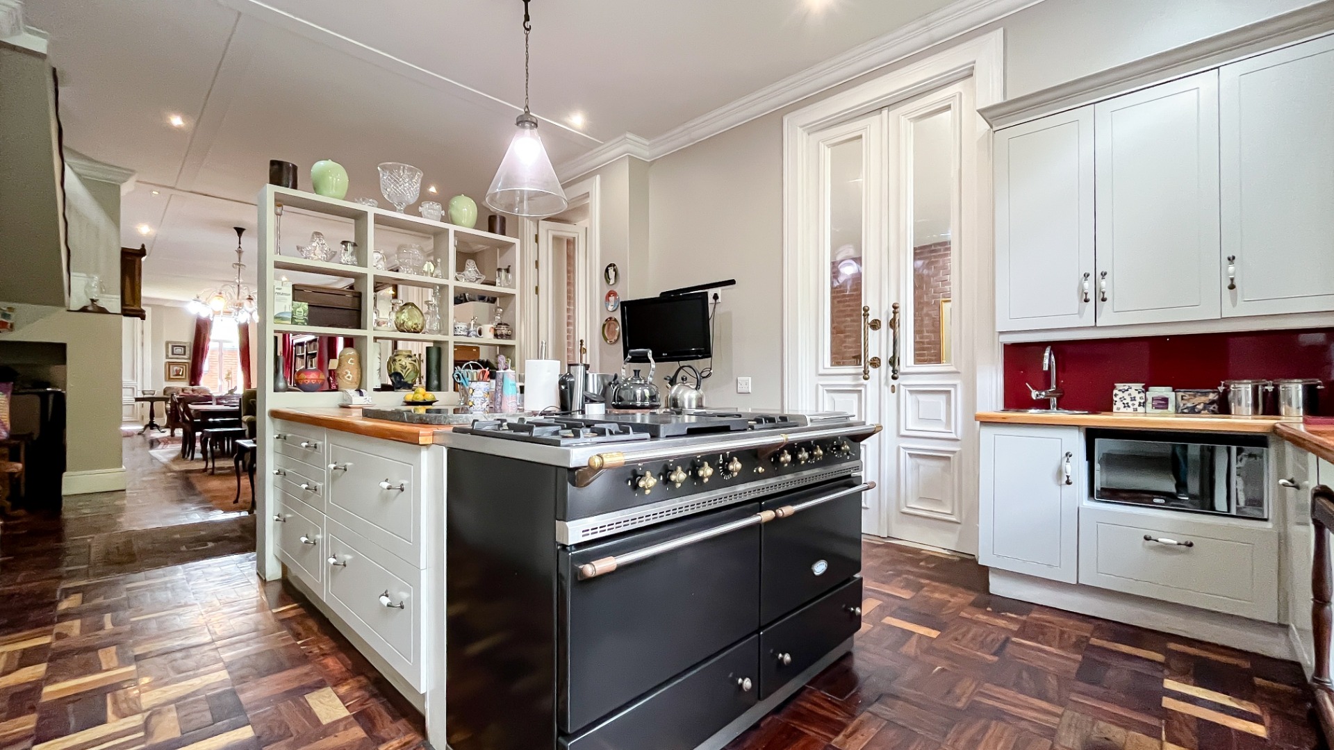 Farmhouse kitchen with piped gas and separate scullery and integrated fridge. Spacious walk-in grocery storeroom and a separate Butler’s pantry. A luxury for every home chef.
