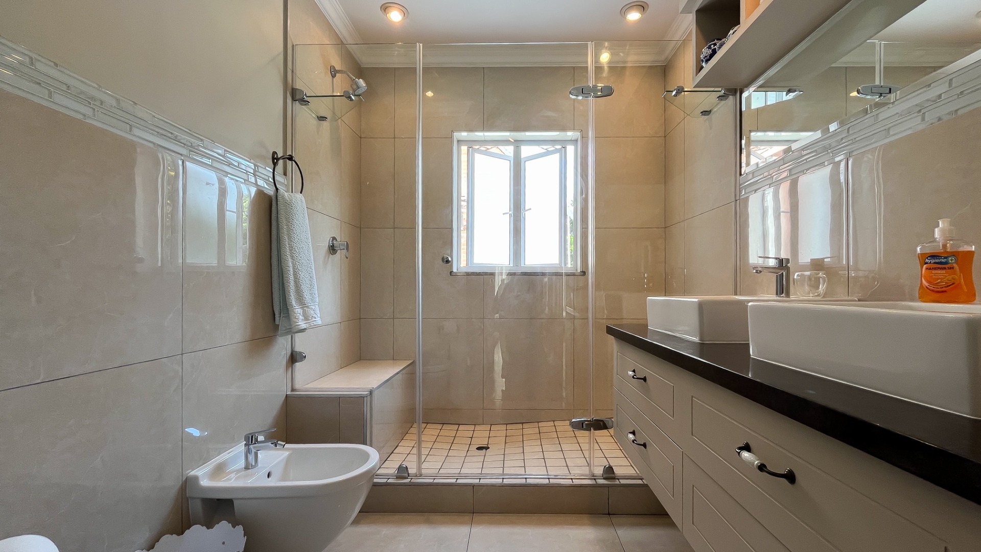 Designed for entertainment on the northern side of the property, the magnificent braai room is light and bright with stack doors opening into front and back gardens. Leading from this space is a wine cellar to compliment a typical South African lifestyle.