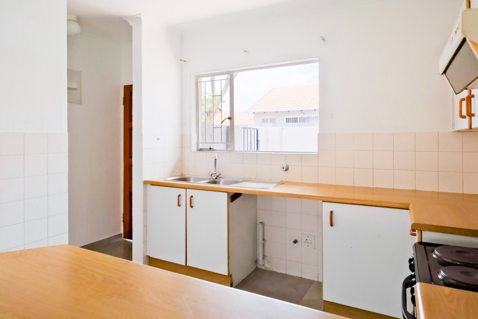 The home features a bright and spacious lounge that flows effortlessly into a fully equipped kitchen, creating a warm and inviting living environment. Accommodation includes two generously sized bedrooms with built-in cupboards and one bathroom.