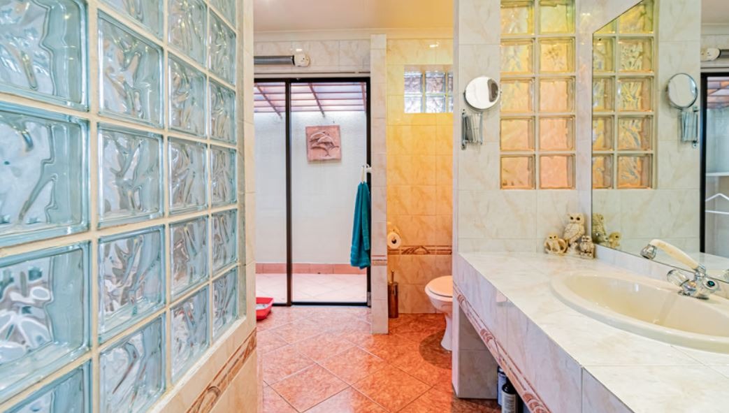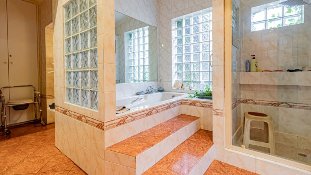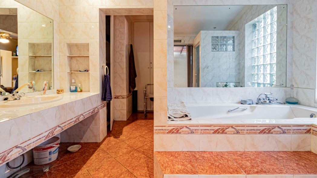 Main Bedroom with En-Suite – includes bath, shower, basin, toilet, and access to a private, covered atrium.