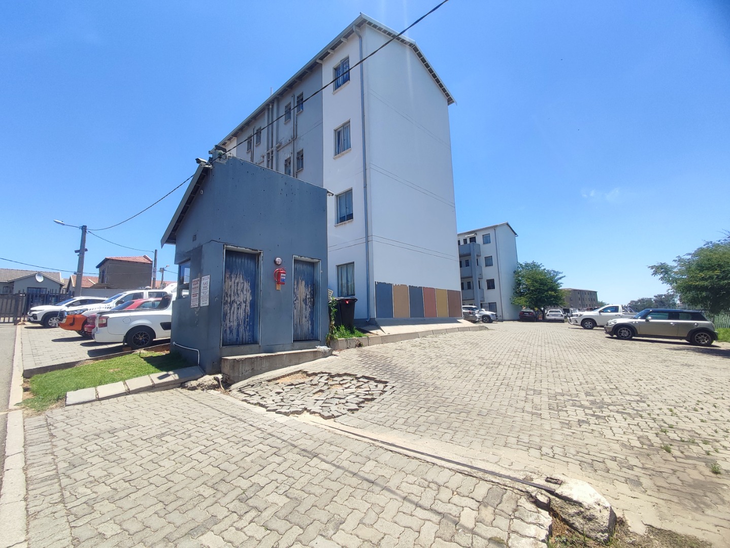 Discover this inviting 2-bedroom apartment situated within a secure complex in Fleurhof, Roodepoort. The building boasts a modern two-tone exterior, creating a welcoming first impression. Residents benefit from robust security features, including 24-hour security, an access gate, and electric fencing, ensuring peace of mind. A dedicated parking space is provided within the paved complex grounds, enhancing convenience and safety.