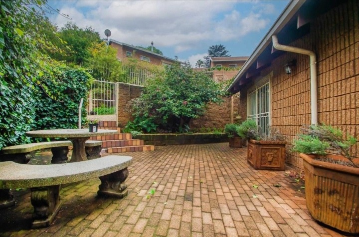 Outside, you'll find a spacious paved patio area, ideal for chilling out or hosting a braai, surrounded by a charming terraced garden. Imagine enjoying your morning coffee or evening sundowner on the private balcony, soaking in the scenic panoramic views of lush greenery and distant buildings. The property also includes a garden, paving, a driveway, and two garages, making life super convenient. Plus, your furry friends are welcome here!