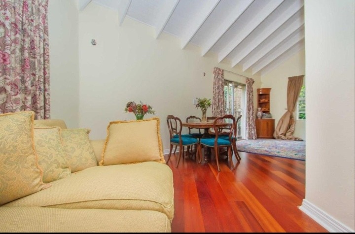 Nestled in the suburban charm of Florida North, Roodepoort, this lovely home offers a relaxed lifestyle within a secure complex. Step inside and discover a welcoming open-plan living and dining area, complete with high vaulted ceilings and exposed beams that add a touch of character. The polished hardwood floors flow beautifully throughout, creating a warm and inviting atmosphere. The kitchen is a real highlight, featuring modern built-in stainless steel appliances like an oven, microwave, and range hood. You'll find plenty of storage with the light wooden cabinetry, complemented by dark countertops and a neat tiled backsplash. It's a functional space that connects nicely to the living areas, perfect for everyday life and entertaining.