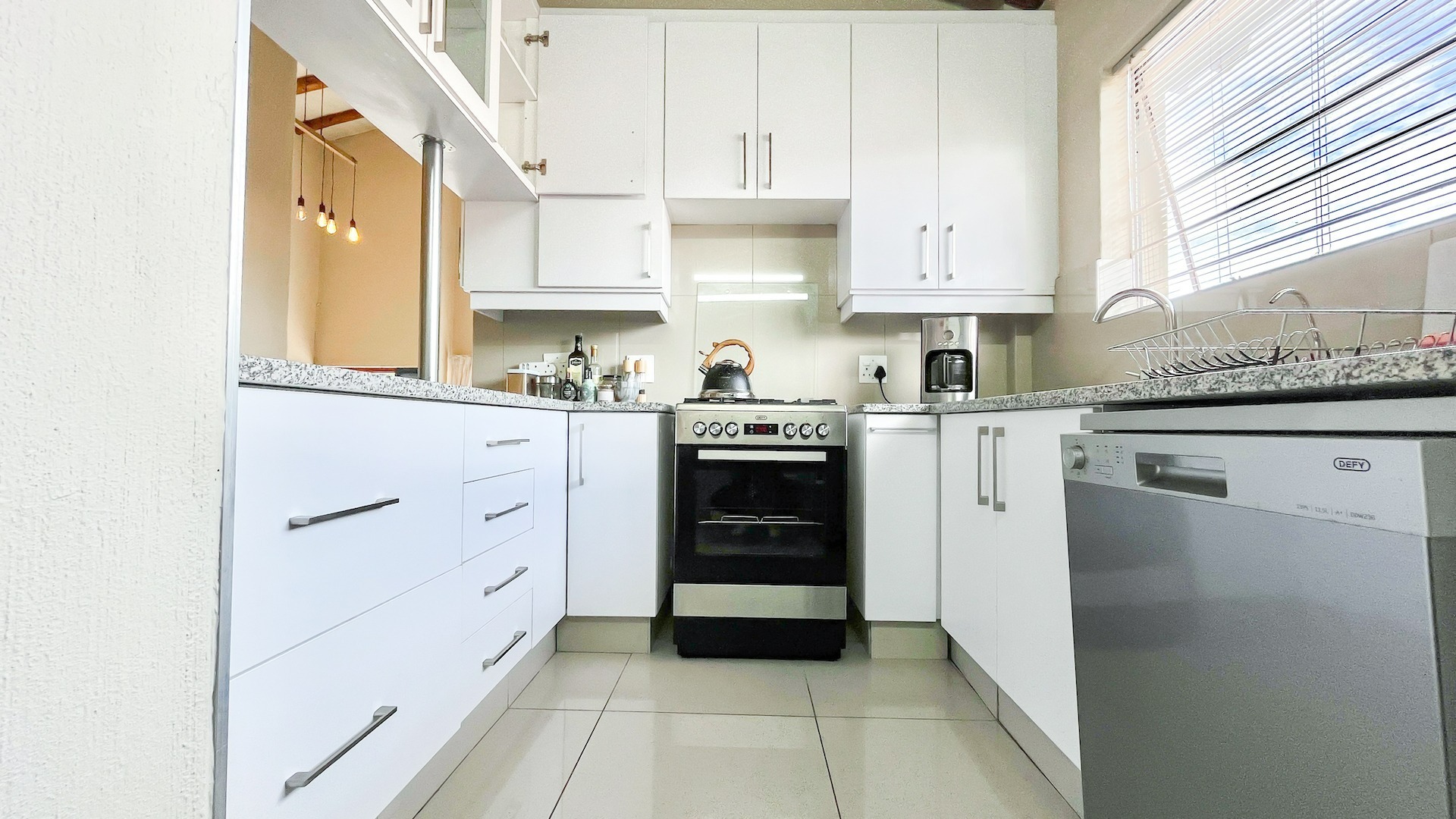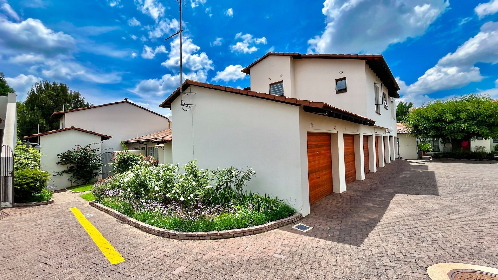 Factory styled lights , porcelain floor tiles, high beamed ceilings and trellises throughout. One garage underneath unit and is deep enough to offer additional storage. Loads of parking. Offset by magnificent closed off park, jungle gym, swimming pool and tennis courts. A property not to be missed