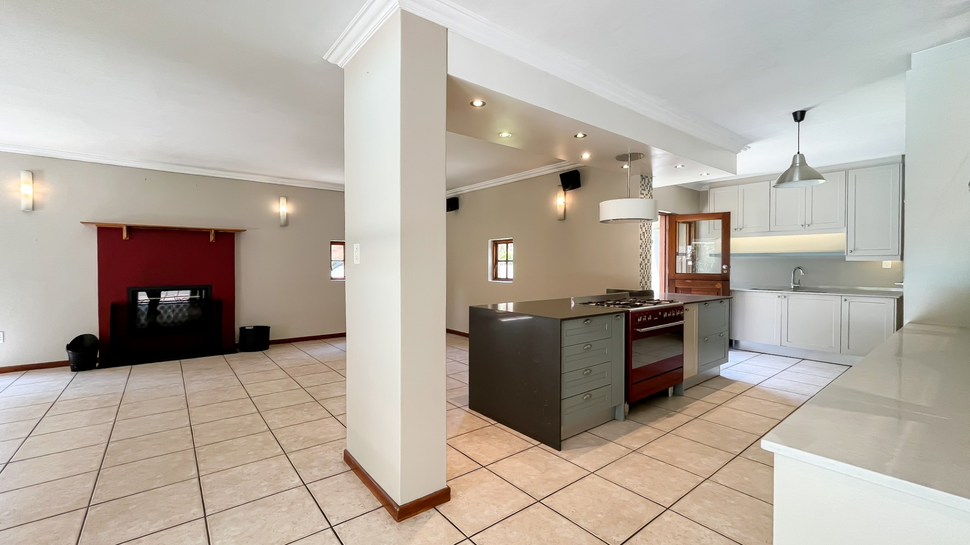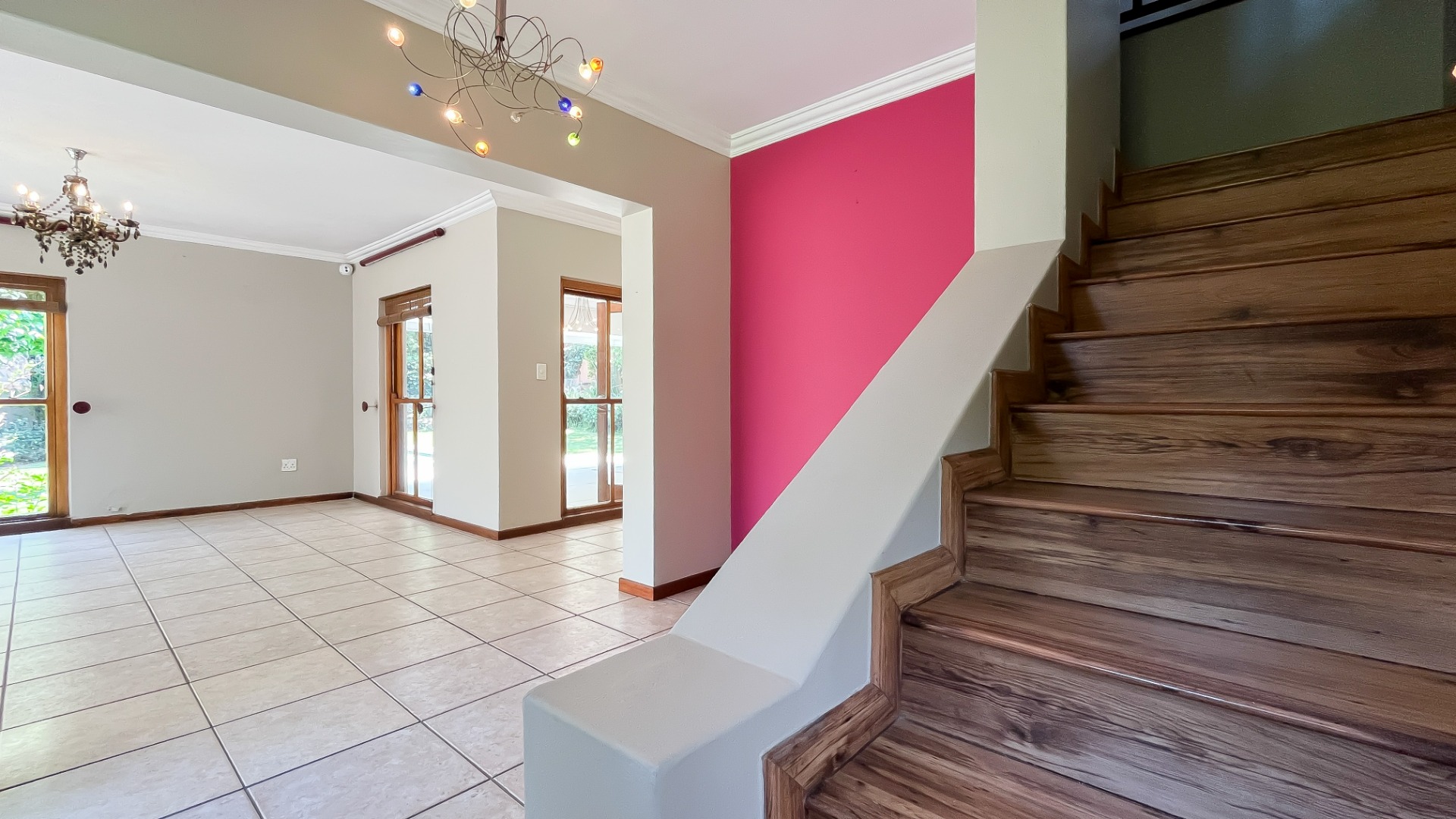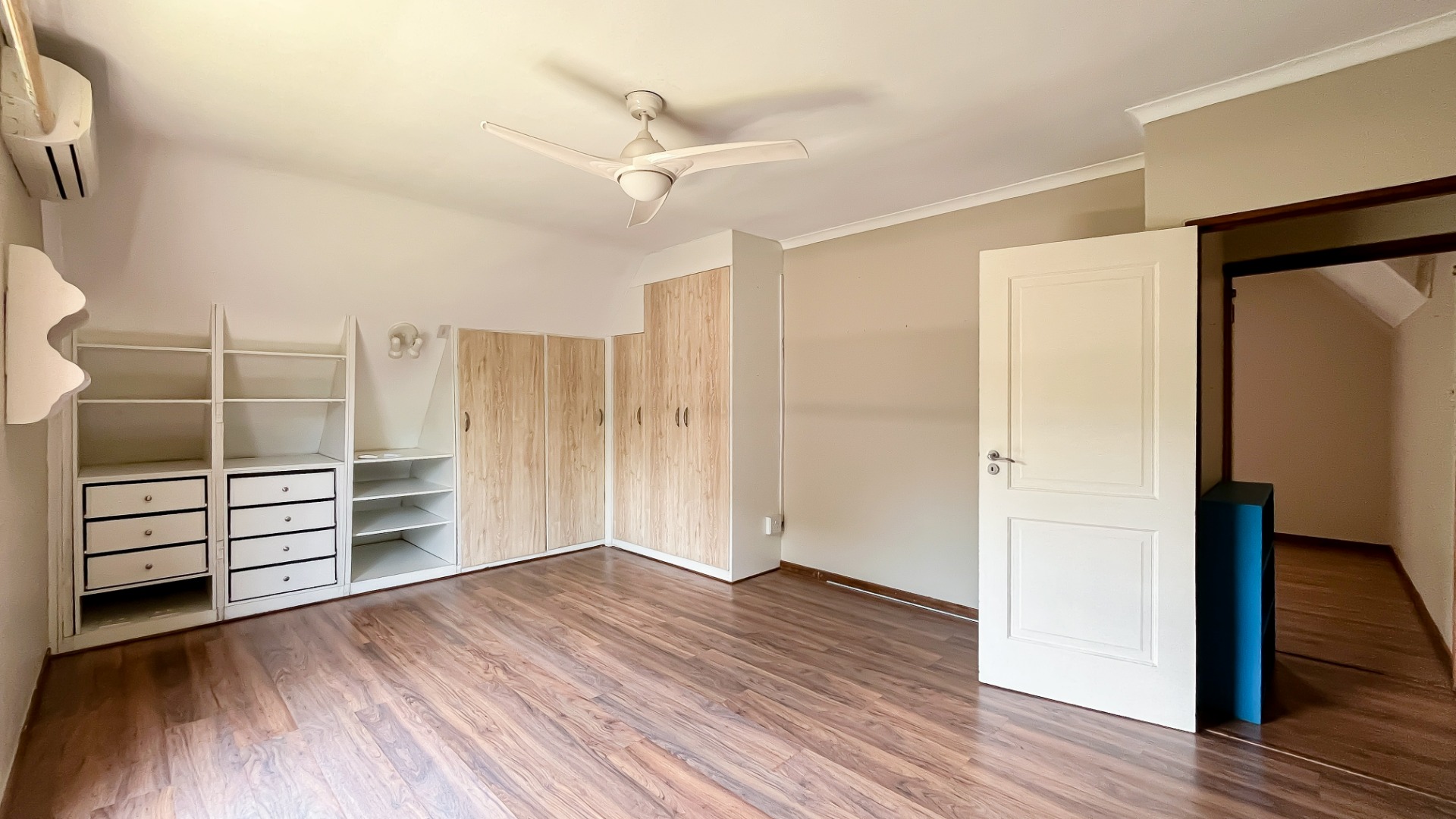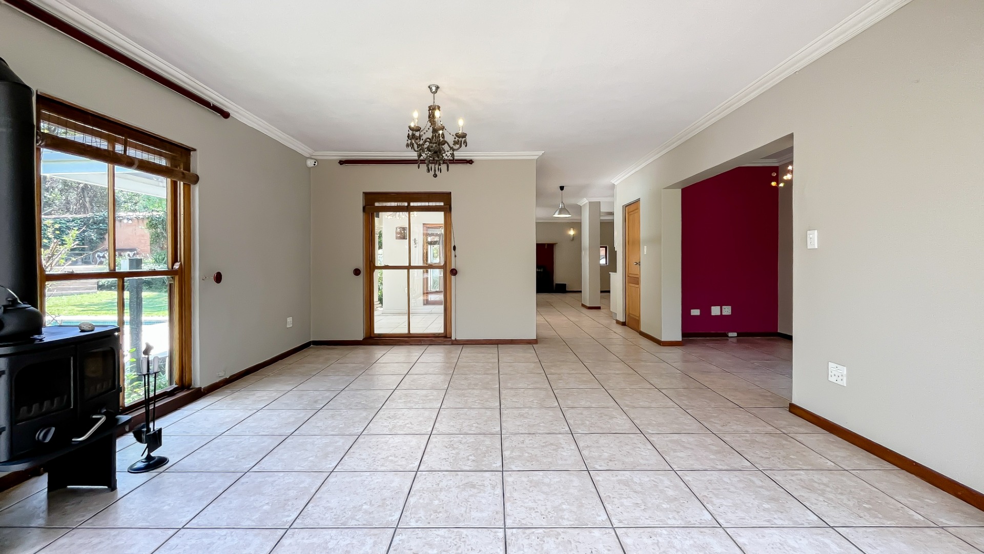 Accommodation comprises four well-proportioned bedrooms and two and a half bathrooms, including a private en-suite, ensuring comfort and privacy. The exterior is equally impressive, set on a generous 1561 sqm erf featuring an expansive, meticulously maintained garden with mature trees. A private swimming pool and a spacious covered patio provide ideal settings for outdoor relaxation and entertaining. A double garage and eight additional parking spaces offer ample vehicle accommodation.