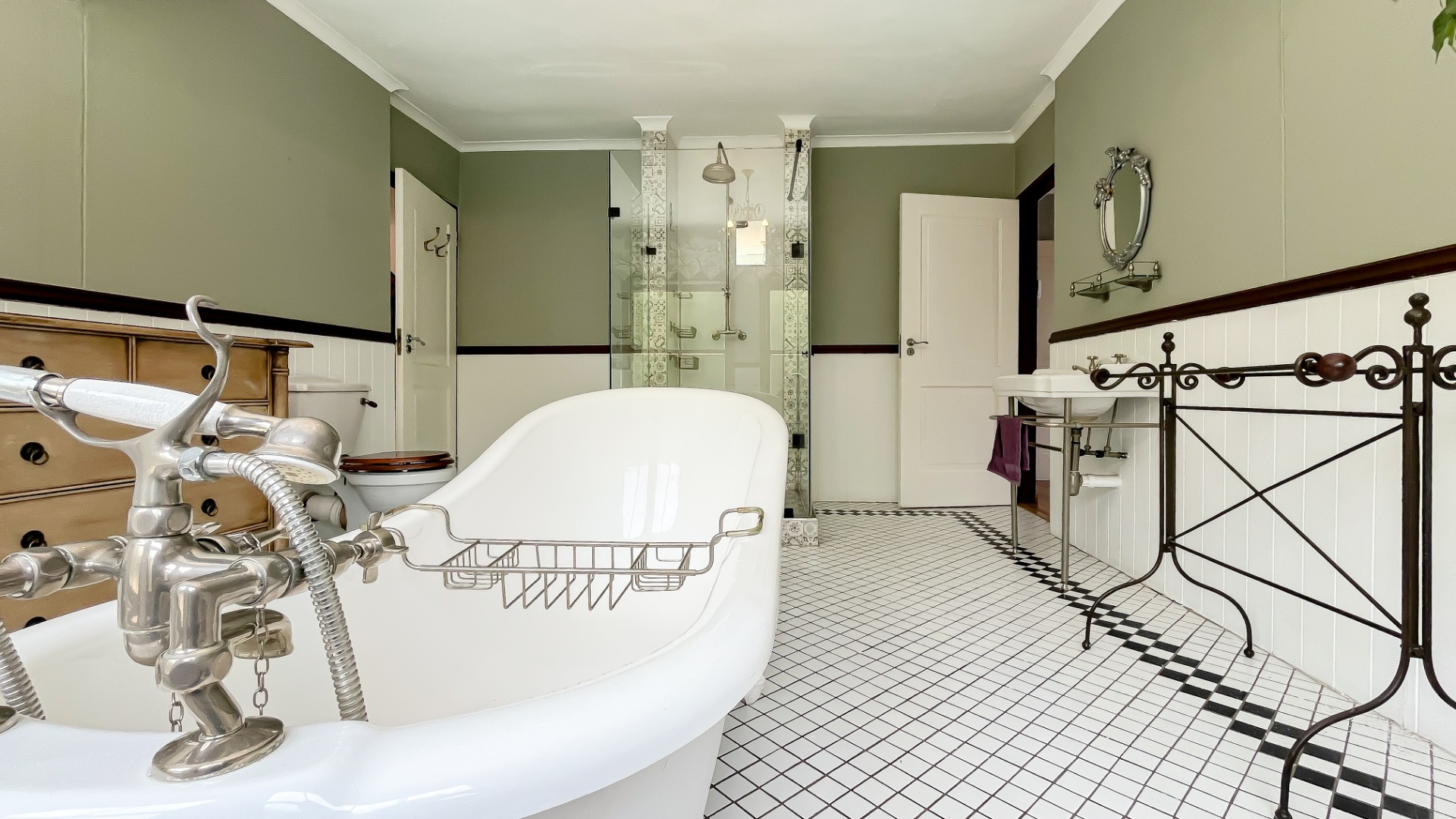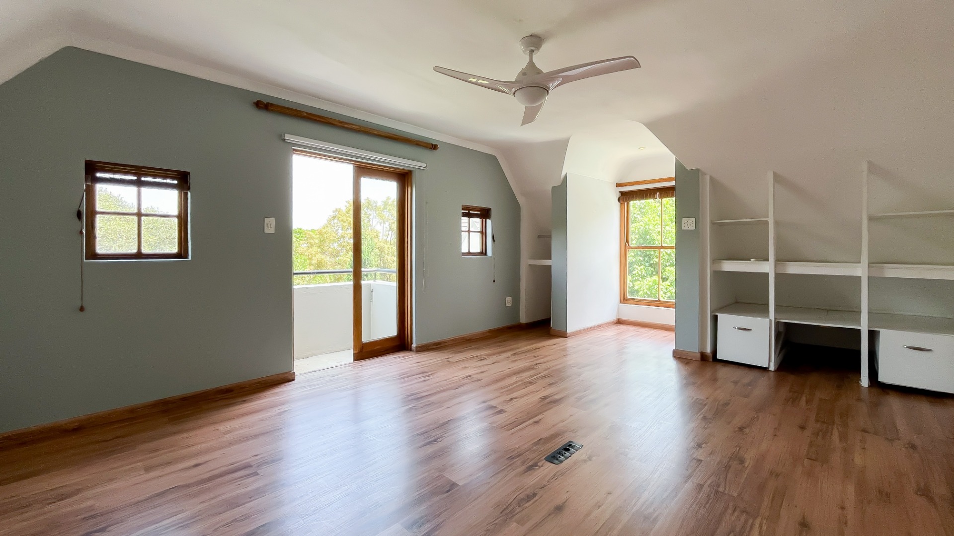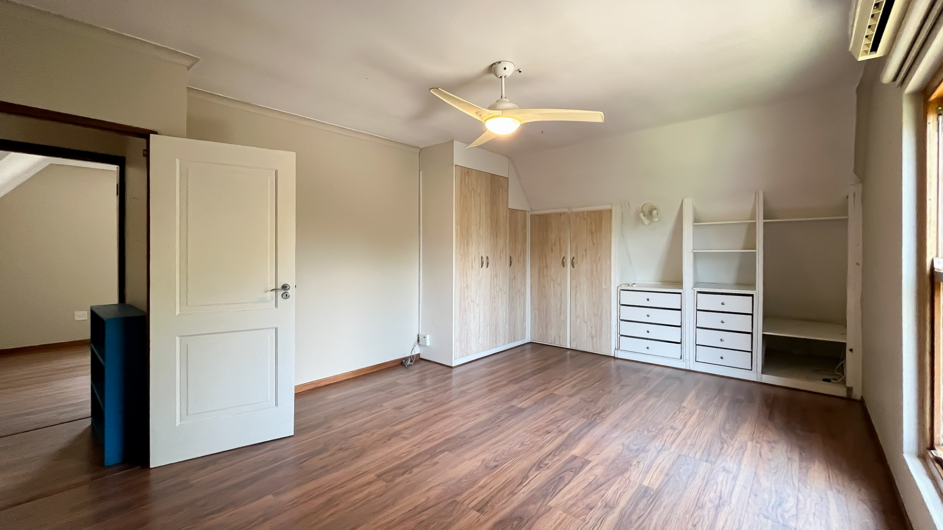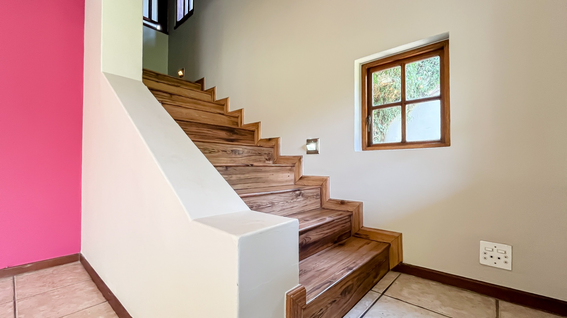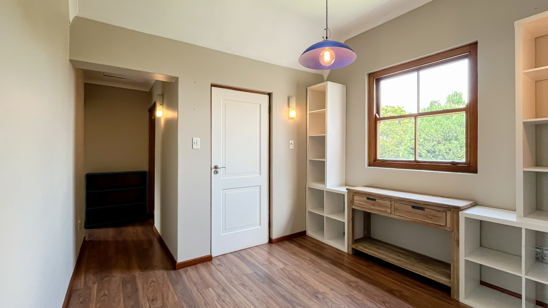 Accommodation comprises four well-proportioned bedrooms and two and a half bathrooms, including a private en-suite, ensuring comfort and privacy. The exterior is equally impressive, set on a generous 1561 sqm erf featuring an expansive, meticulously maintained garden with mature trees. A private swimming pool and a spacious covered patio provide ideal settings for outdoor relaxation and entertaining. A double garage and eight additional parking spaces offer ample vehicle accommodation.