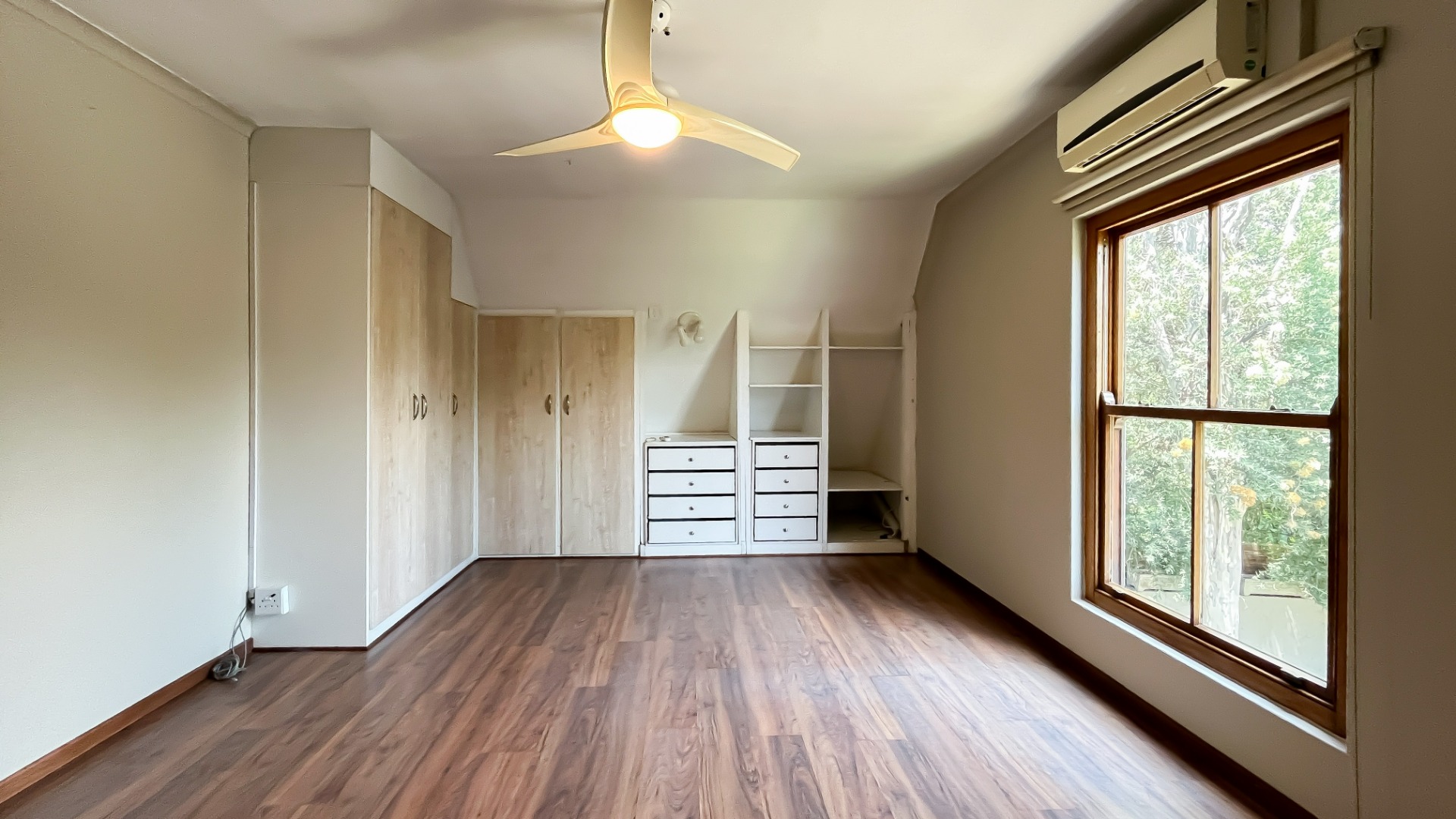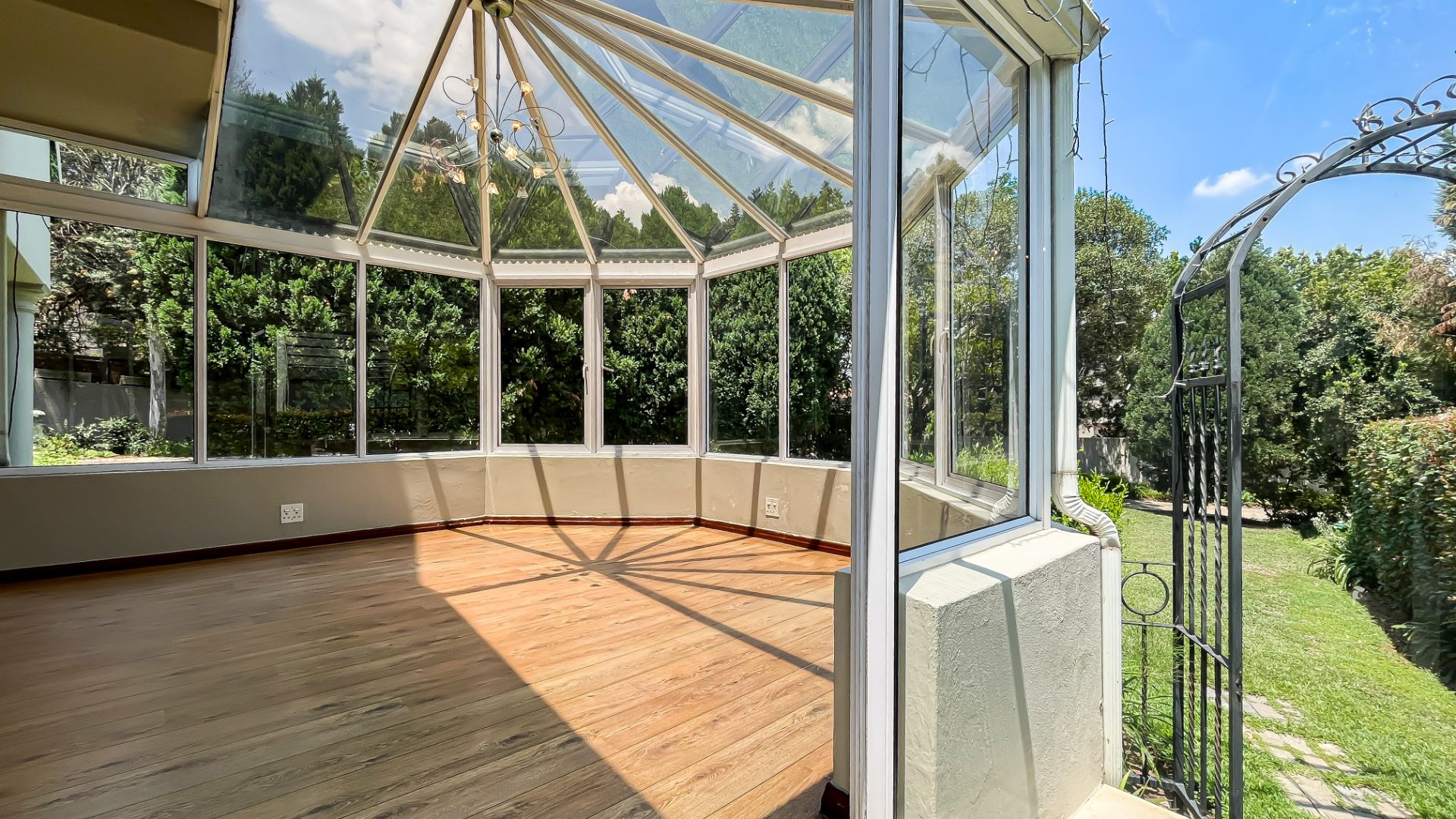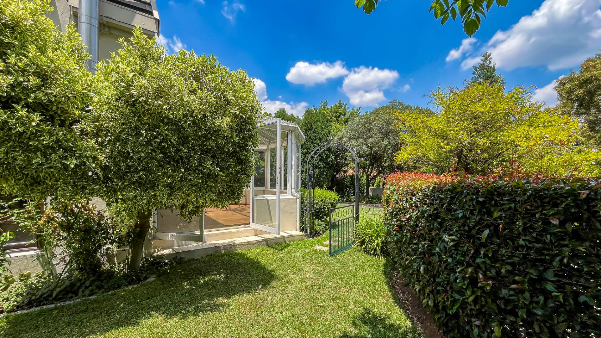 Security is paramount within this gated community and security estate, benefiting from 24-hour security, an access gate, security post, and an intercom system. The residence is equipped with modern sustainability features, including solar panels, a solar geyser, and a battery inverter, significantly reducing utility costs. Water tanks and an irrigation system support the lush garden, while fibre connectivity ensures high-speed internet access. Situated in the desirable suburban enclave of Sandton, this property offers a serene living environment with scenic views and convenient access to amenities.