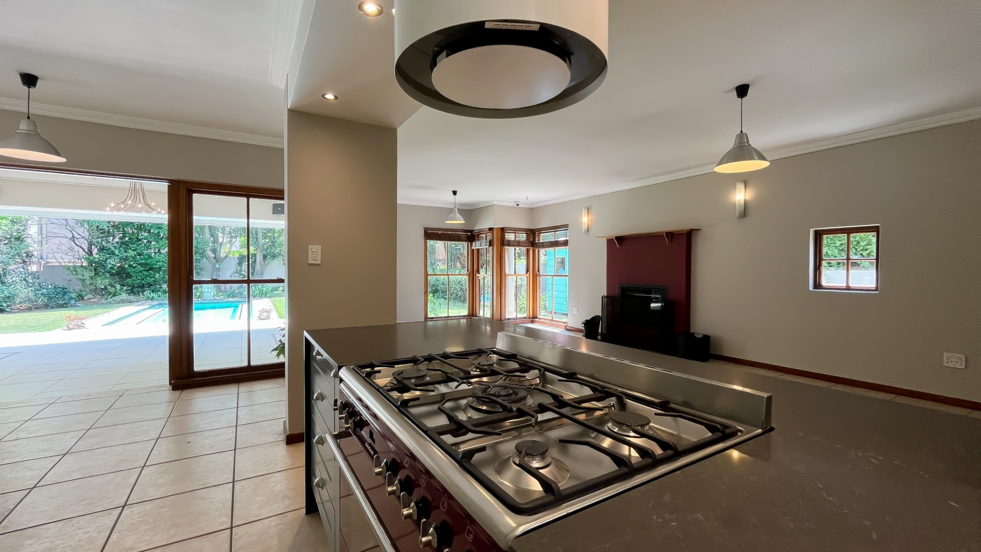 This distinguished 487 sqm residence, nestled within a secure estate in Bryanston, presents an exceptional opportunity for discerning homeowners. Boasting classic architectural lines, gabled roofs, and an inviting covered entrance, the property exudes timeless elegance. The interior features an open-plan design, encompassing two spacious lounges and a dedicated dining room, all bathed in abundant natural light, creating an expansive and welcoming atmosphere. An entrance hall and reception area further enhance the functional layout.