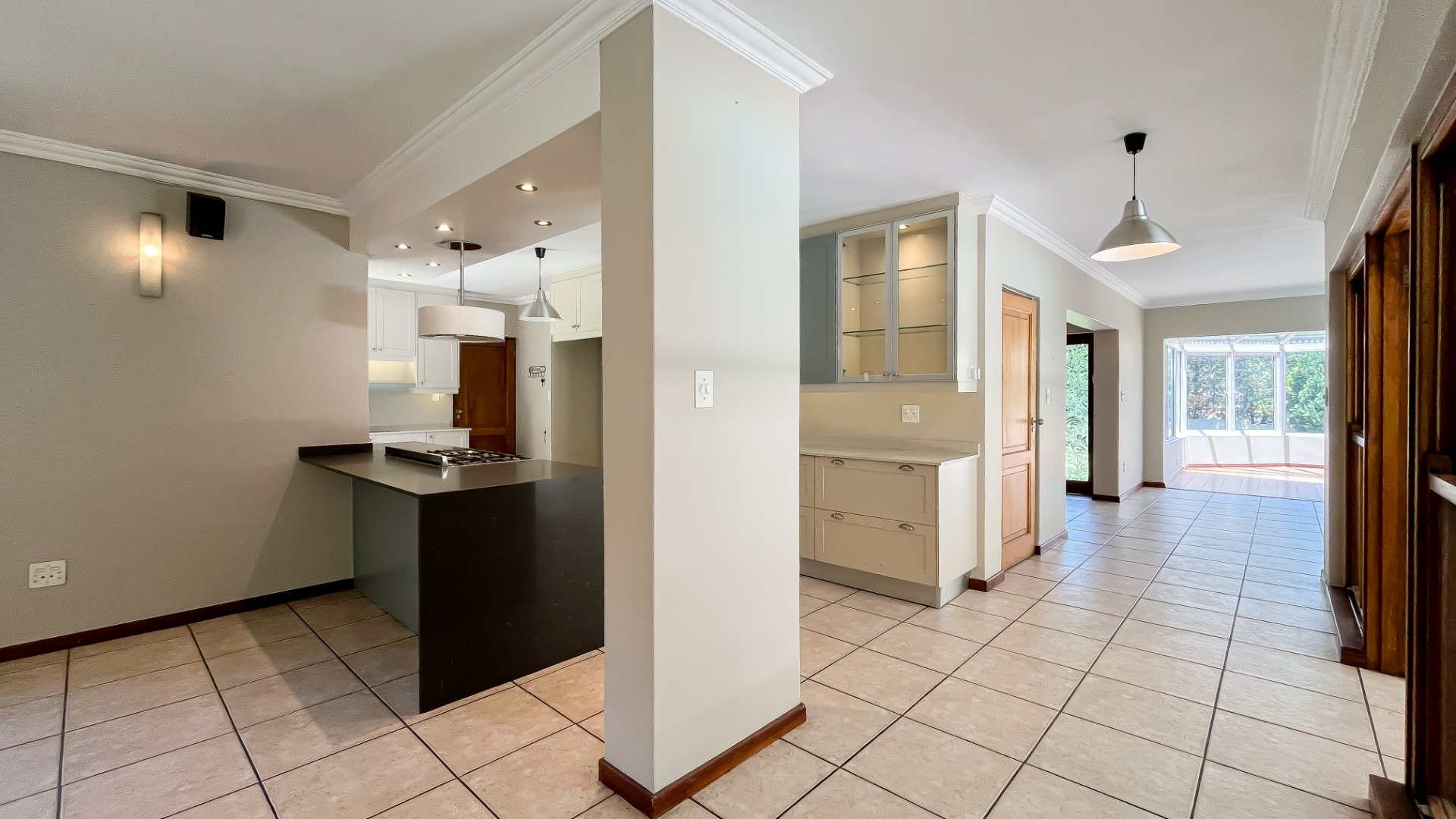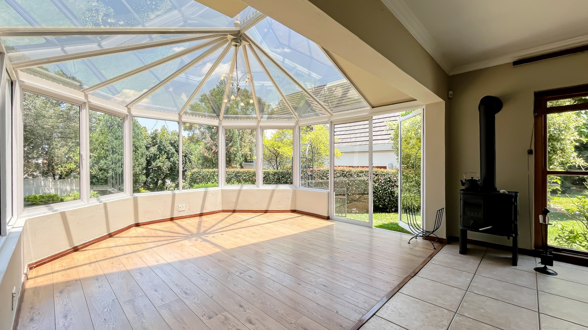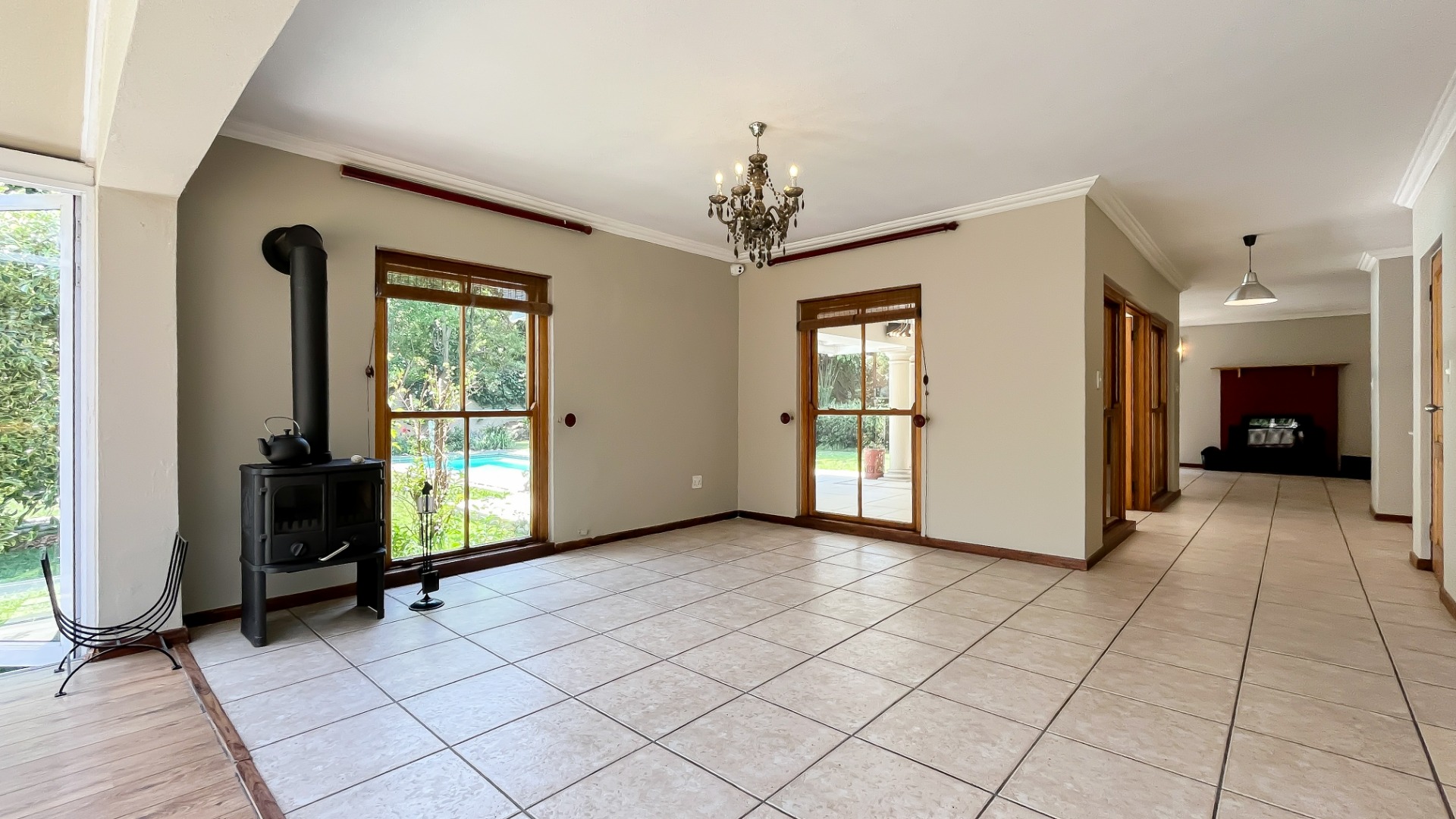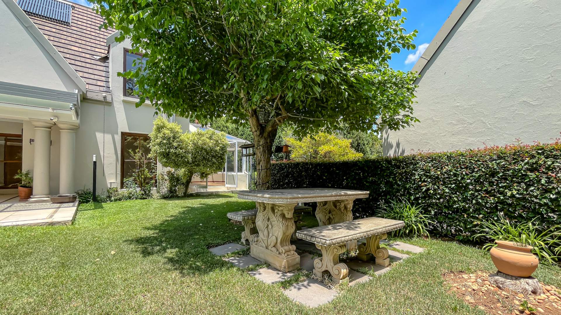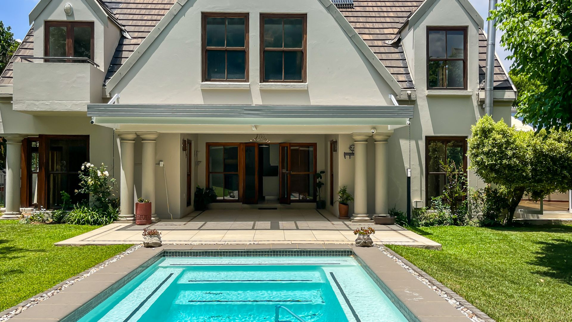 Accommodation comprises four well-proportioned bedrooms and two and a half bathrooms, including a private en-suite, ensuring comfort and privacy. The exterior is equally impressive, set on a generous 1561 sqm erf featuring an expansive, meticulously maintained garden with mature trees. A private swimming pool and a spacious covered patio provide ideal settings for outdoor relaxation and entertaining. A double garage and eight additional parking spaces offer ample vehicle accommodation.