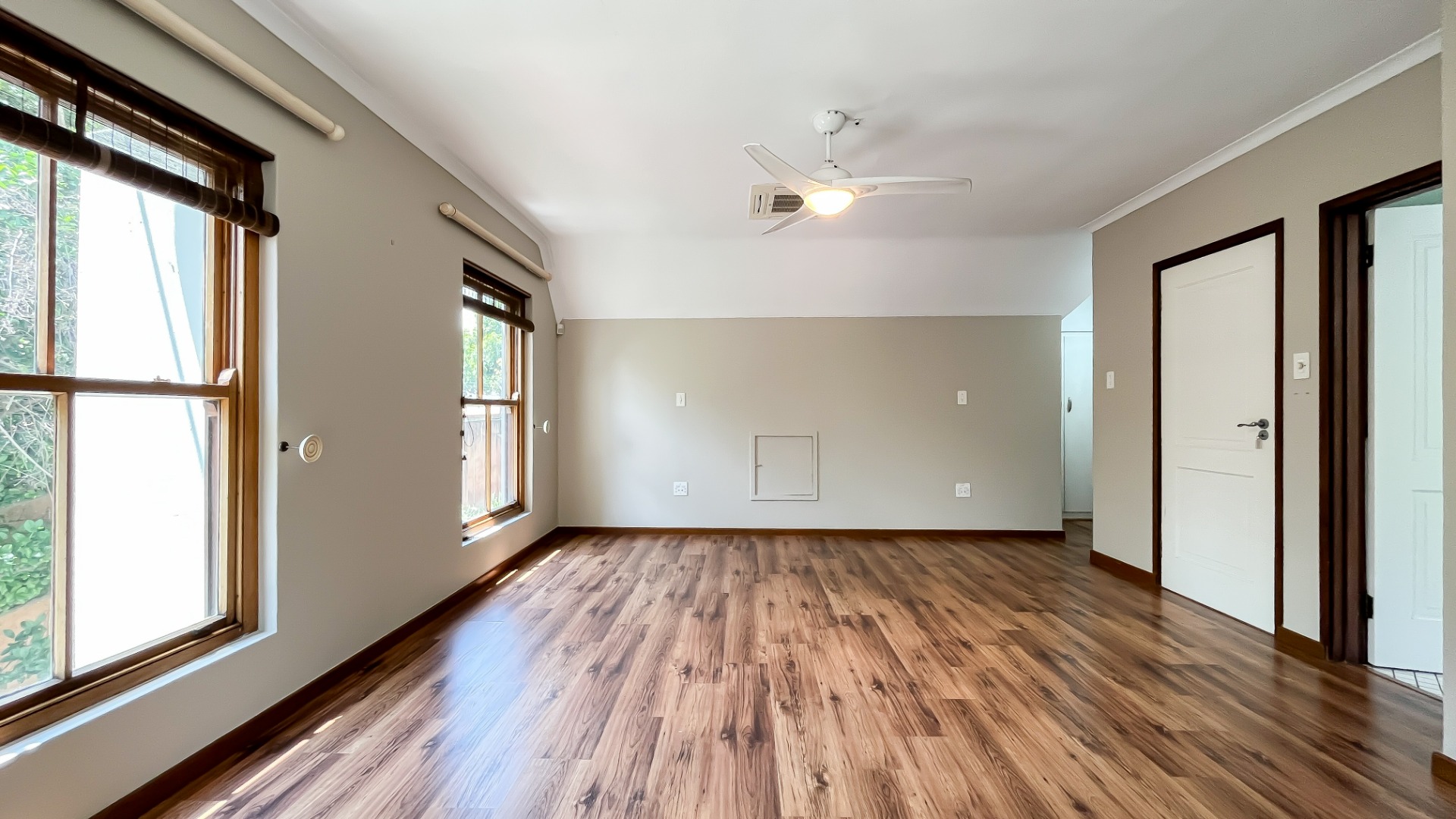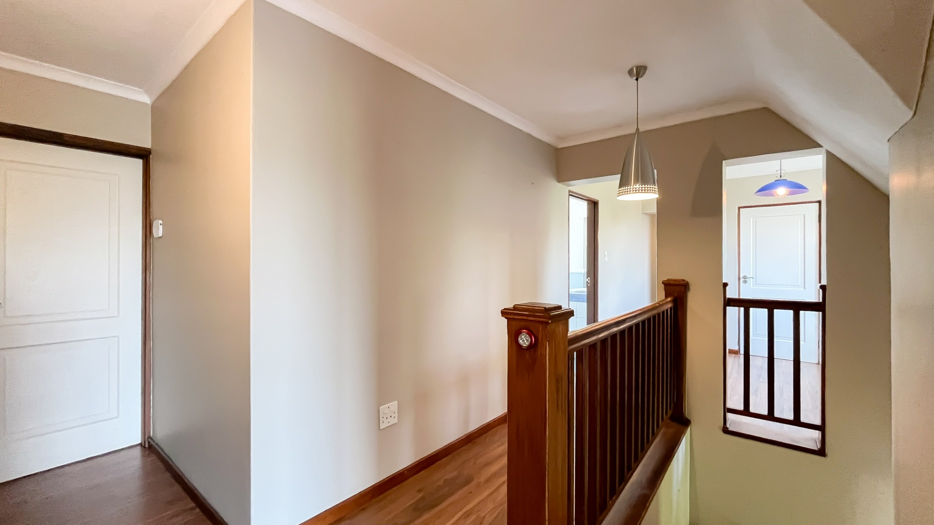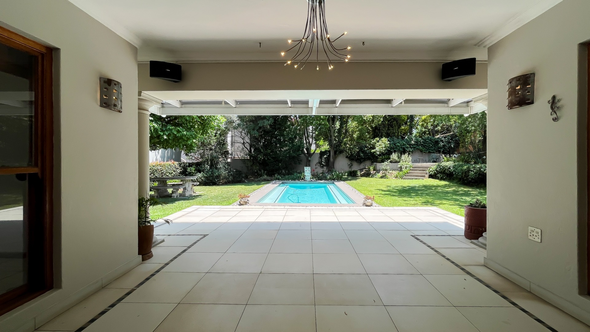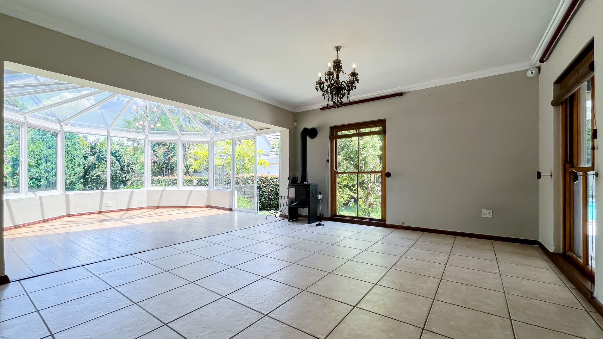Accommodation comprises four well-proportioned bedrooms and two and a half bathrooms, including a private en-suite, ensuring comfort and privacy. The exterior is equally impressive, set on a generous 1561 sqm erf featuring an expansive, meticulously maintained garden with mature trees. A private swimming pool and a spacious covered patio provide ideal settings for outdoor relaxation and entertaining. A double garage and eight additional parking spaces offer ample vehicle accommodation.