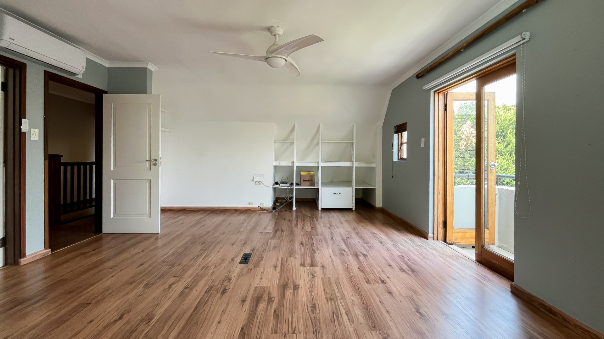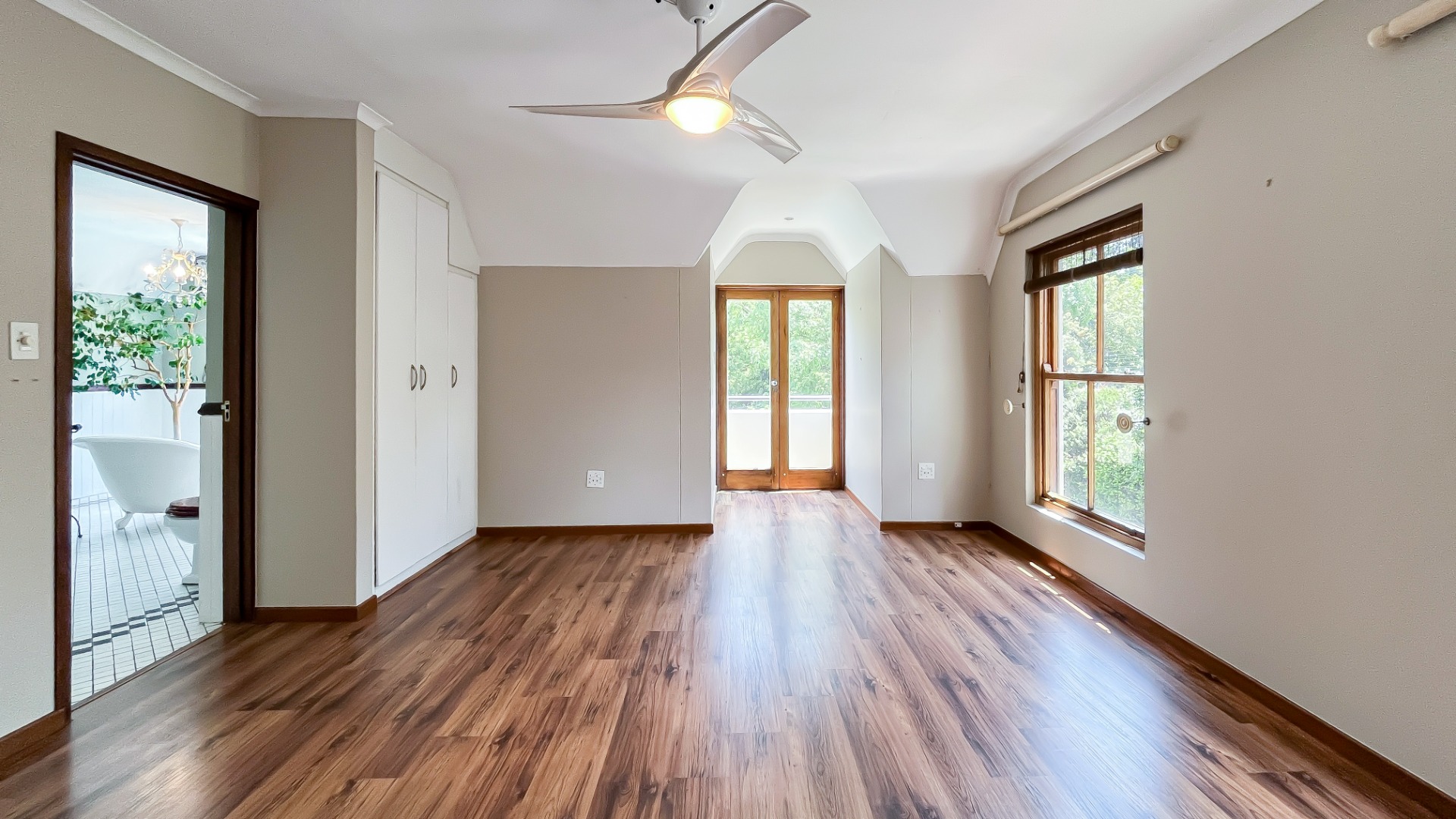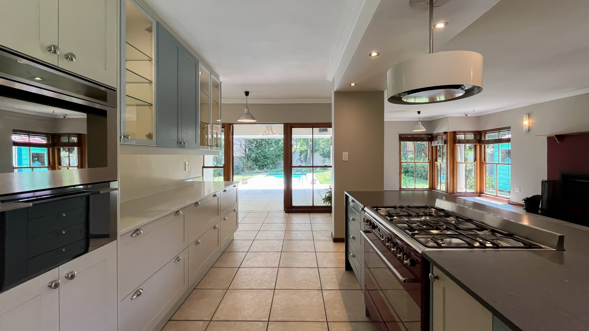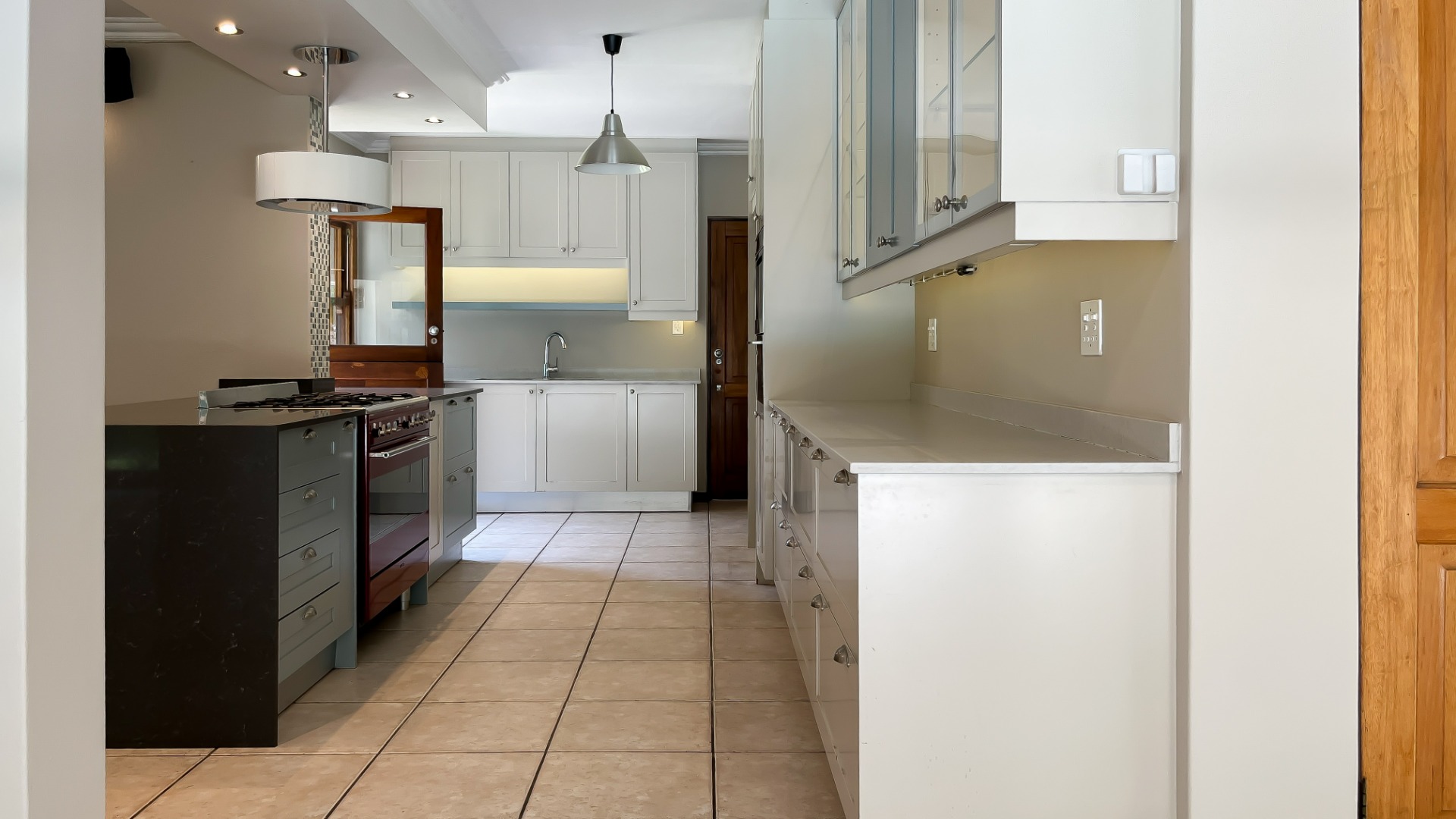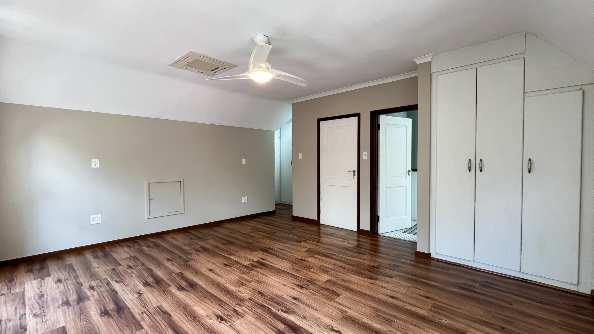 Accommodation comprises four well-proportioned bedrooms and two and a half bathrooms, including a private en-suite, ensuring comfort and privacy. The exterior is equally impressive, set on a generous 1561 sqm erf featuring an expansive, meticulously maintained garden with mature trees. A private swimming pool and a spacious covered patio provide ideal settings for outdoor relaxation and entertaining. A double garage and eight additional parking spaces offer ample vehicle accommodation.
