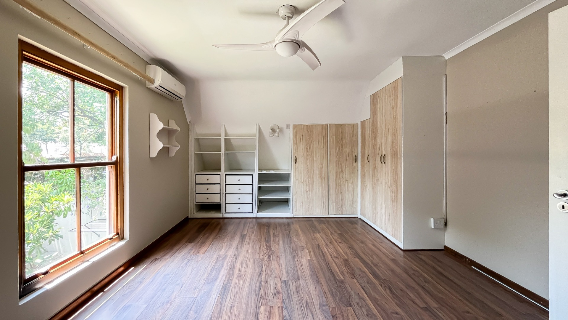 Security is paramount within this gated community and security estate, benefiting from 24-hour security, an access gate, security post, and an intercom system. The residence is equipped with modern sustainability features, including solar panels, a solar geyser, and a battery inverter, significantly reducing utility costs. Water tanks and an irrigation system support the lush garden, while fibre connectivity ensures high-speed internet access. Situated in the desirable suburban enclave of Sandton, this property offers a serene living environment with scenic views and convenient access to amenities.