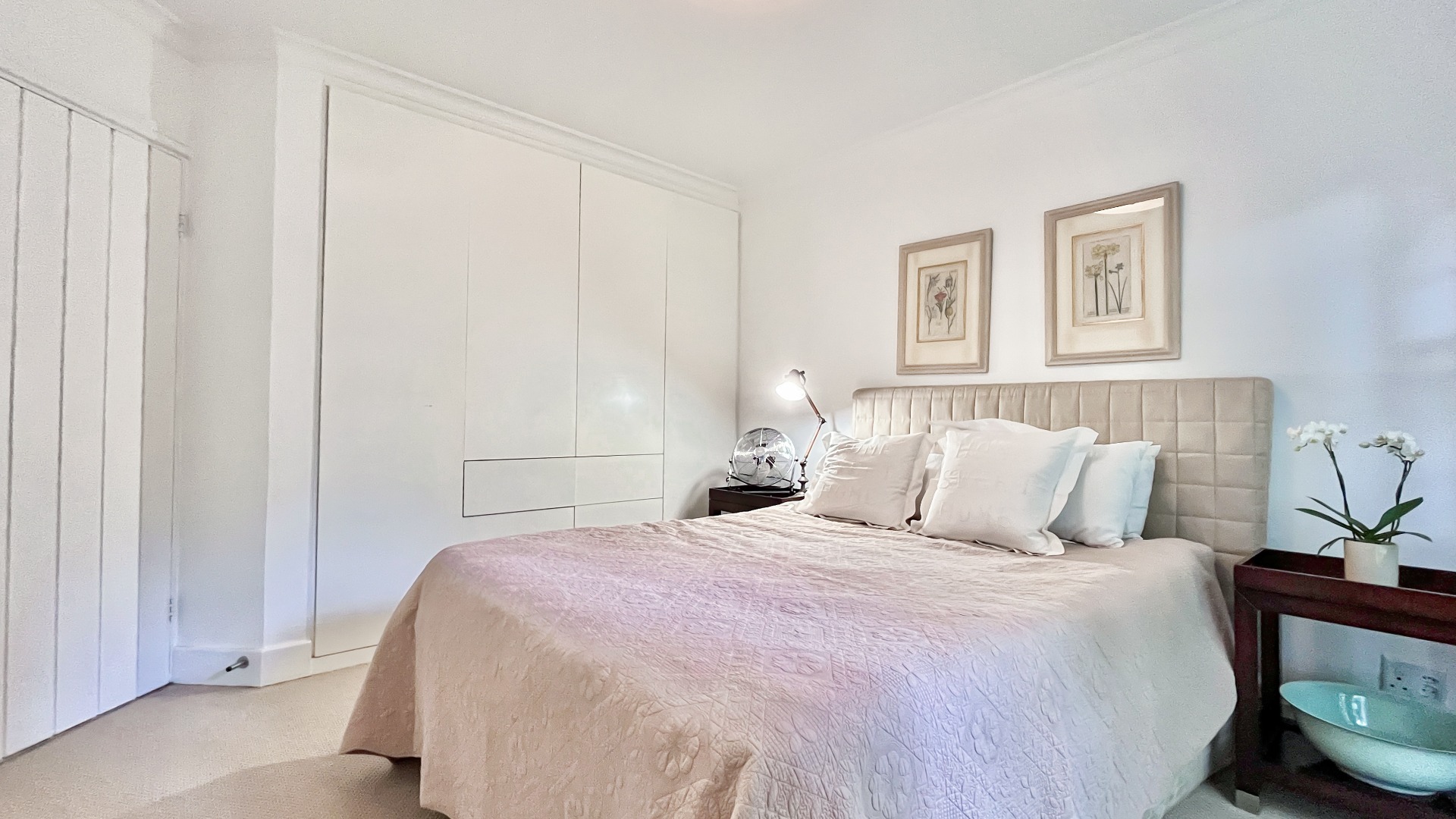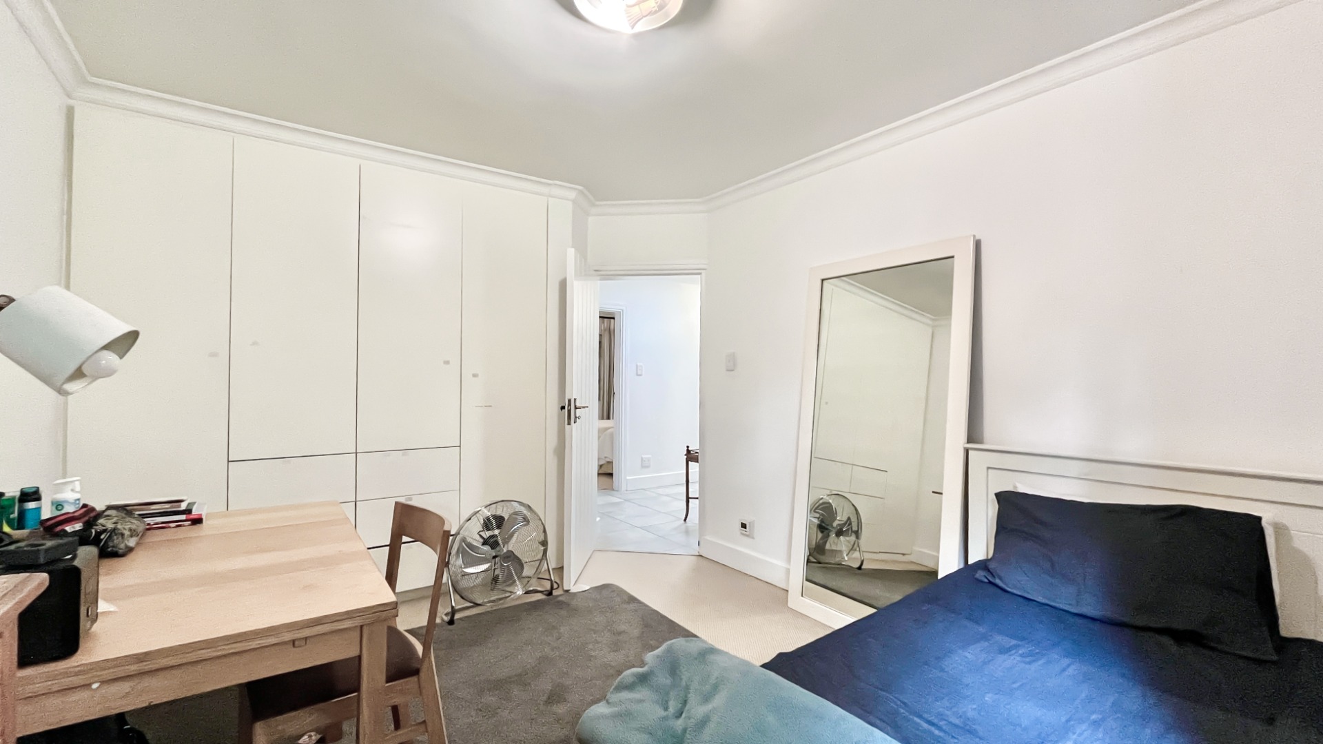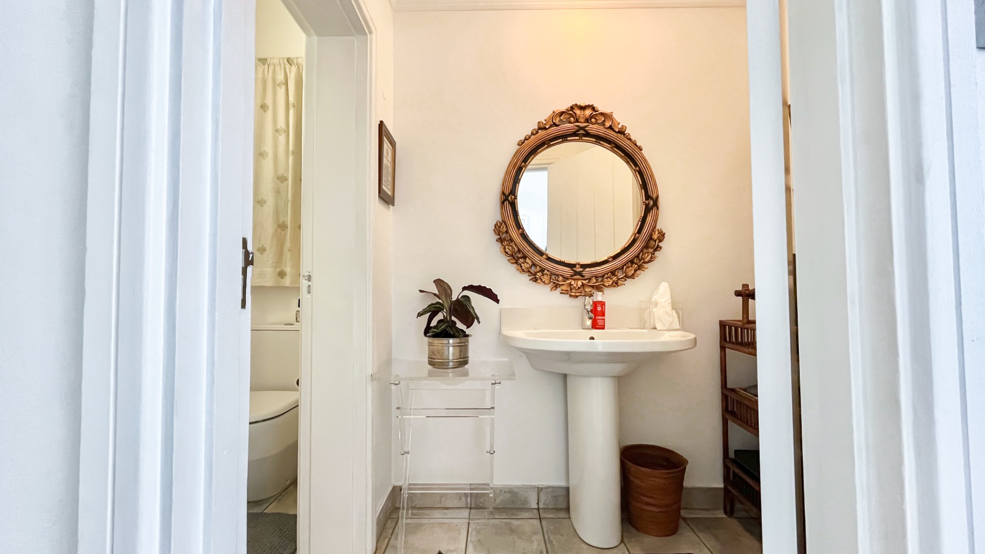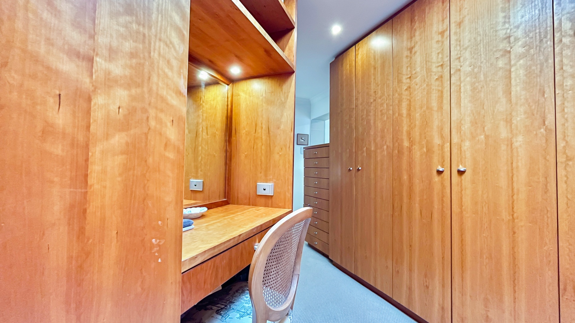 Upstairs, a family room overlooks the garden and pool, providing a serene retreat for relaxation and leisure.