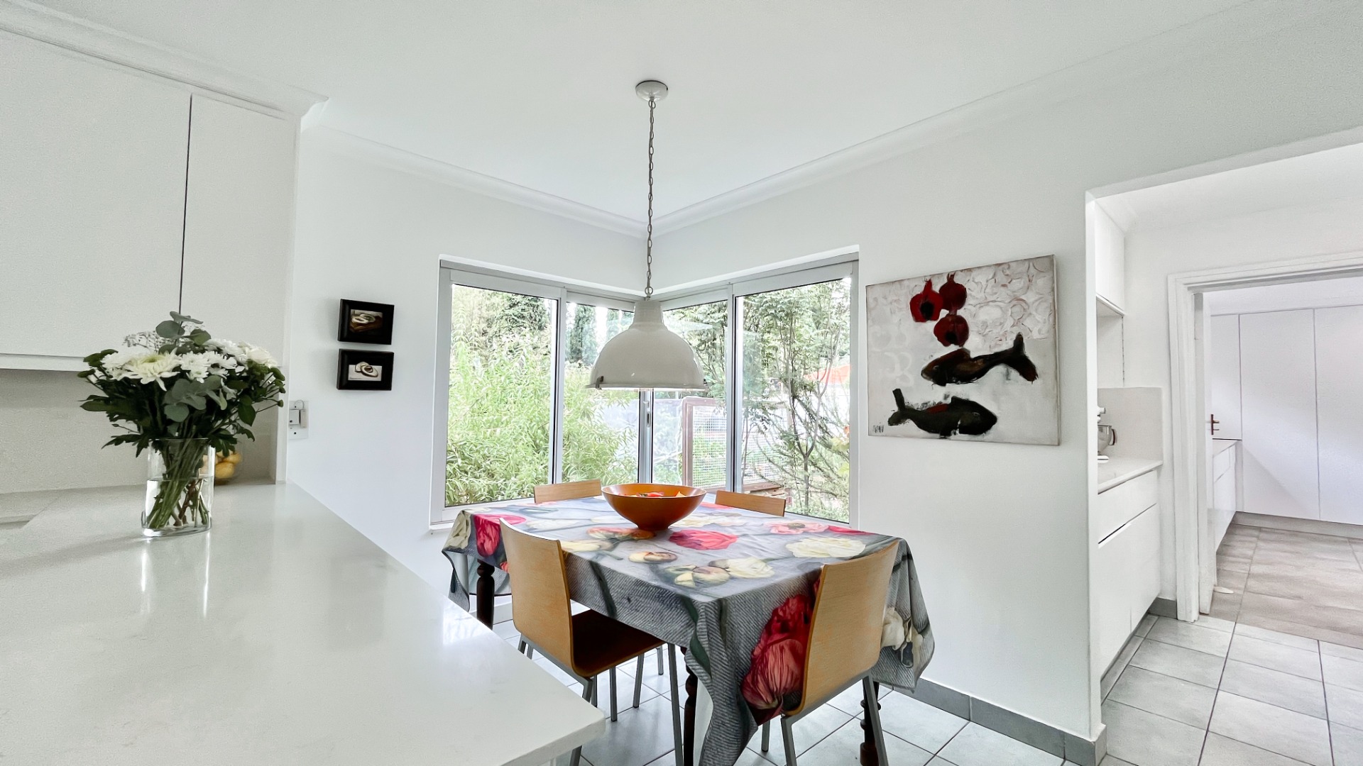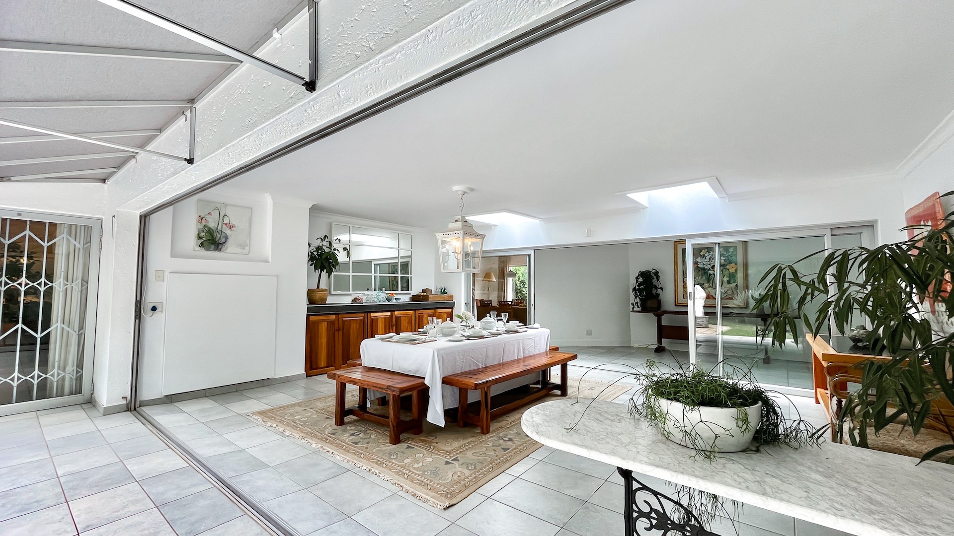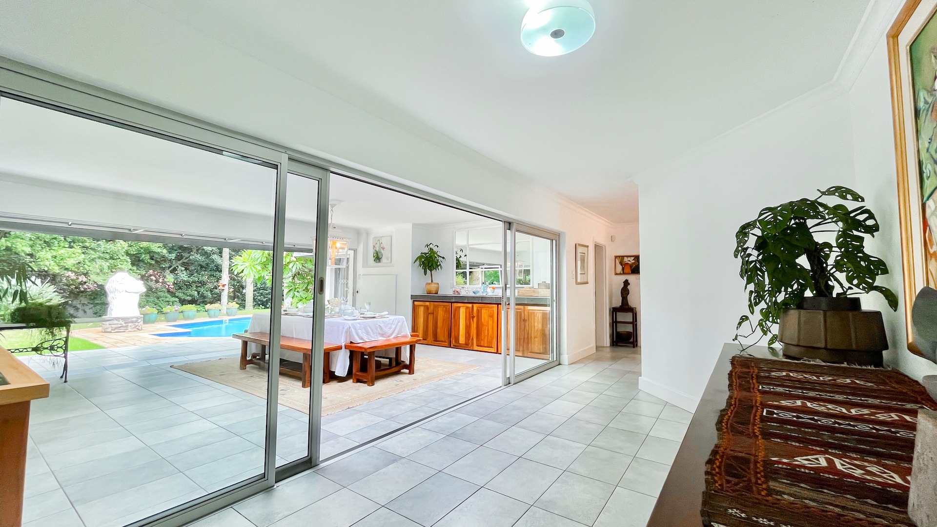 The spacious double kitchen, adorned with beautiful finishes, is a chef's delight, perfect for hosting gatherings and creating culinary masterpieces. Step through the stack doors onto the expansive patio, where you'll find yourself immersed in the serenity of the lush garden and inviting pool, creating an idyllic setting for outdoor entertaining.