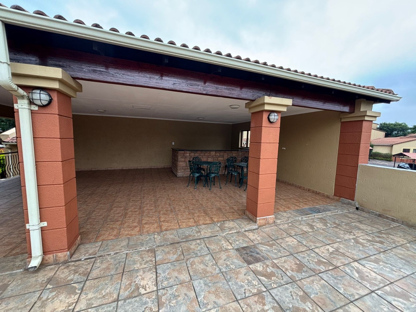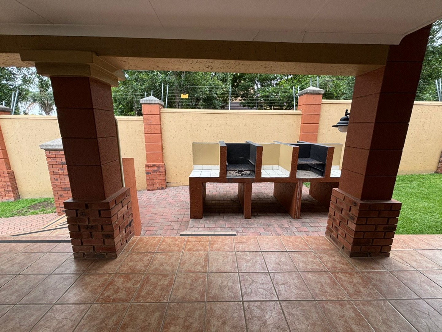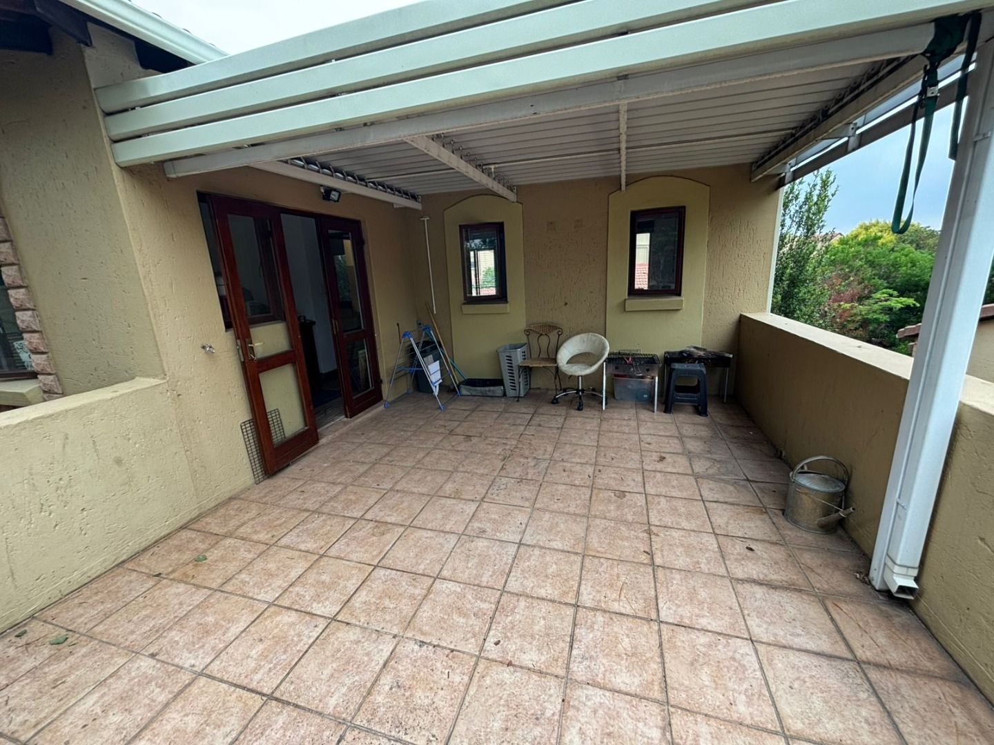 Discover this inviting 3-bedroom, 3-bathroom residence nestled within a secure complex in the sought-after Douglasdale area of Sandton. Boasting a Mediterranean/Tuscan architectural style with warm earthy tones, the property immediately offers a welcoming kerb appeal. The multi-level outdoor living space, featuring a wooden deck and covered patio, provides an ideal setting for relaxation and entertaining, complemented by a mature tree offering natural shade and a private garden.