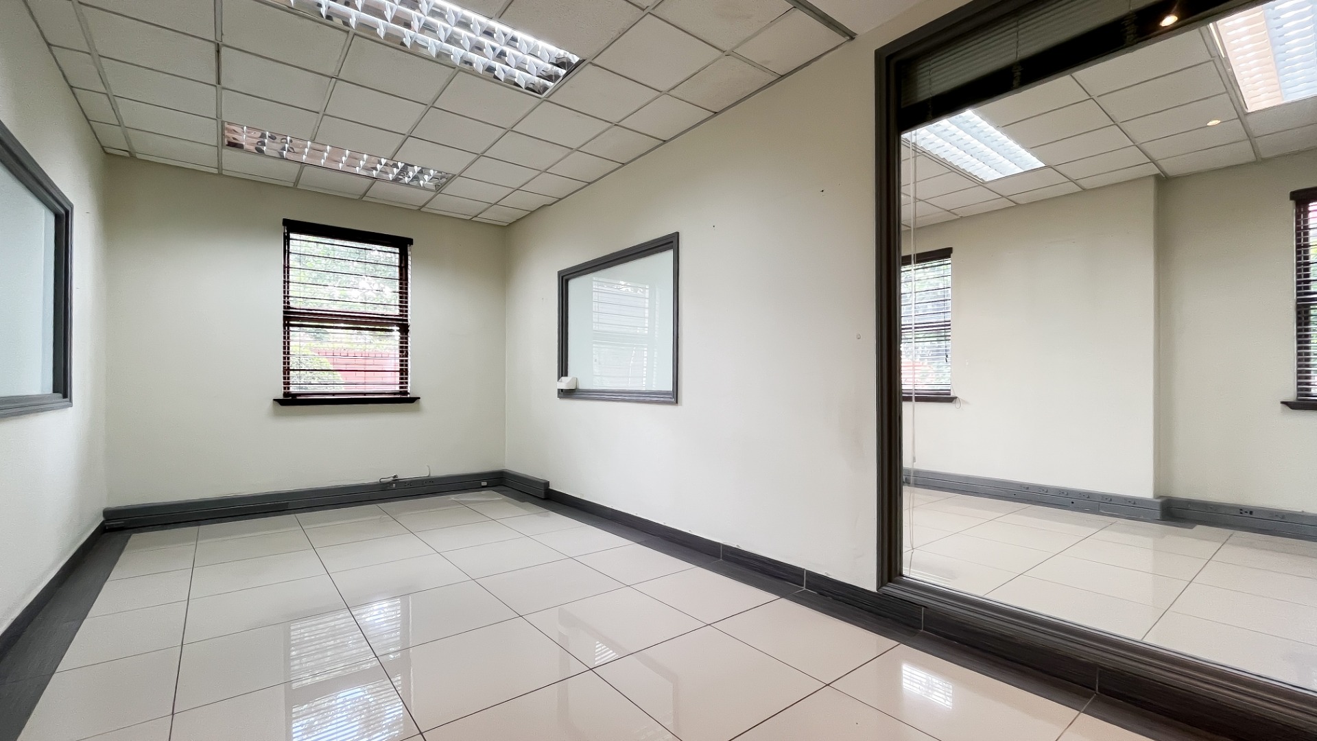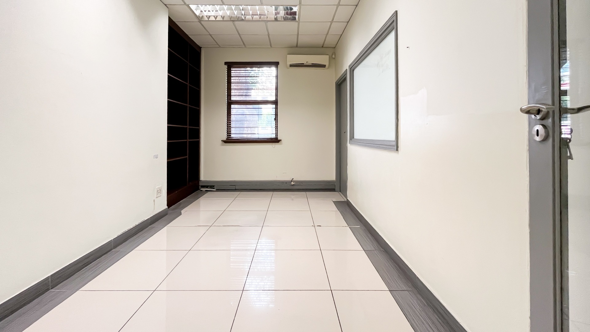 - Commercial Property: The 390m² office space is designed for productivity, featuring open-plan work areas, private office spaces, tiled floors, standard lighting, and abundant natural light.