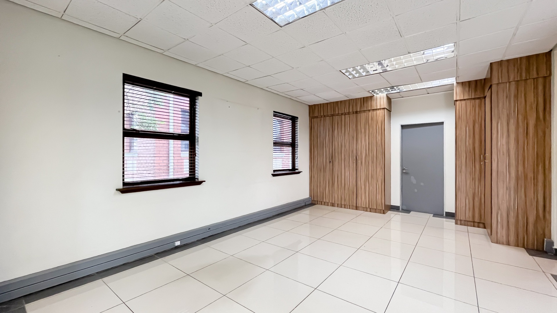 This versatile space offers tiled floors, standard lighting, and ample natural light that creates a bright and inviting work environment, perfect